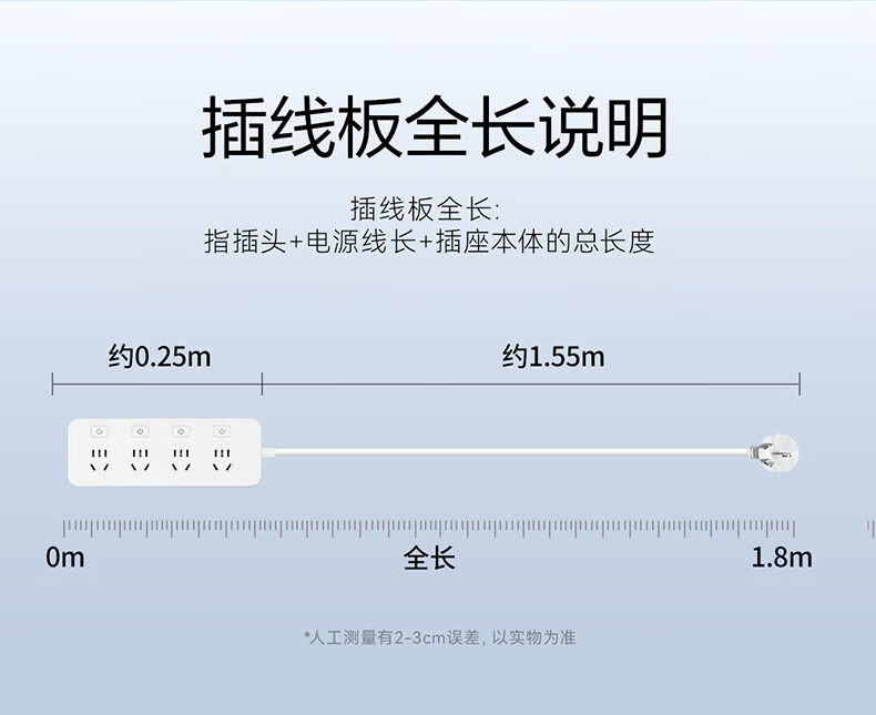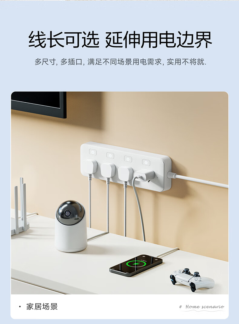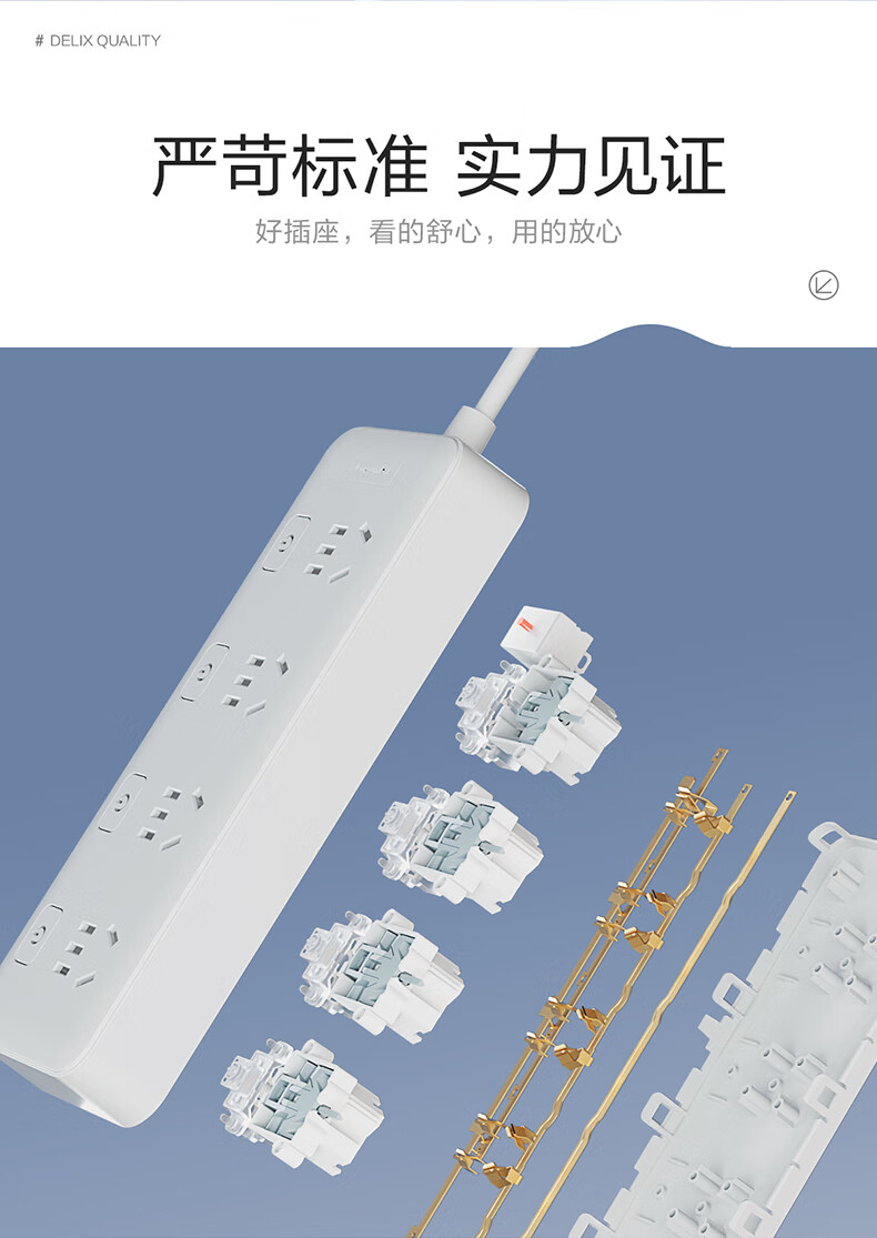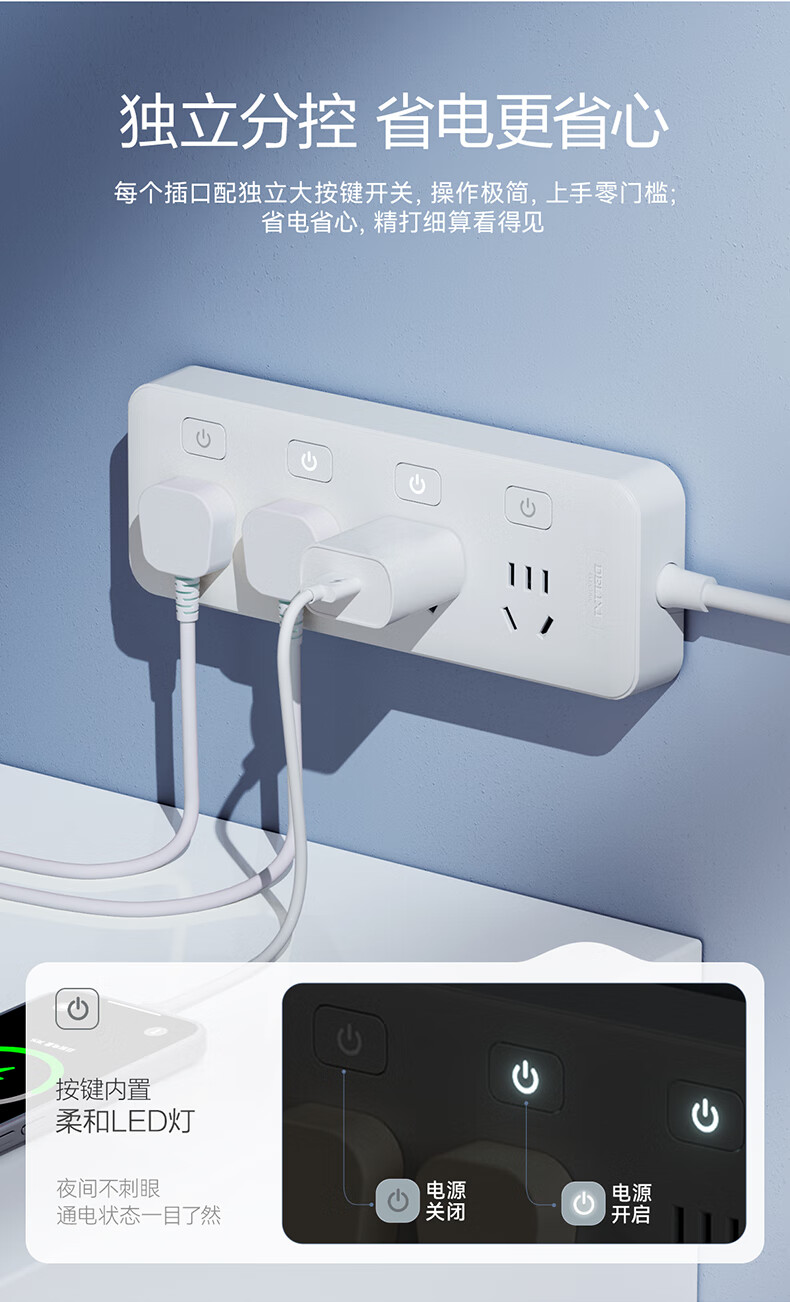 德力西(DELIXI) 3C认证国标分控带开关插座/插排/排插/插线板/插板/接线板/拖线板 3位分控全长1米