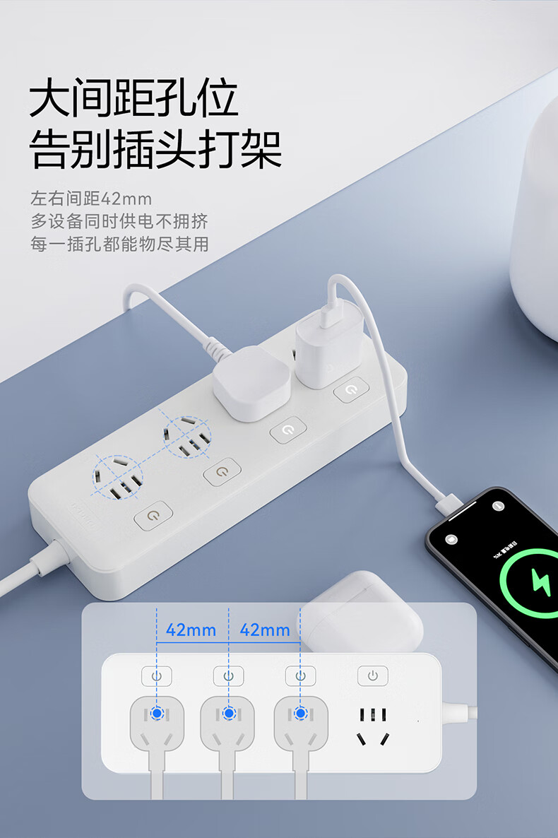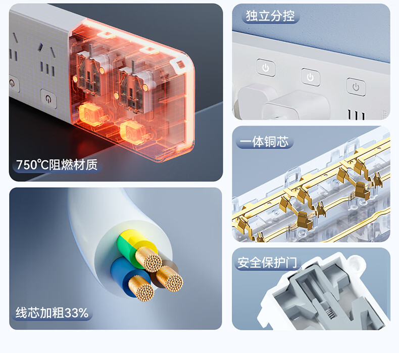 公正午插座无线转换器夜灯USB独立开关多功能一转多位排插位多孔 带线头:一转五【纯铜+防雷】