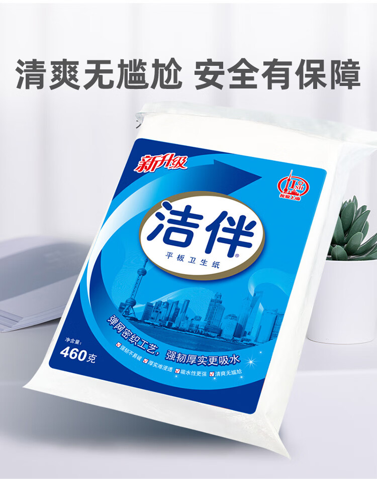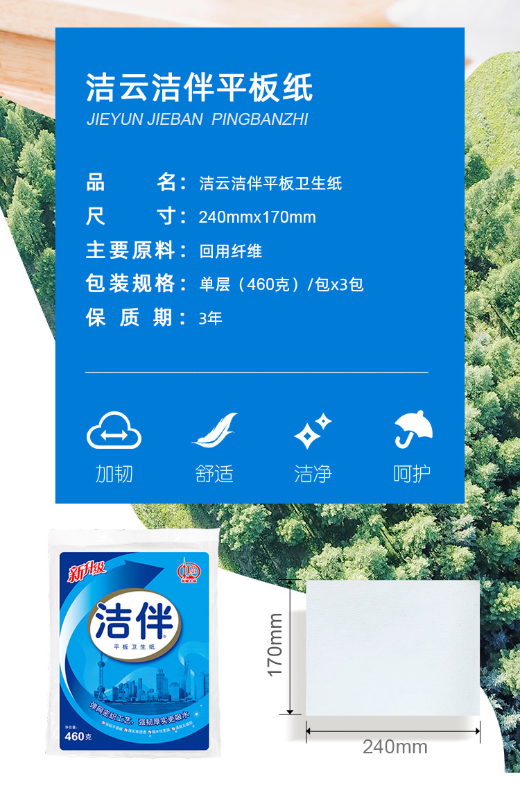 洁云卫生纸平板纸460g*3包 L码厕纸医院B超用纸草纸宠物捡屎纸洁 伴