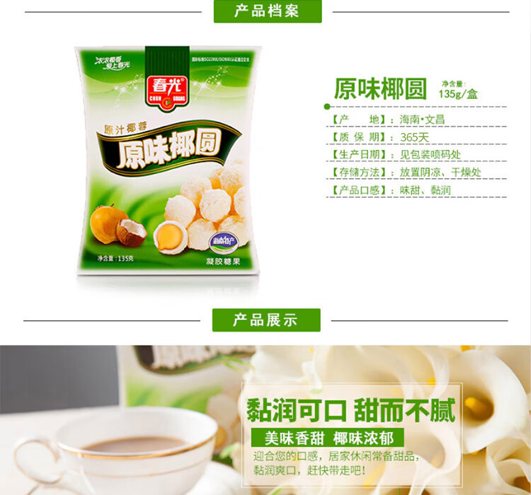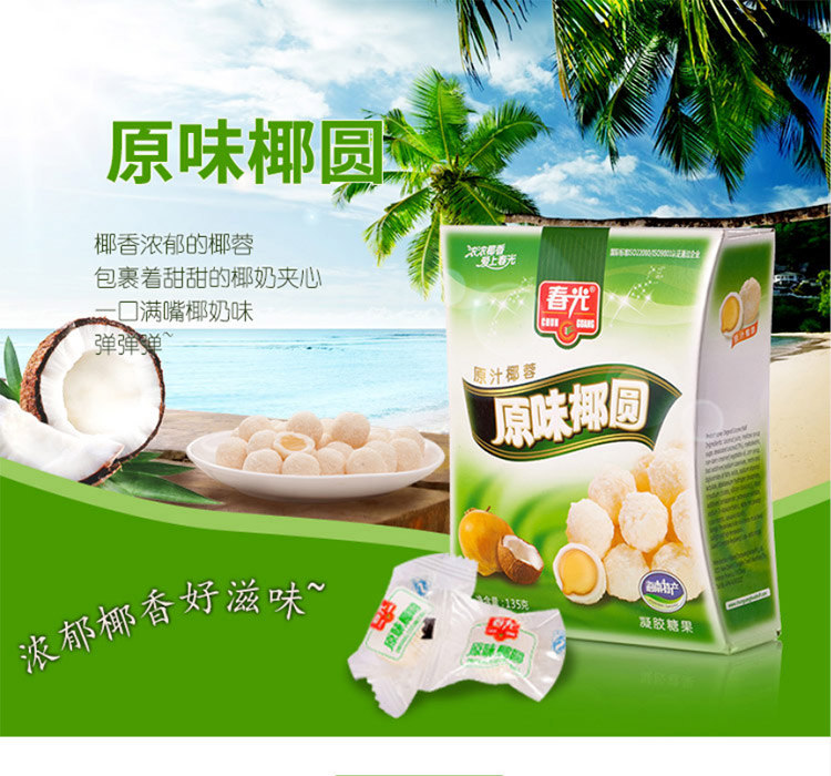 春光食品 海南特产 原味椰圆糖 135g 儿童水果软糖休闲糖果婚庆喜糖