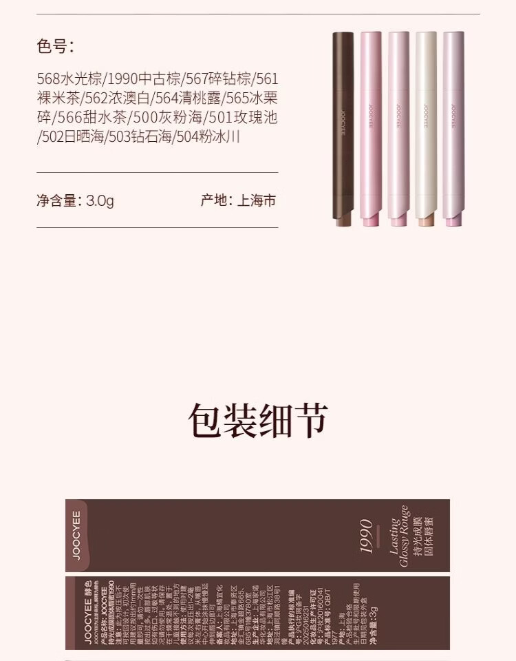 屈臣氏酵色JOOCYEE持光成膜固体唇蜜 568水光棕 3g
