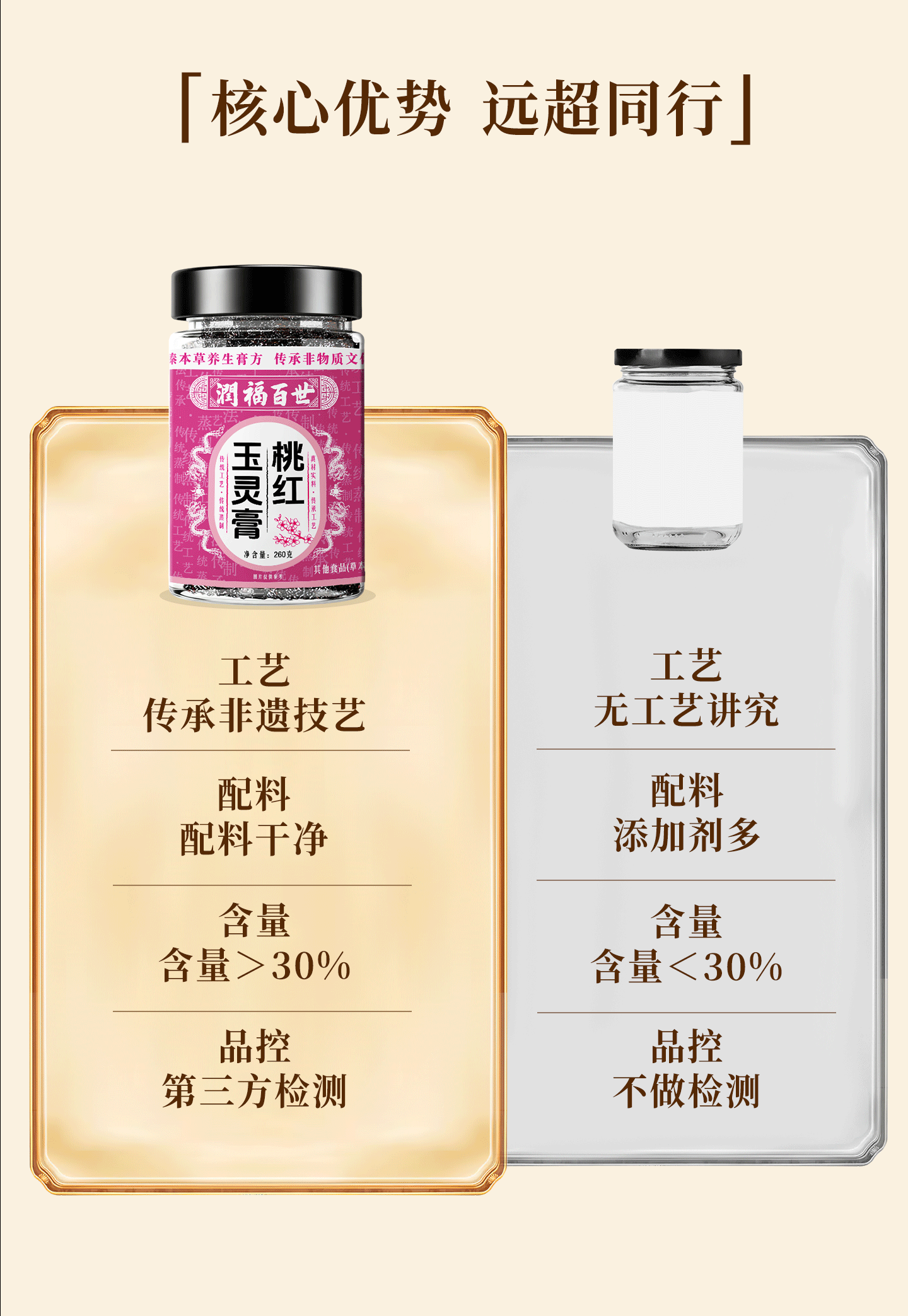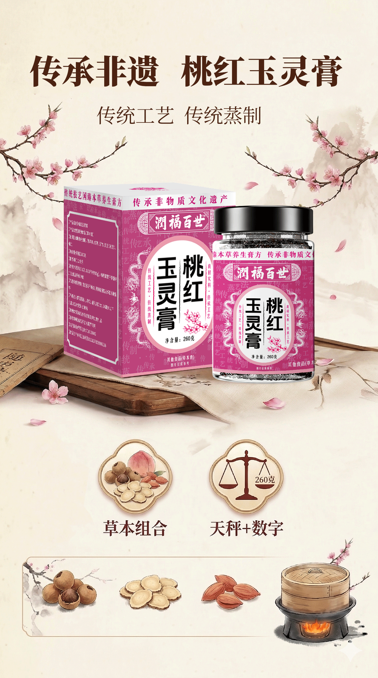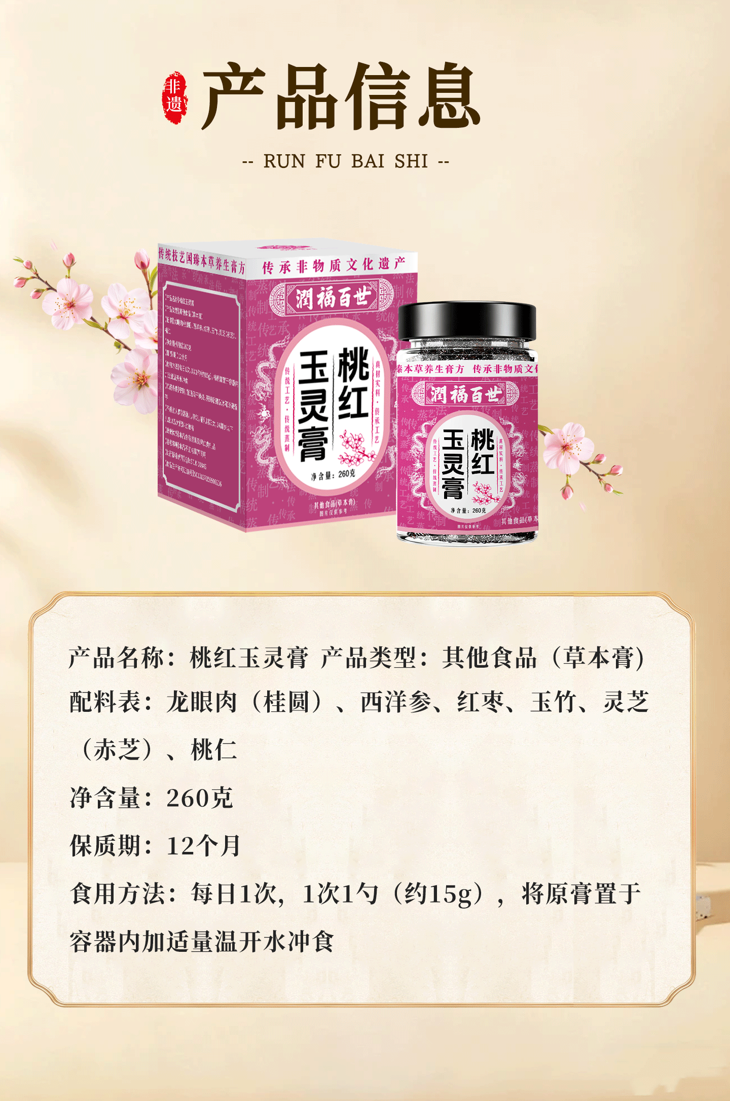 润福百世桃红玉灵膏龙眼肉古方熬制养生膏传承非遗中老年非遗草本膏 260g*6瓶 一个滋补疗程
