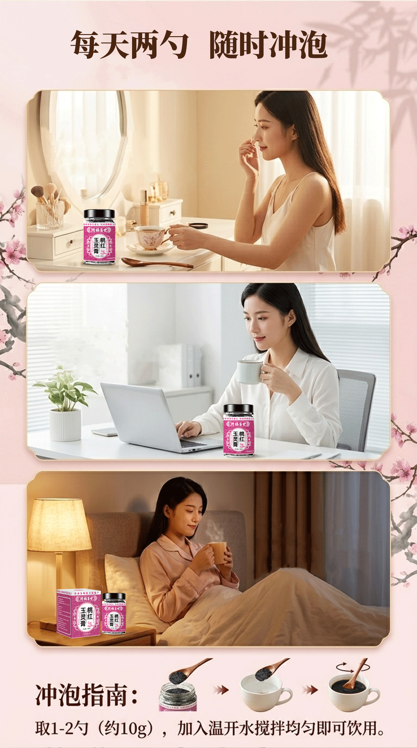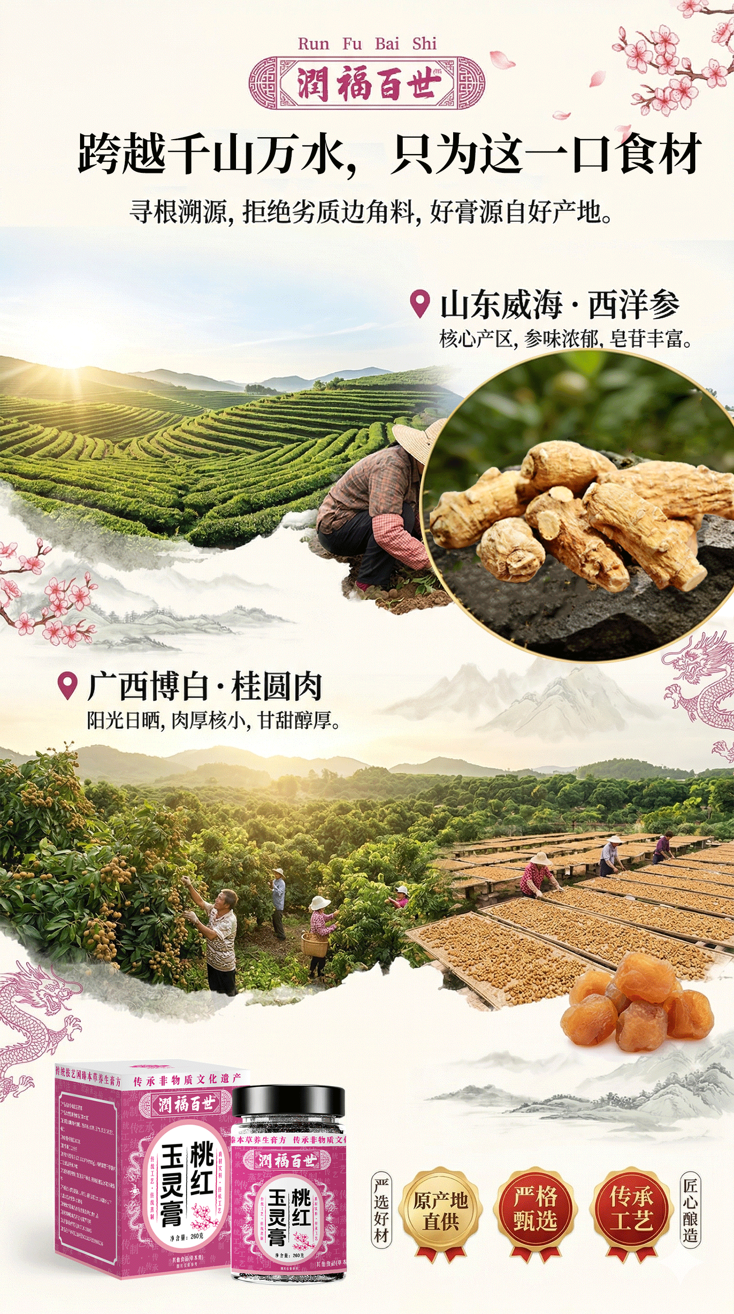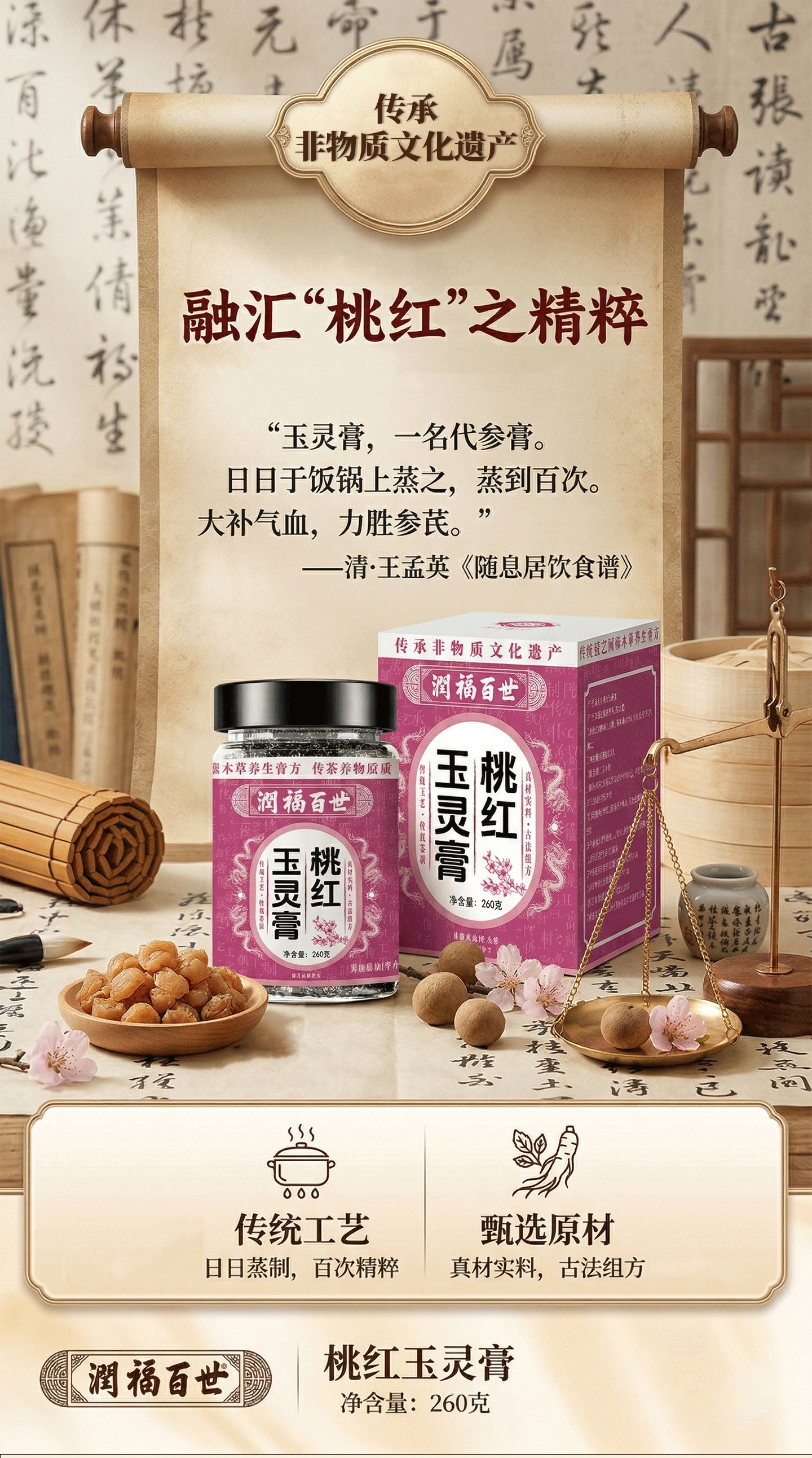 润福百世桃红玉灵膏龙眼肉古方熬制养生膏传承非遗中老年非遗草本膏 260g*6瓶 一个滋补疗程