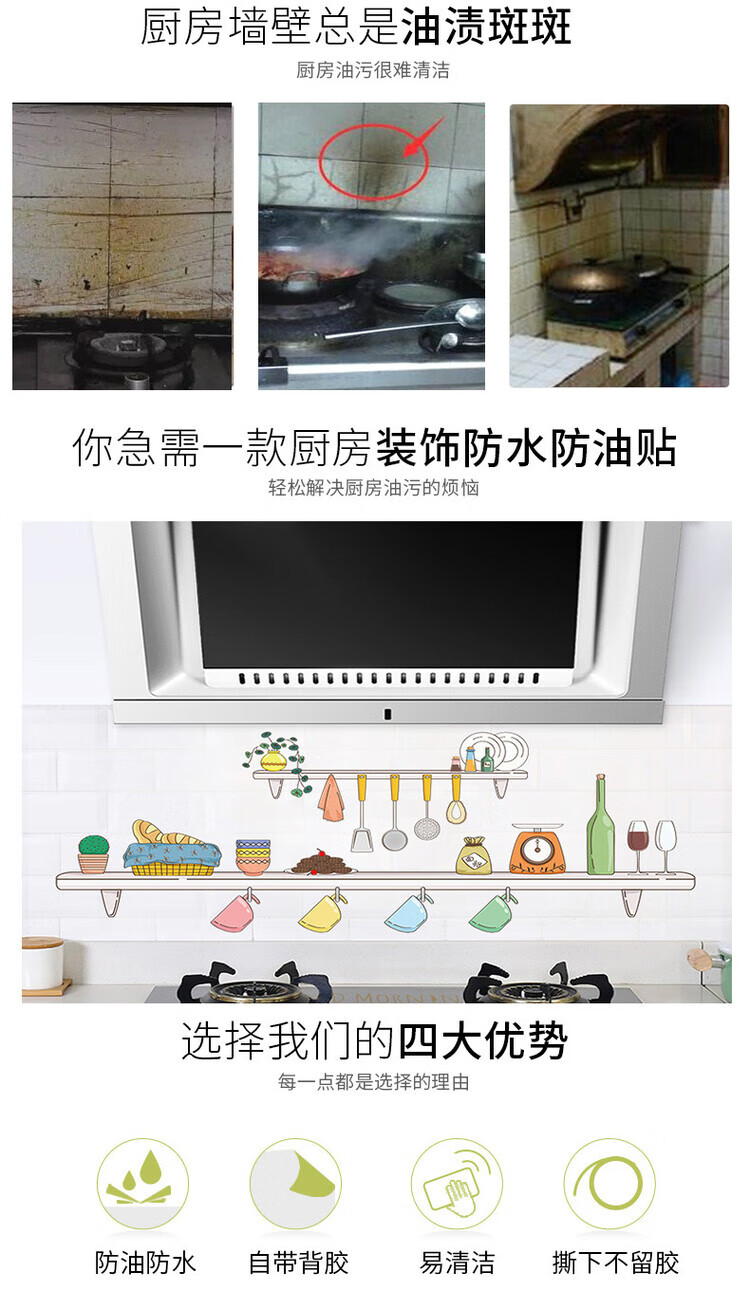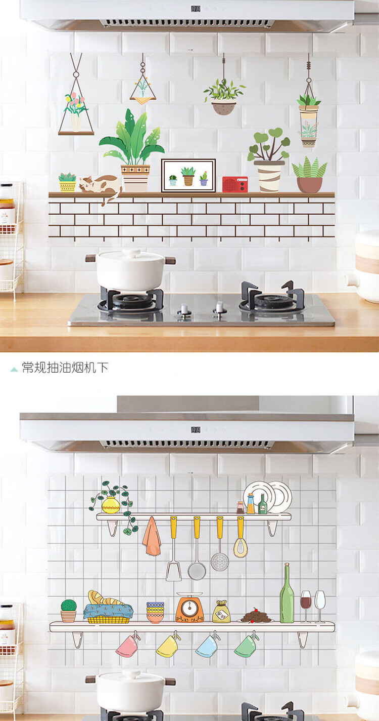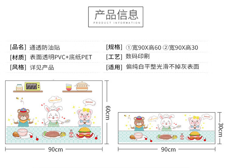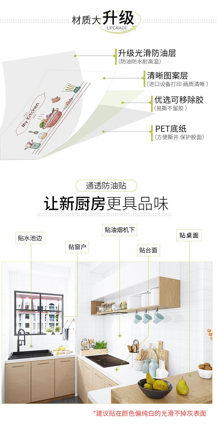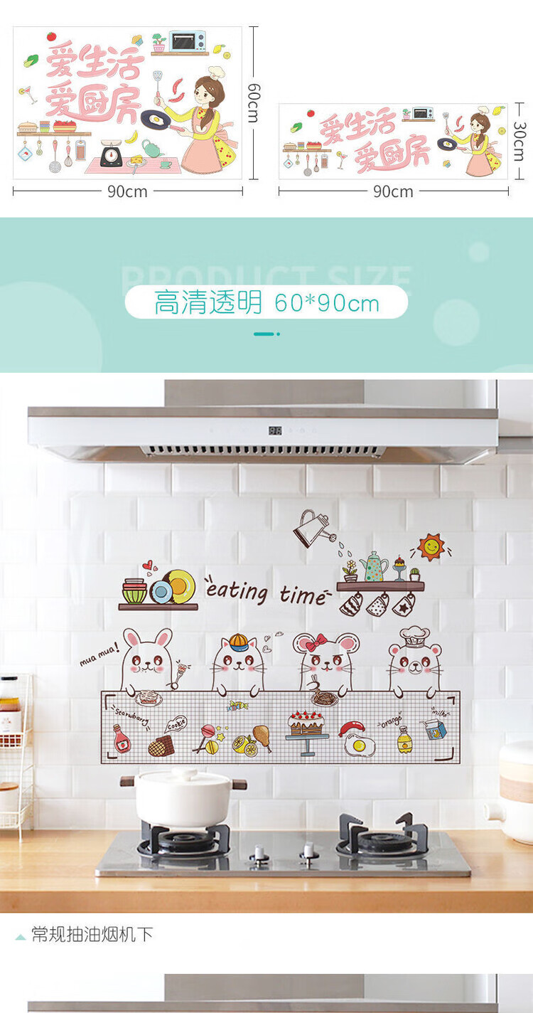 淘样儿厨房防油烟贴纸透明家用橱柜灶台瓷砖贴墙壁纸防水自粘耐高温 三餐四季(阻燃)60x90 特大