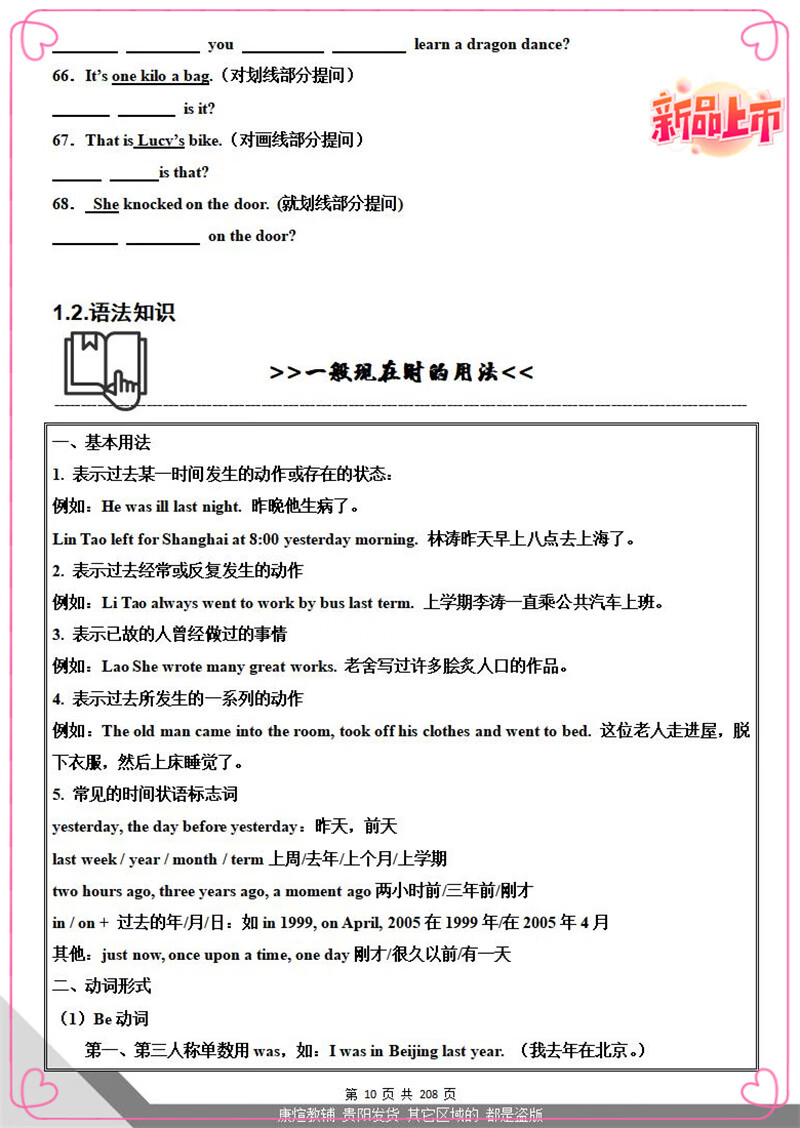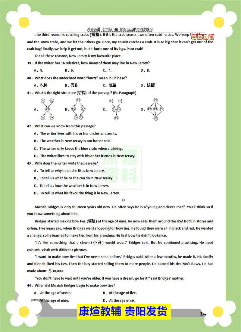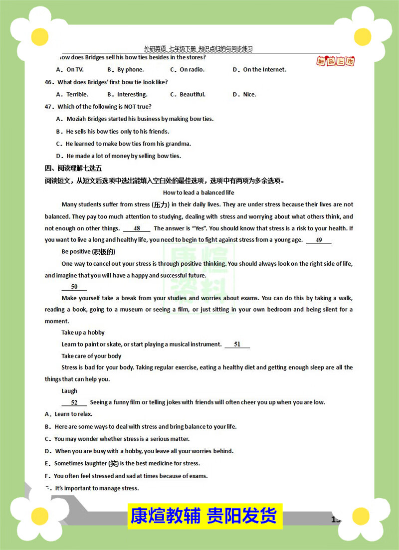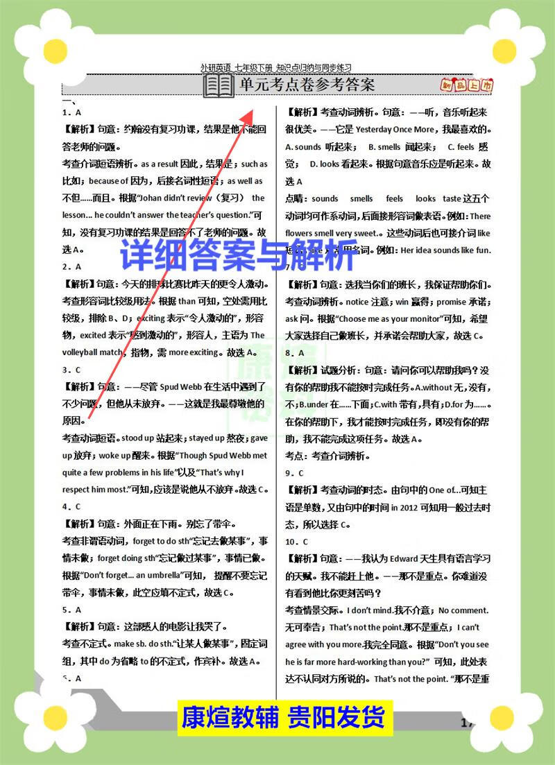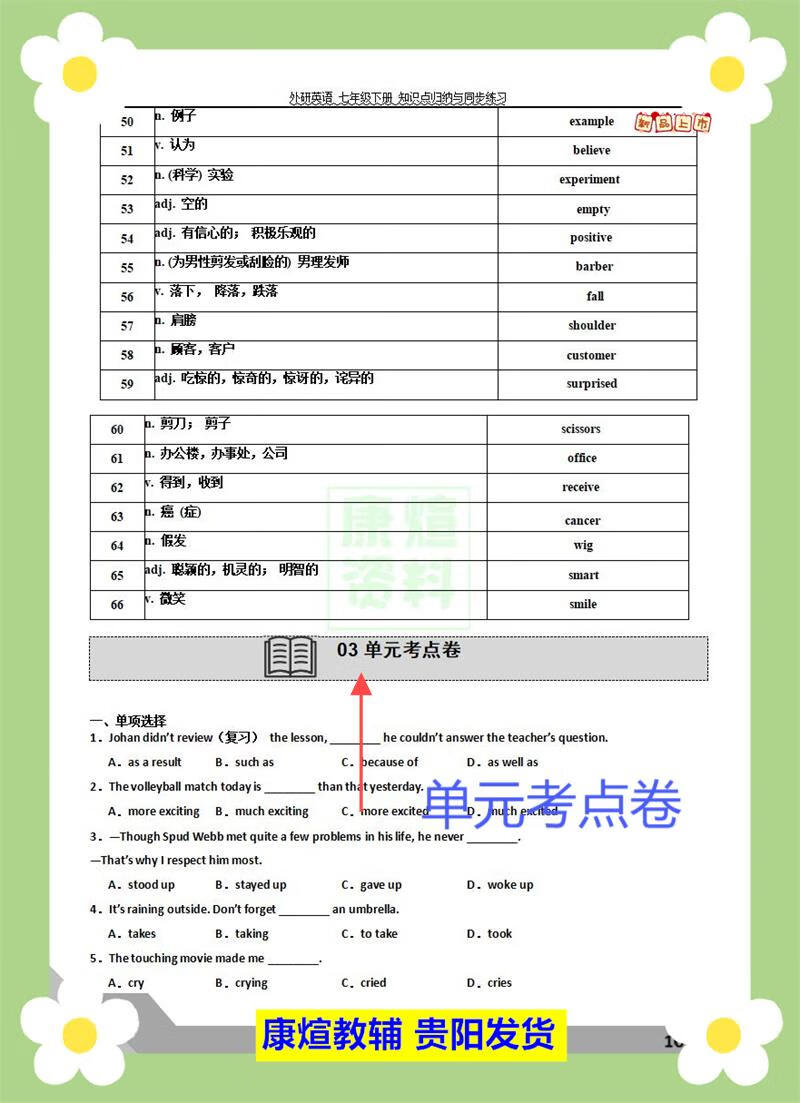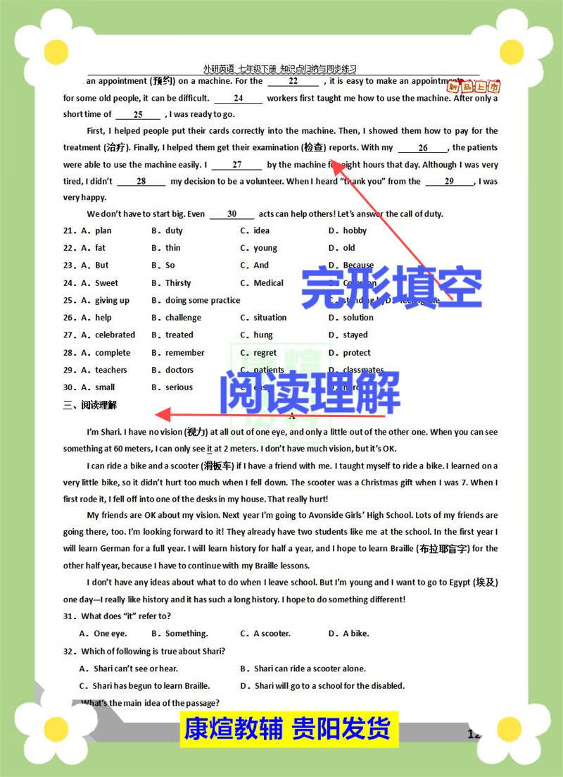 外研版七年级下册英语阅读理解完形填空语法专项训练同步必刷题 【2页人教版】语法选择20道
