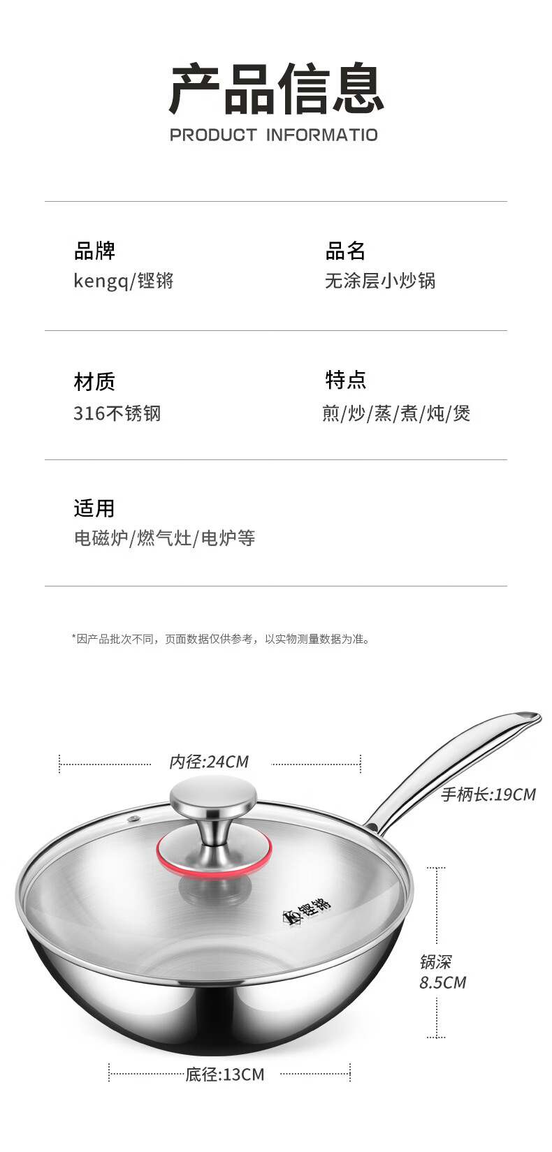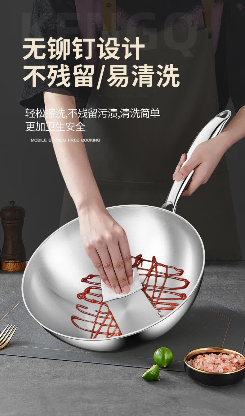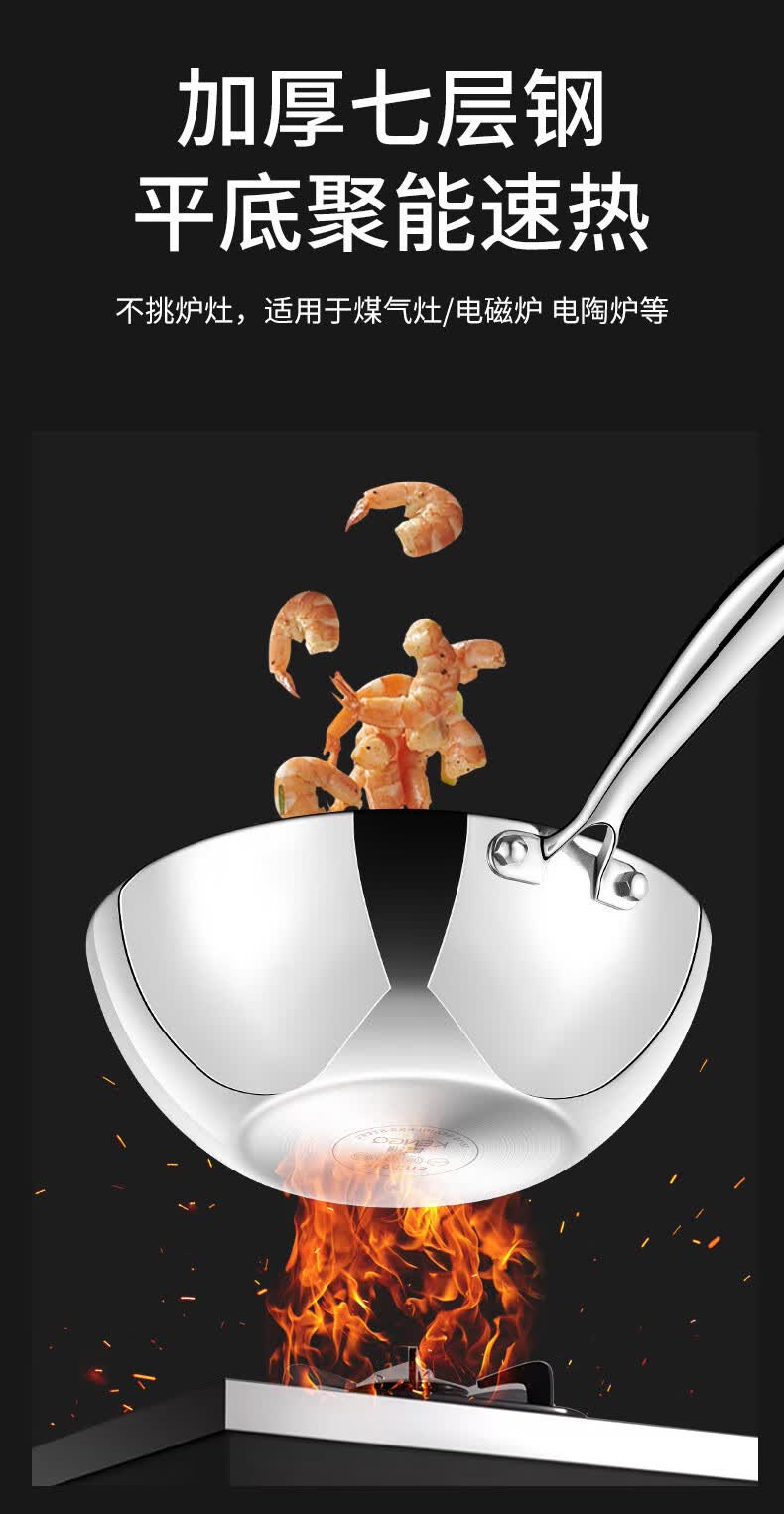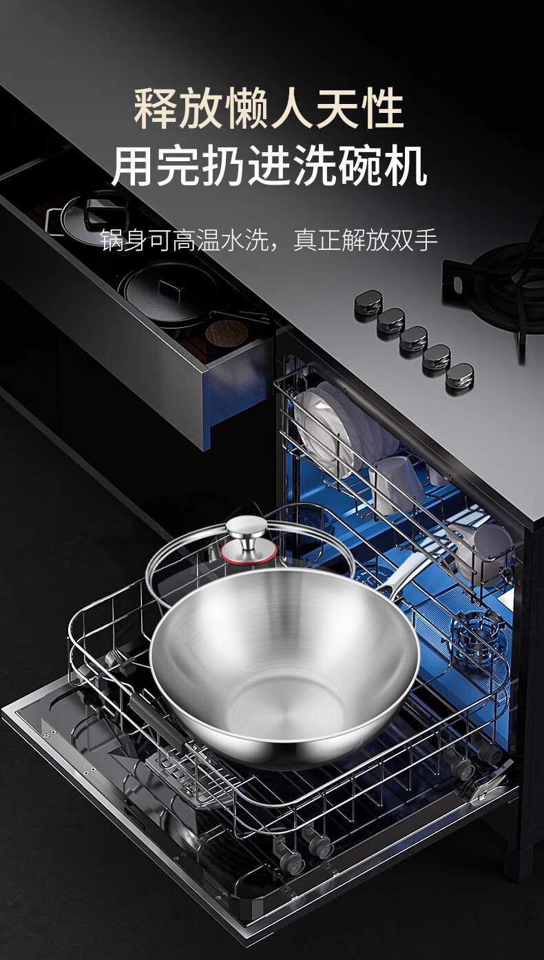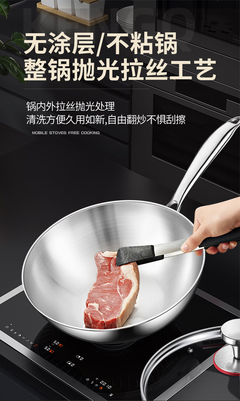 铿锵316不锈钢炒锅家用电磁炉通用一人食平底炒菜锅无涂层不粘小炒锅 30cm 带盖+蒸格【316加厚无涂层】