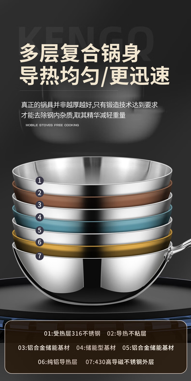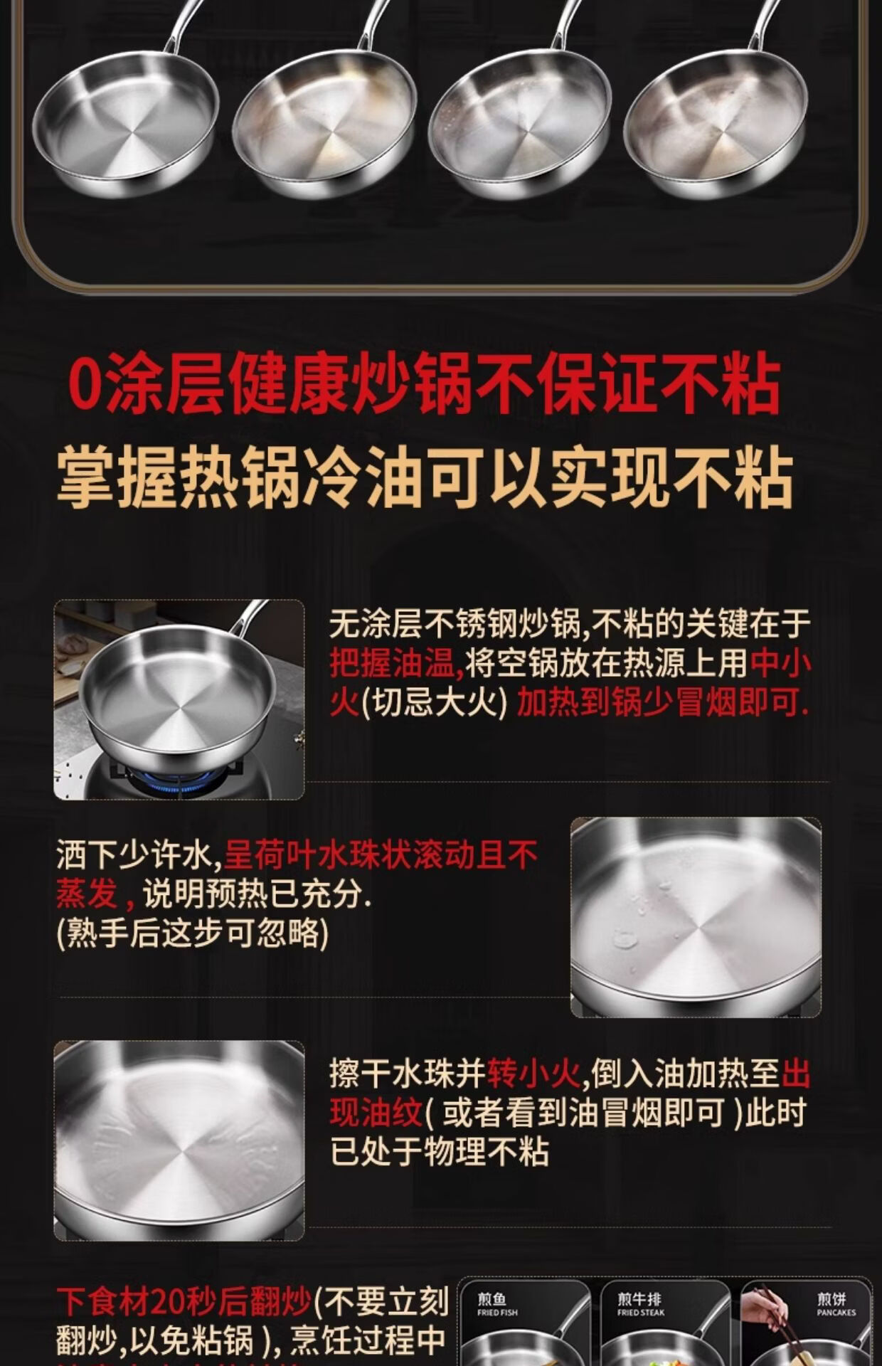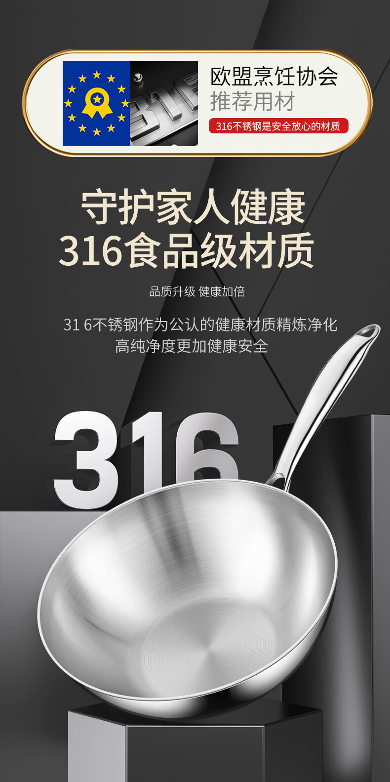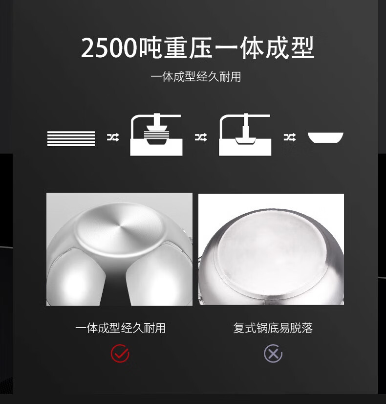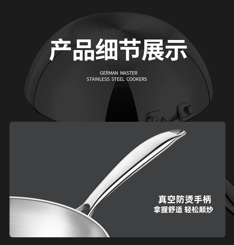 铿锵316不锈钢炒锅家用电磁炉通用一人食平底炒菜锅无涂层不粘小炒锅 30cm 带盖+蒸格【316加厚无涂层】
