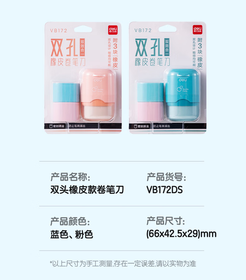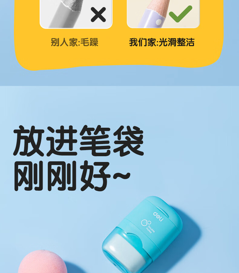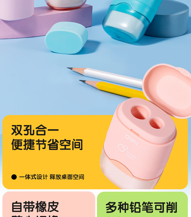 得力(deli)儿童卷笔刀转笔削笔刀小学生手动女孩迷你小刀男孩刨笔机小型自动削笔器幼儿园削铅笔刀耐用 【方形款】6个装
