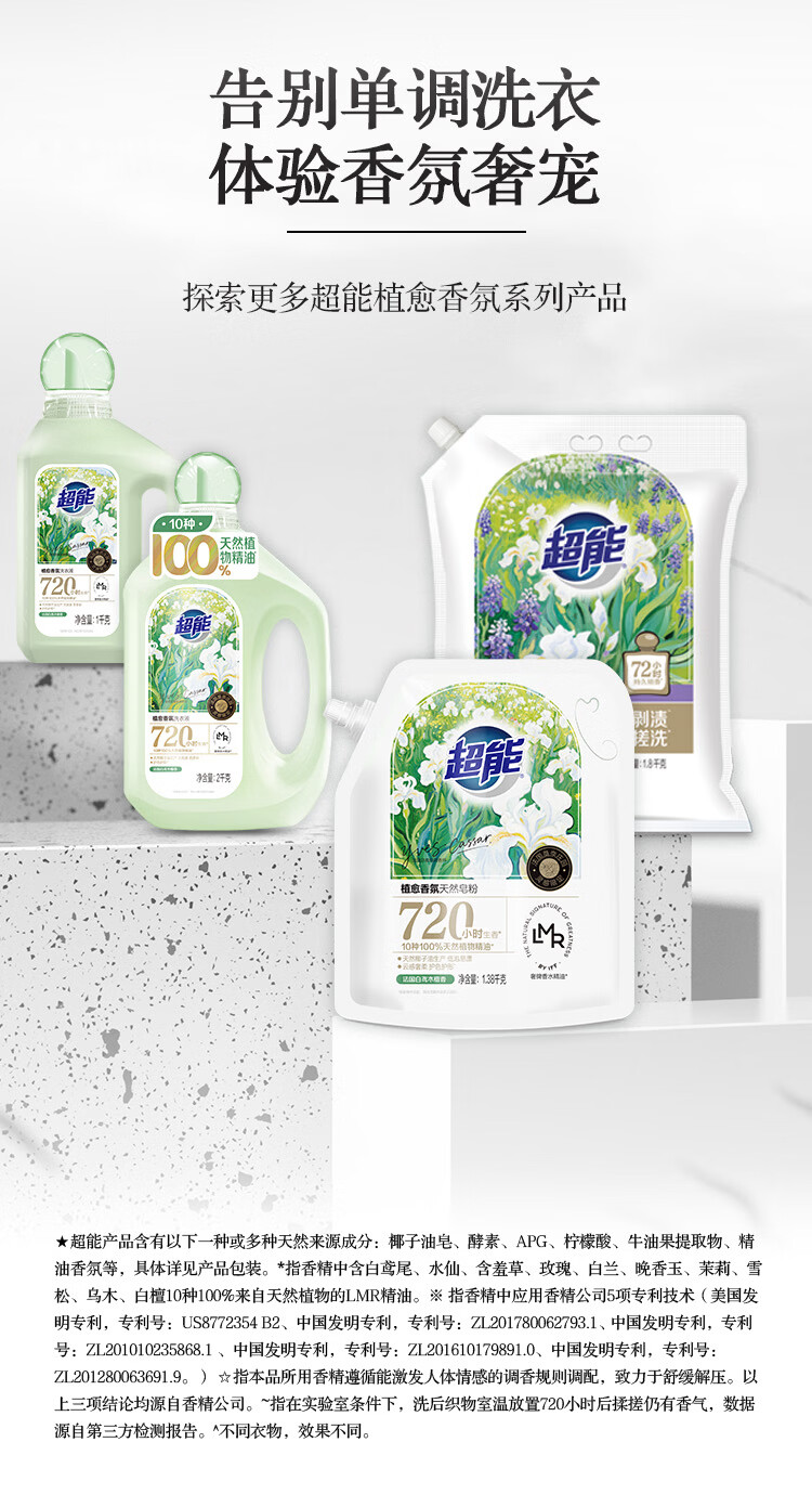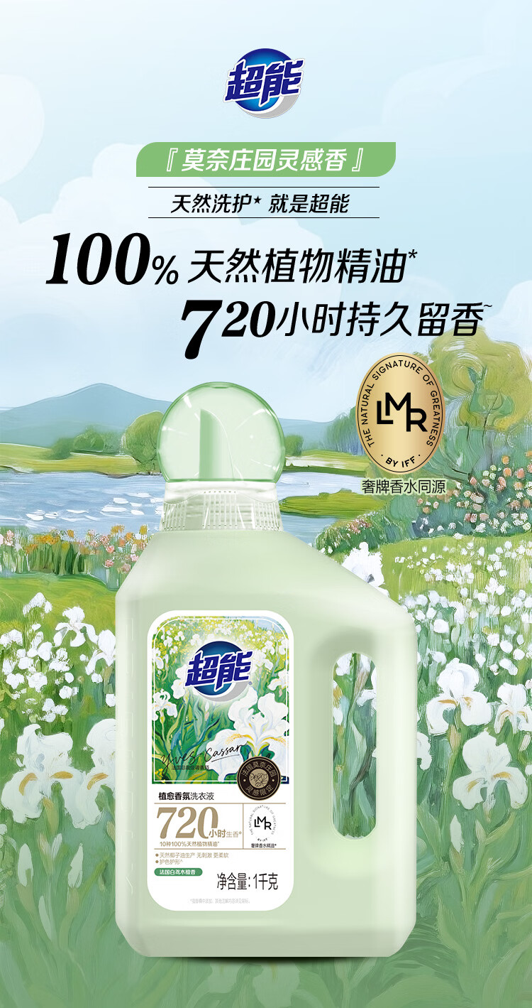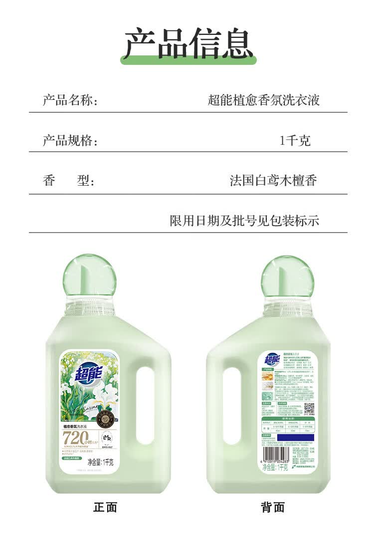 超能植愈香氛洗衣液 法国白鸢木檀香 1kg 720h持久留香王天辰同款