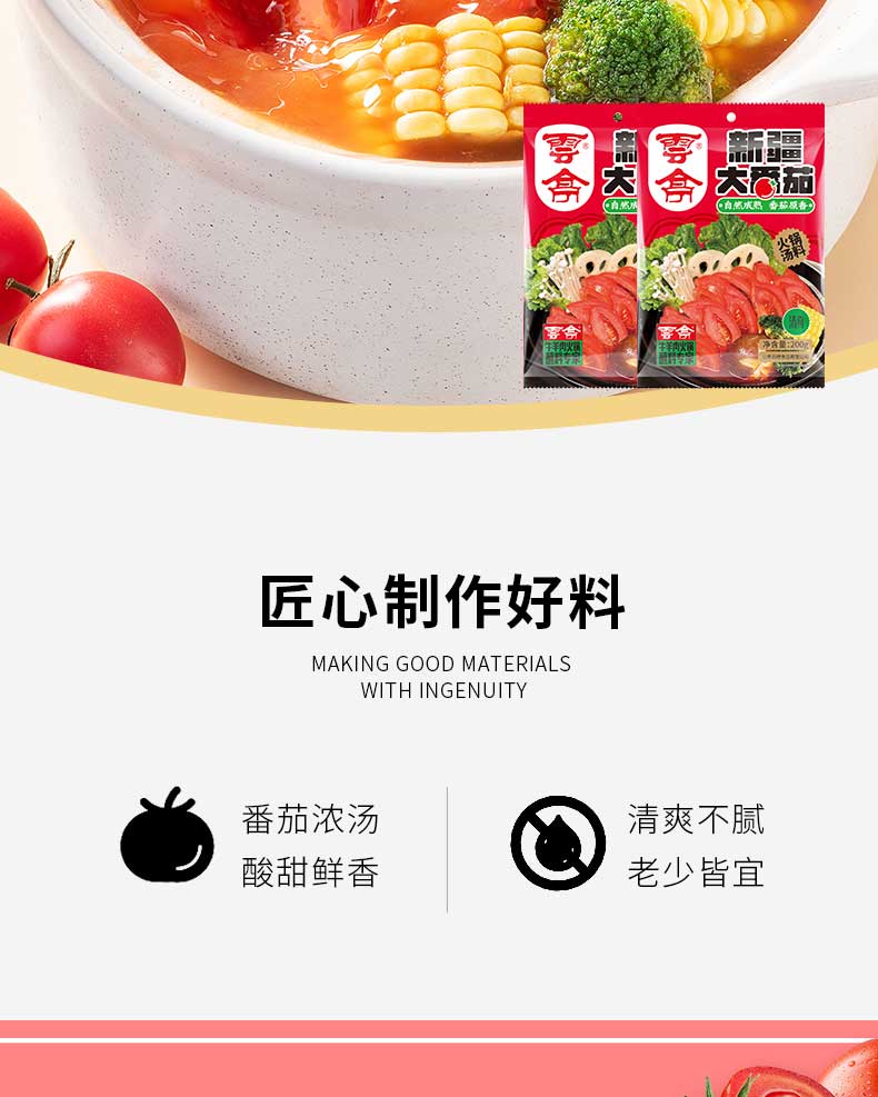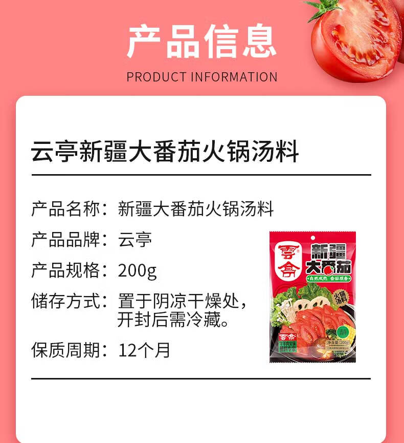 雲亭清真新疆大番茄火锅底料200g*2番茄鲜香汤料涮菜家用汤料 番茄底料200g*1袋