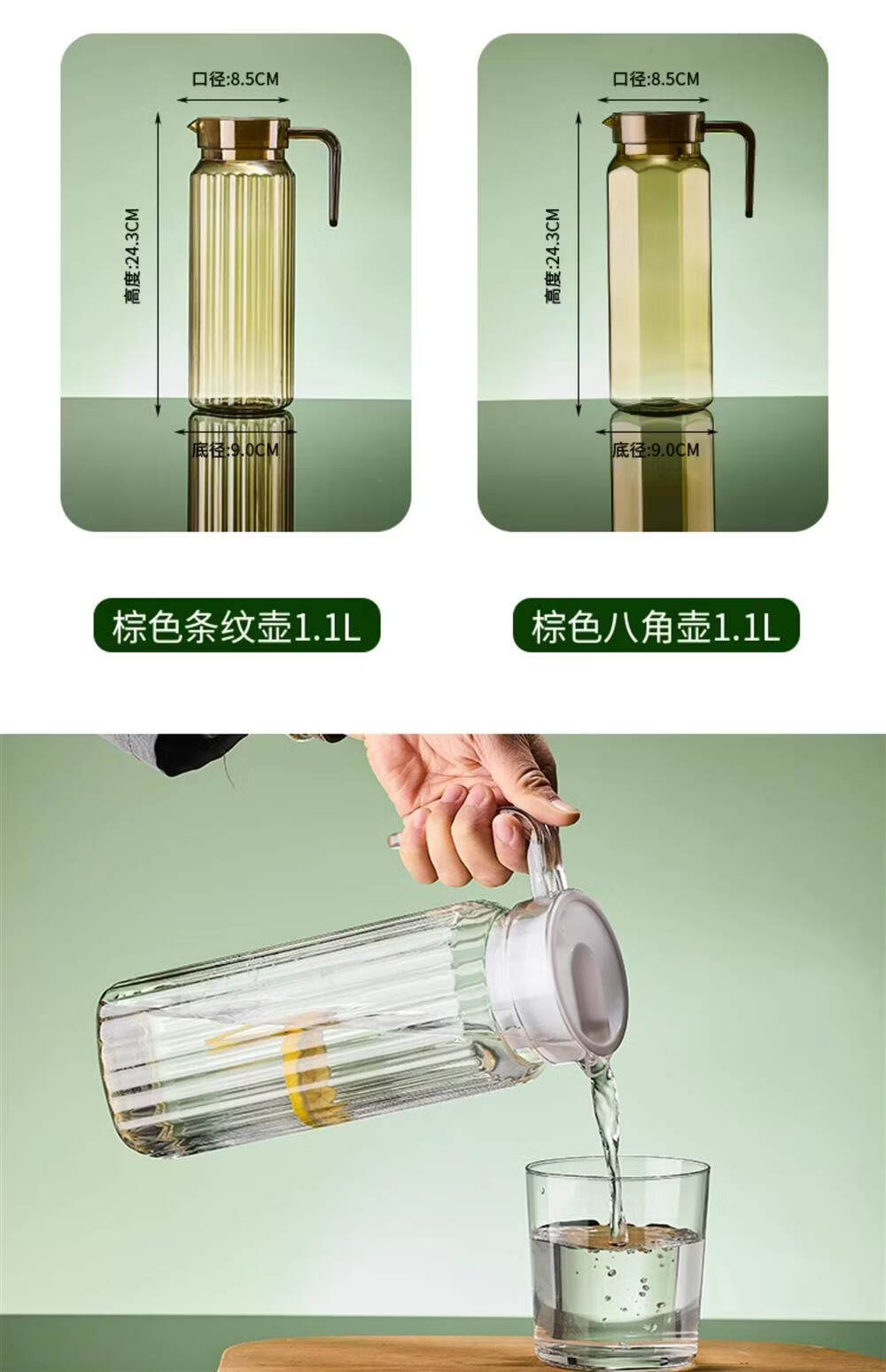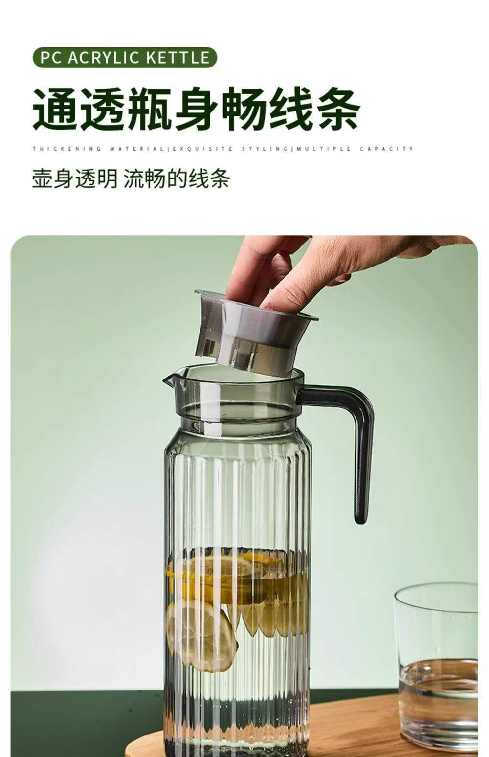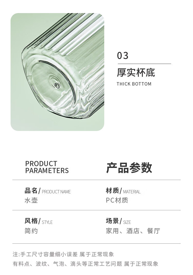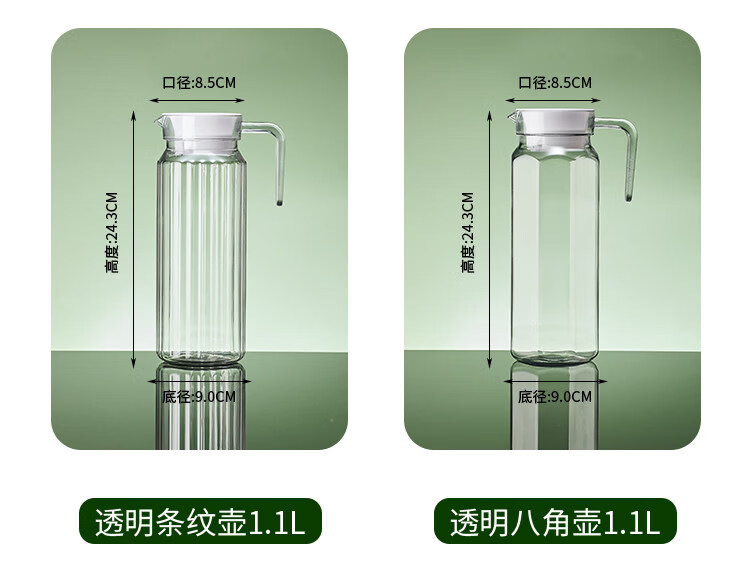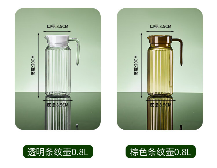 凉水壶家用耐高温大容量透明饮料壶 【抗高低温耐摔】PC【八角壶800ML】