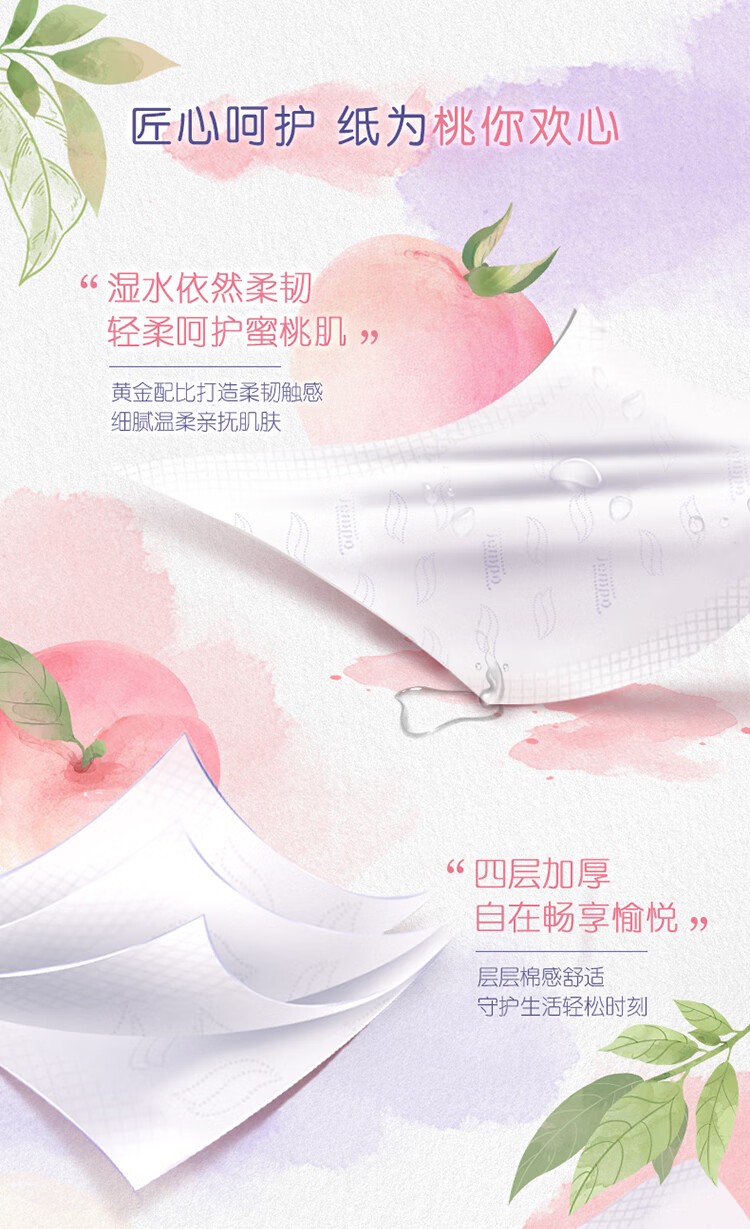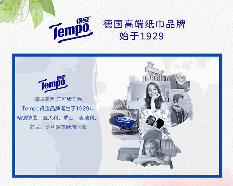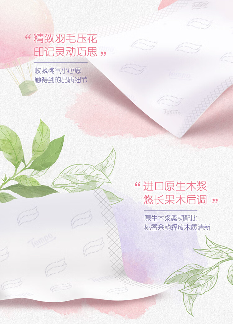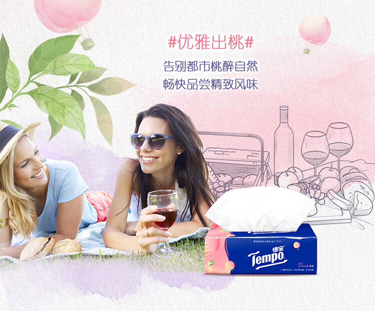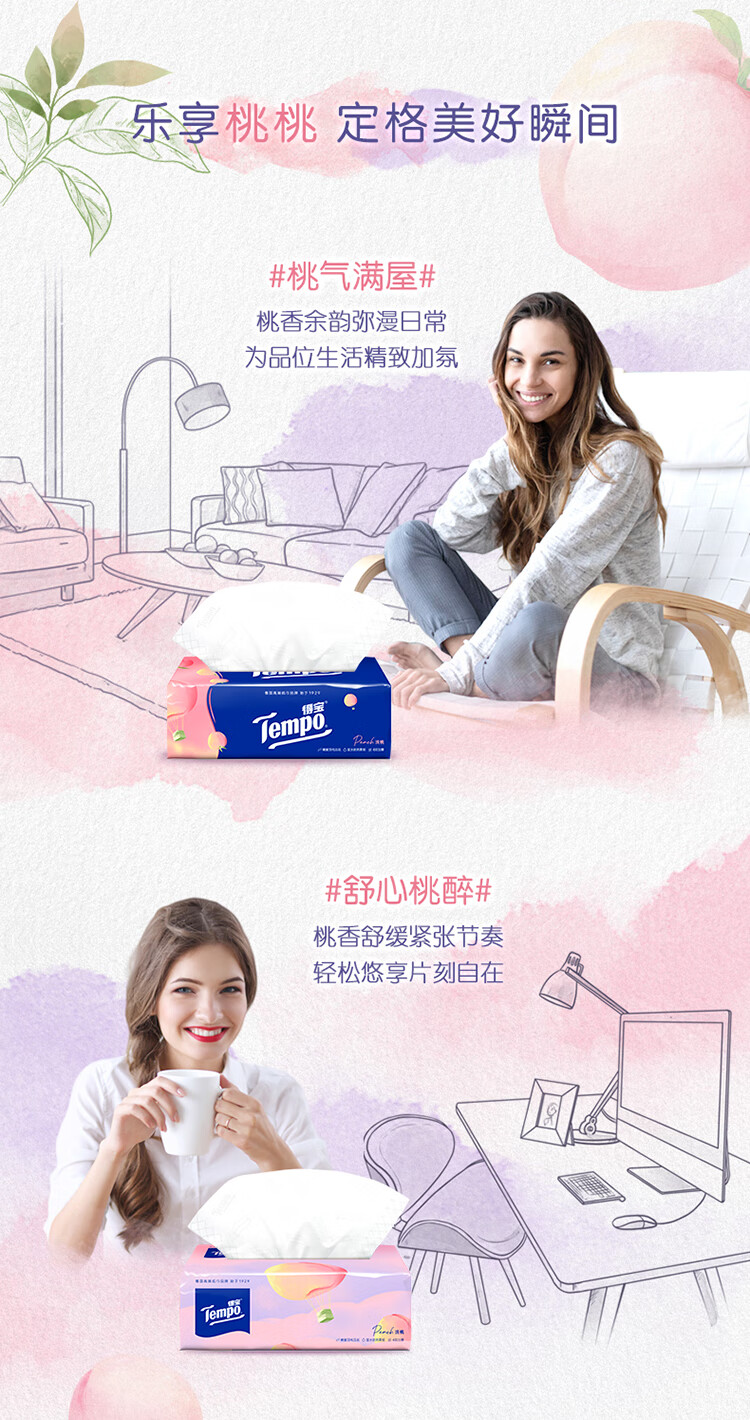 得宝(TEMPO)一博同款 抽纸 真M码 甜心桃味4层90抽*16包 湿水不易破 纸巾