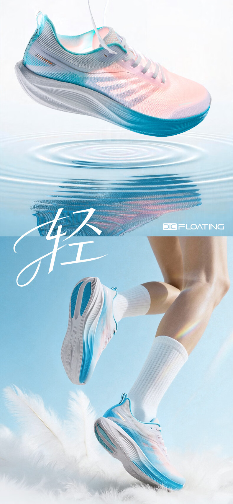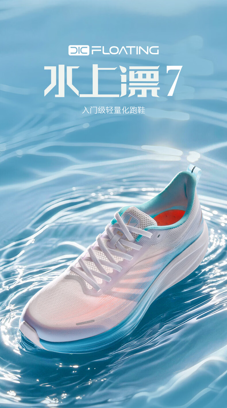 鸿星尔克水上漂7跑步鞋男鞋夏季新款薄网面透气运动鞋减震便超轻便跑鞋子 【冰云蓝】尔克白/荧光青蓝 -男 42
