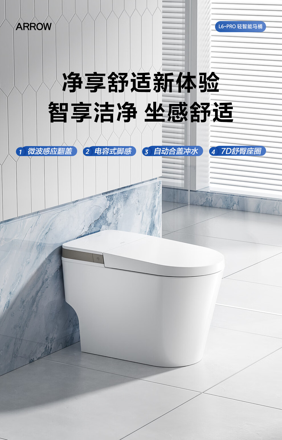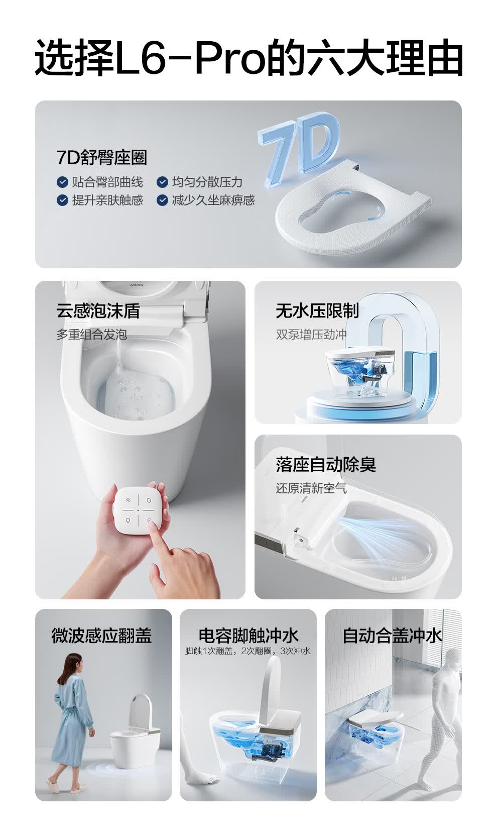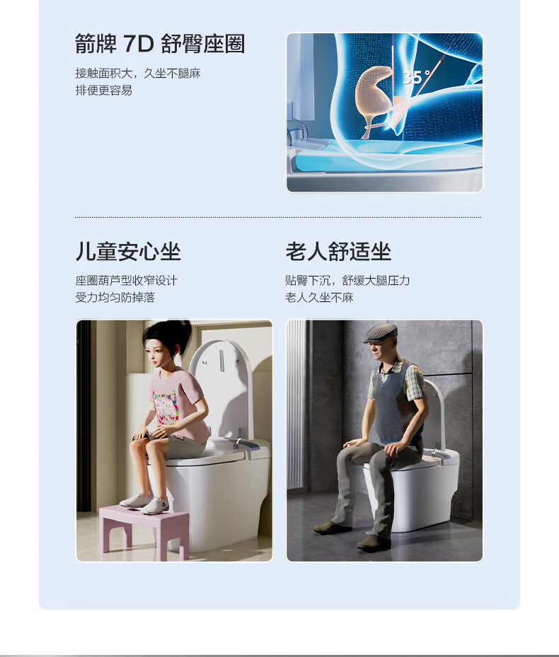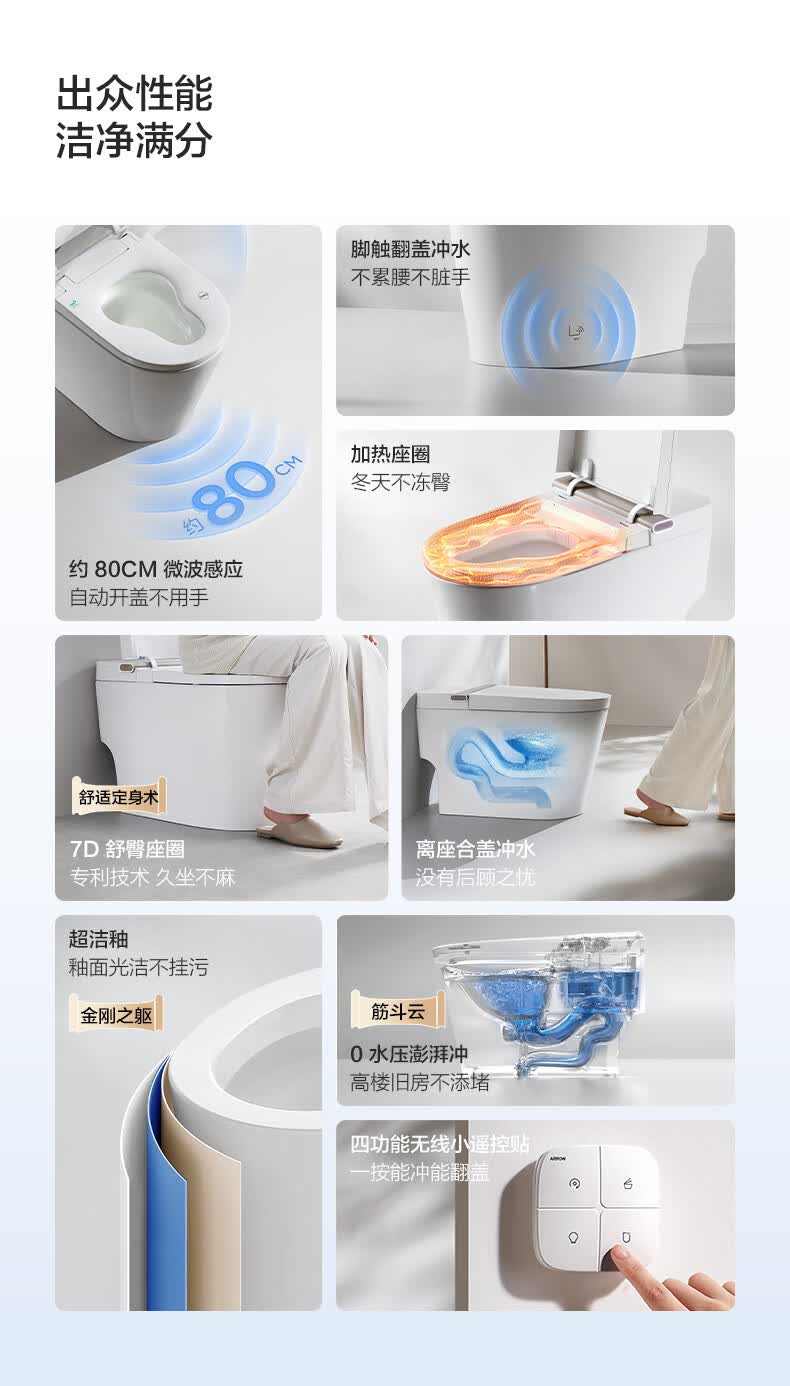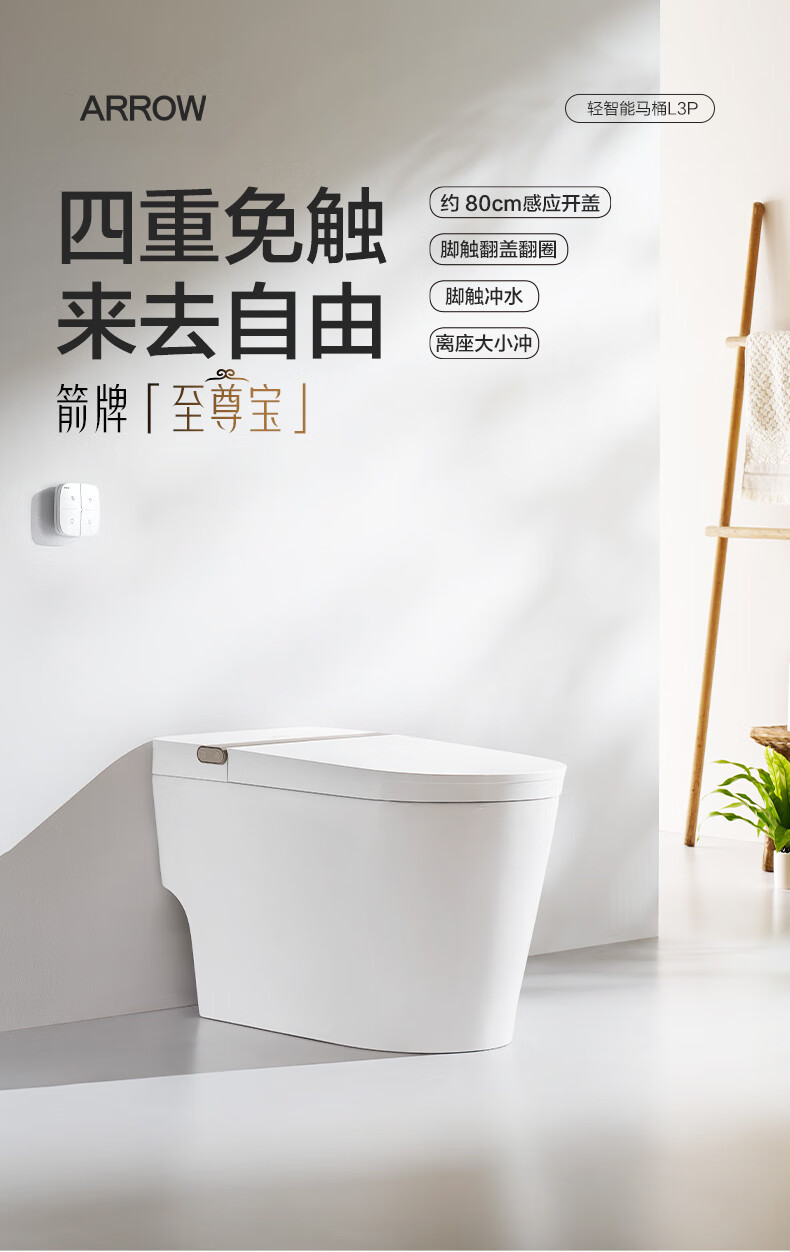 箭牌(ARROW)轻智能马桶低水压脚触冲水抗菌座圈离座自动冲水座圈加热坐便器 【L6-Pro 泡沫盾|翻盖翻圈】1171-P 305坑距