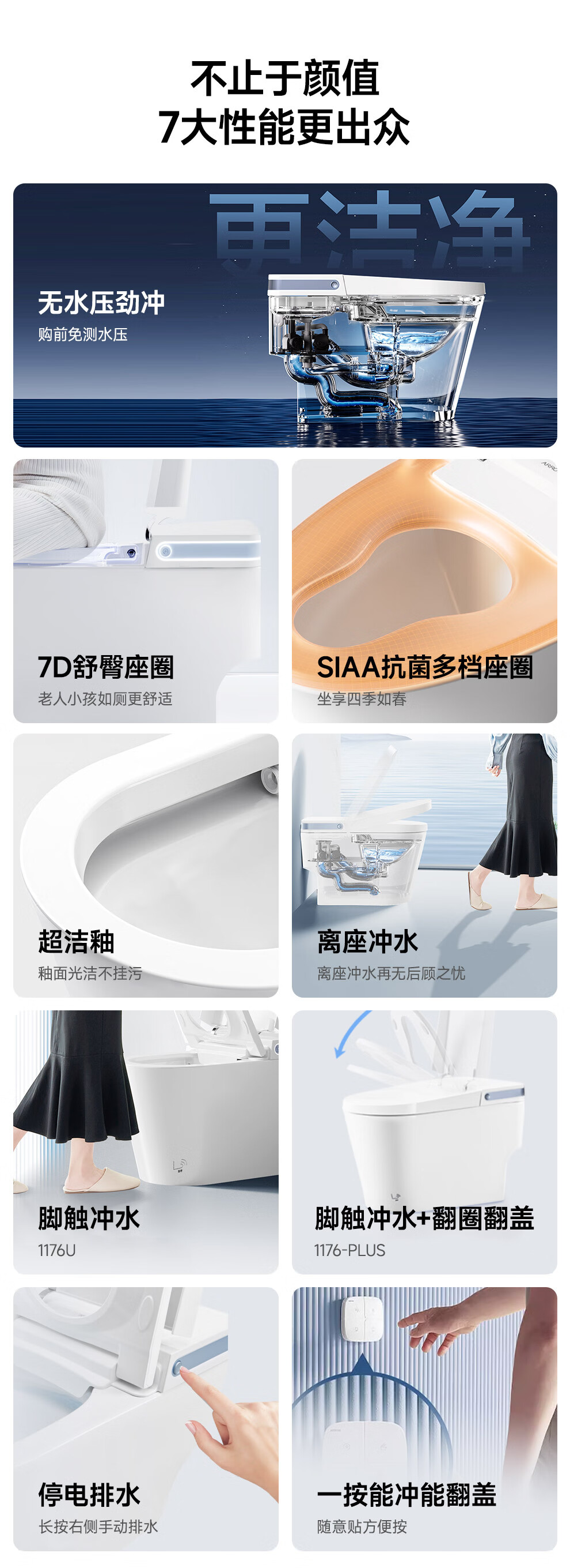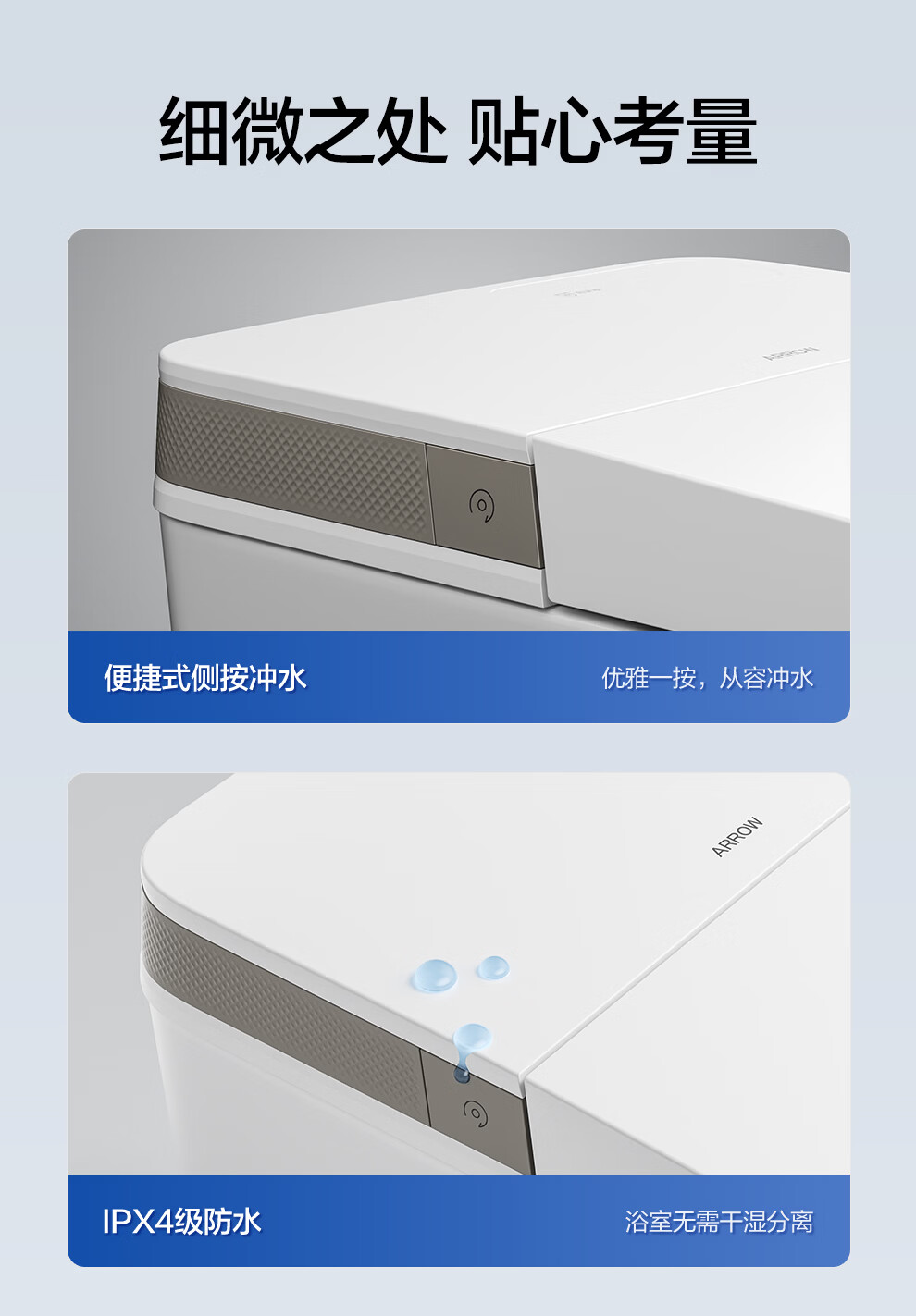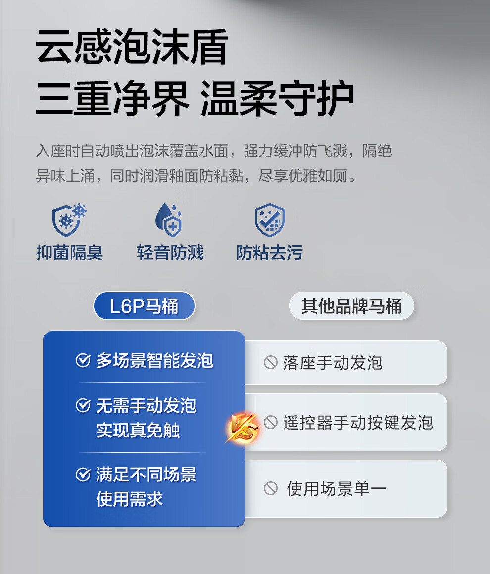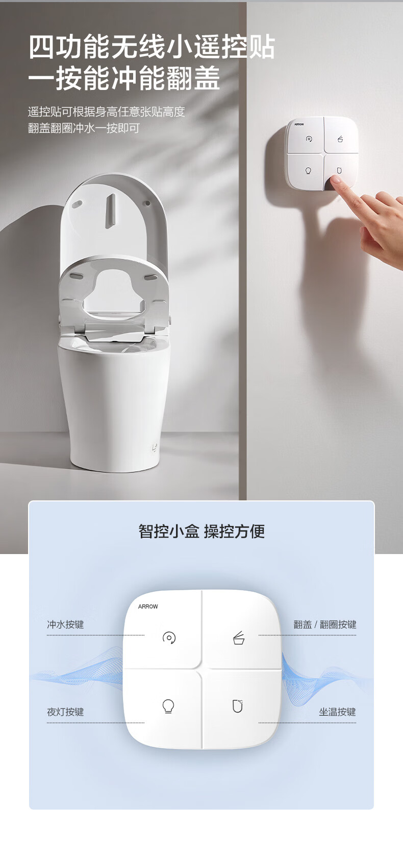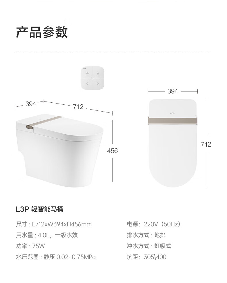 箭牌(ARROW)轻智能马桶低水压脚触冲水抗菌座圈离座自动冲水座圈加热坐便器 【L6-Pro 泡沫盾|翻盖翻圈】1171-P 305坑距