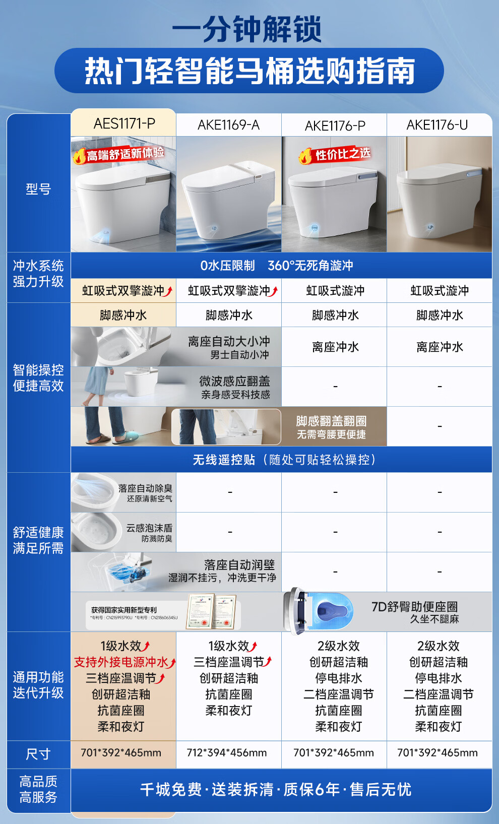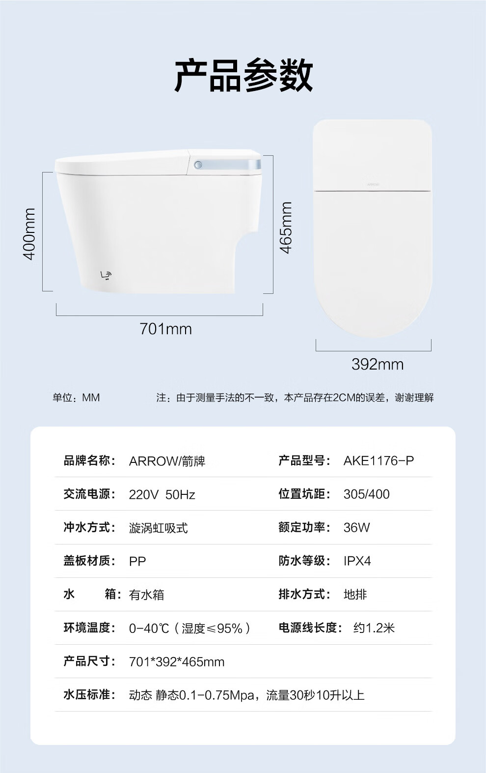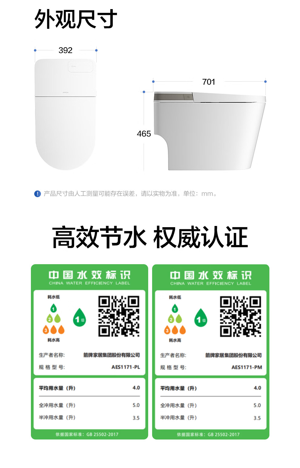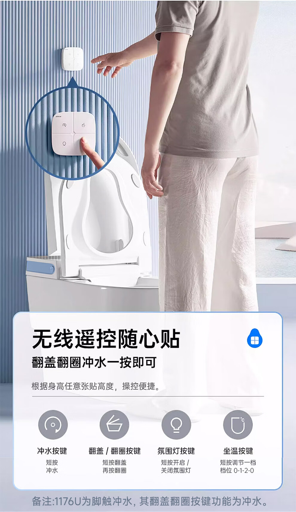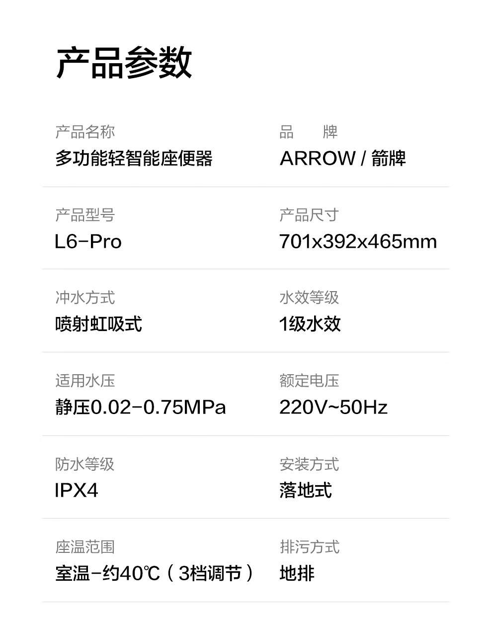 箭牌(ARROW)轻智能马桶低水压脚触冲水抗菌座圈离座自动冲水座圈加热坐便器 【L6-Pro 泡沫盾|翻盖翻圈】1171-P 305坑距
