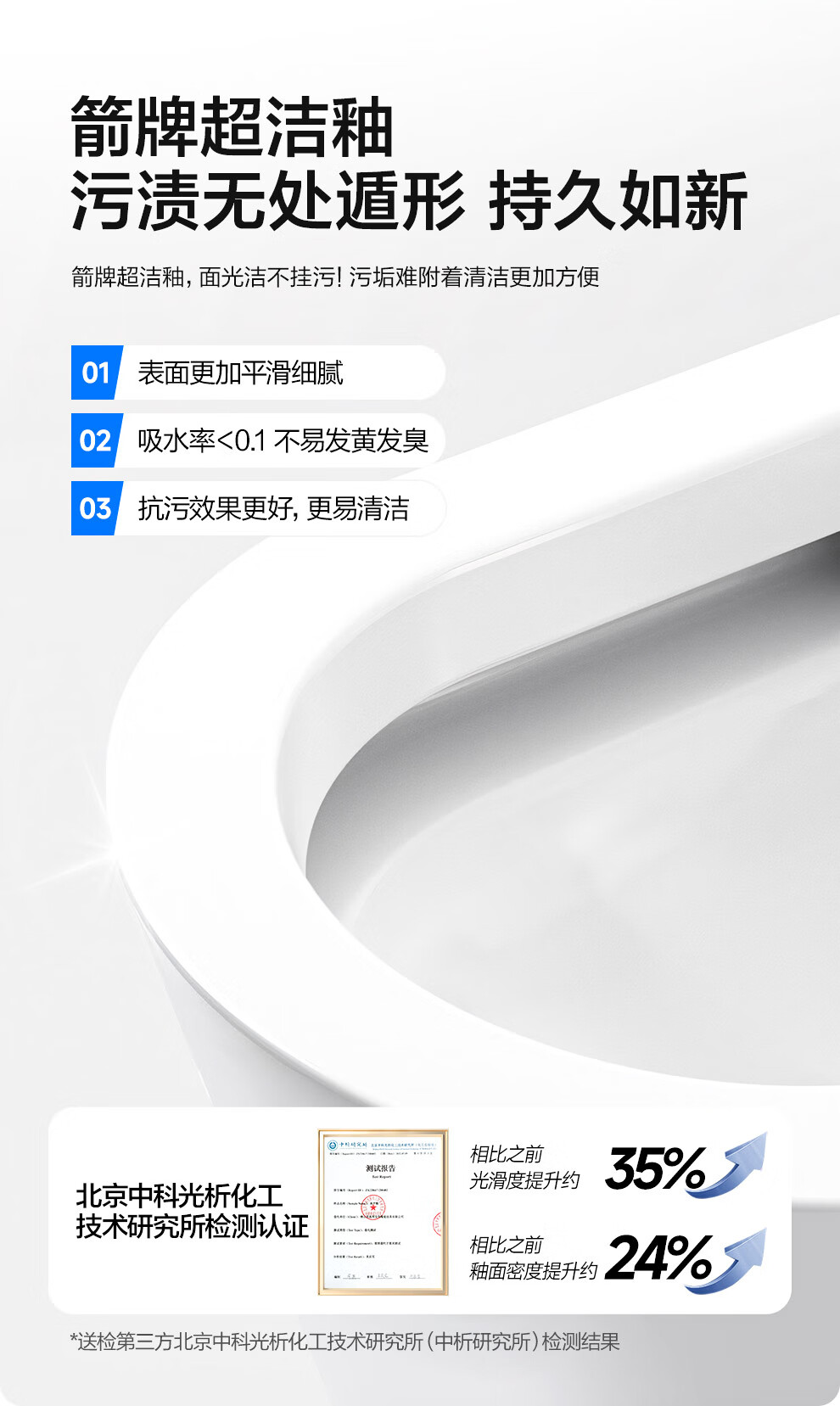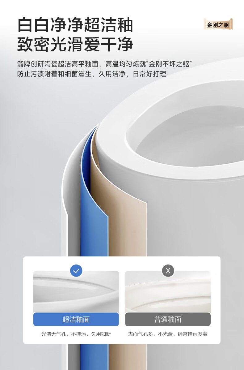 箭牌(ARROW)马桶家用双漩暴风大冲力虹吸防臭防堵节水马桶缓降连体坐便器 【T52】无棱|抗菌座圈12632 305/300mm