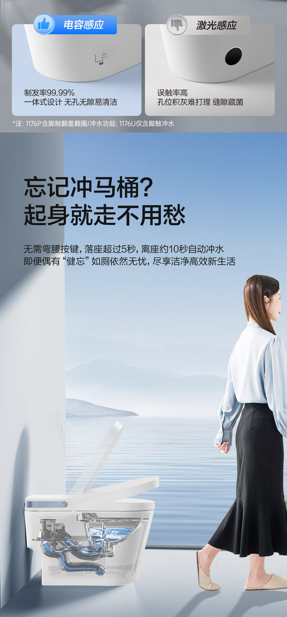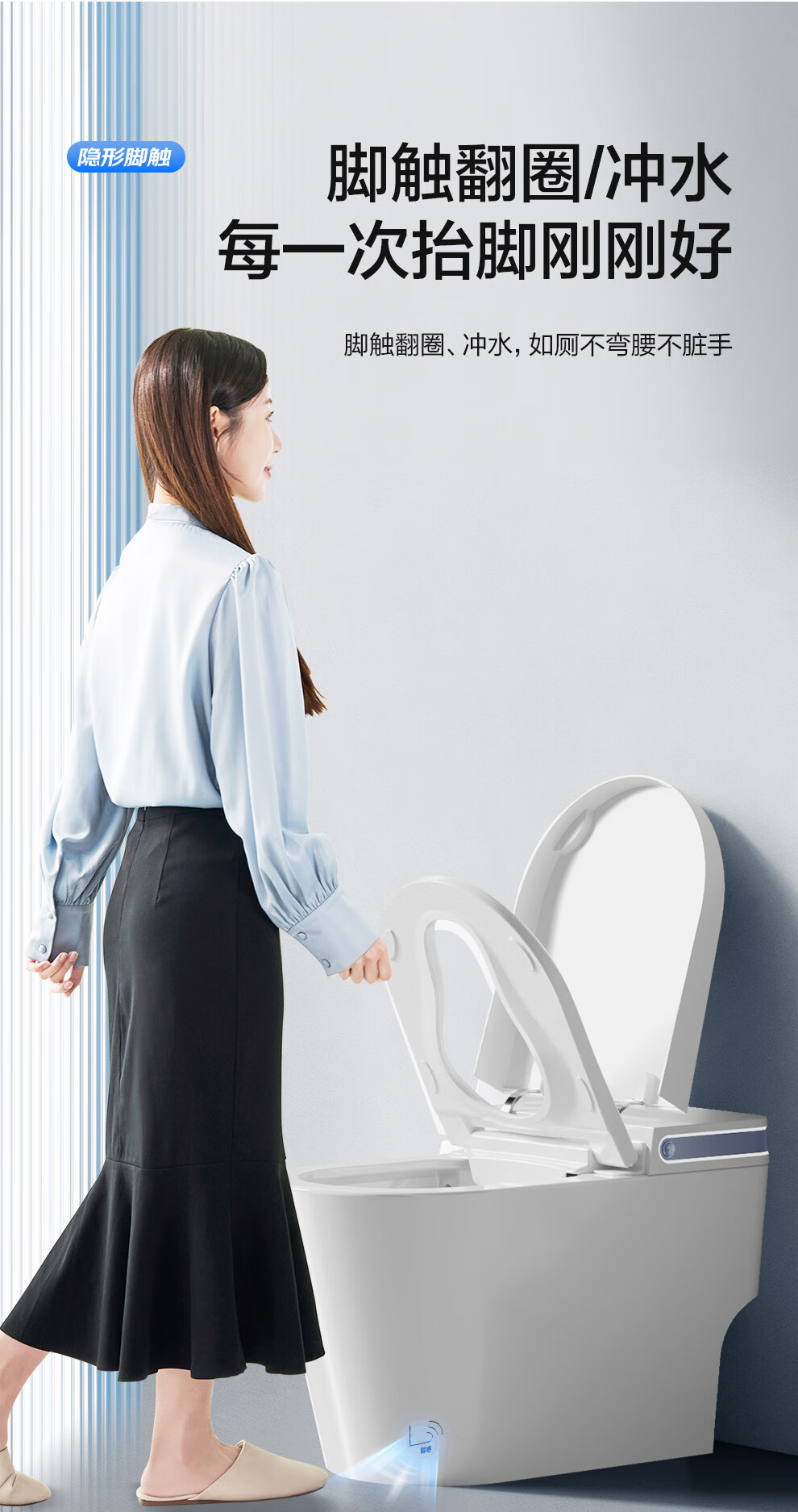 九牧(JOMOO)小牧卫浴轻智能马桶 虹吸式坐便器 无水压限制 停电自动冲水 【专业款】免触脚感+离座自冲+无棱内壁 | S3 305/300mm 【290-390mm选择】