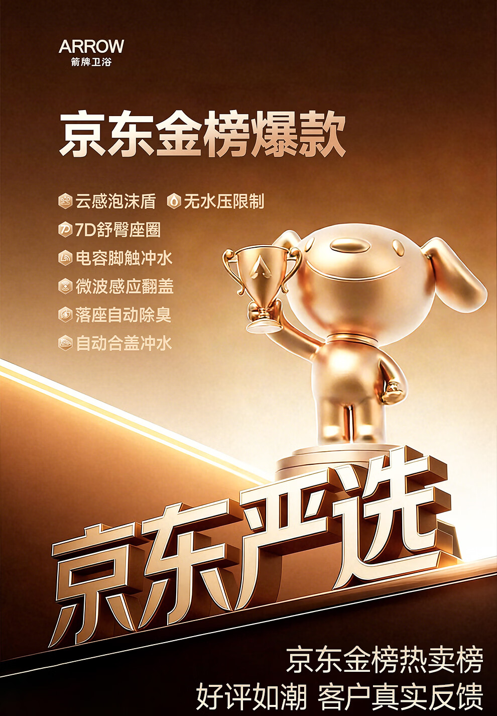 箭牌(ARROW)卫浴大冲力喷射虹吸式防臭节水马桶家用缓降盖板连体抽水坐便器 【金榜爆款】双龙卷漩吸12616 400mm