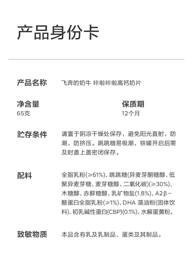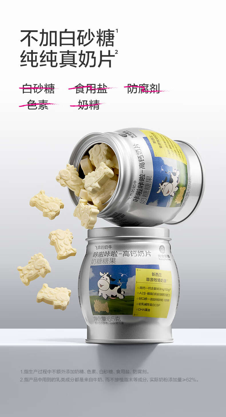 光合星球babycare【飞奔的奶牛】DHA宝宝儿童高钙A2牛乳奶片糖果零食 65g