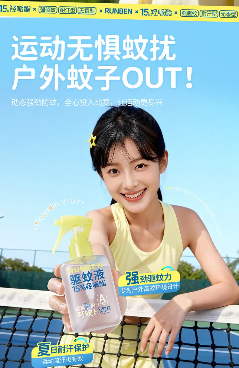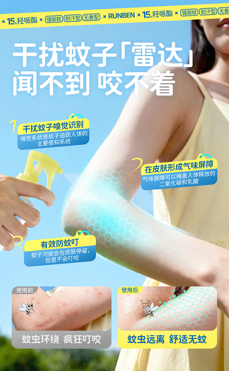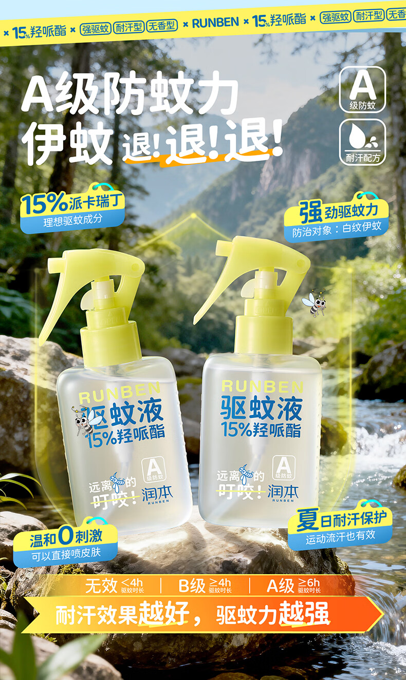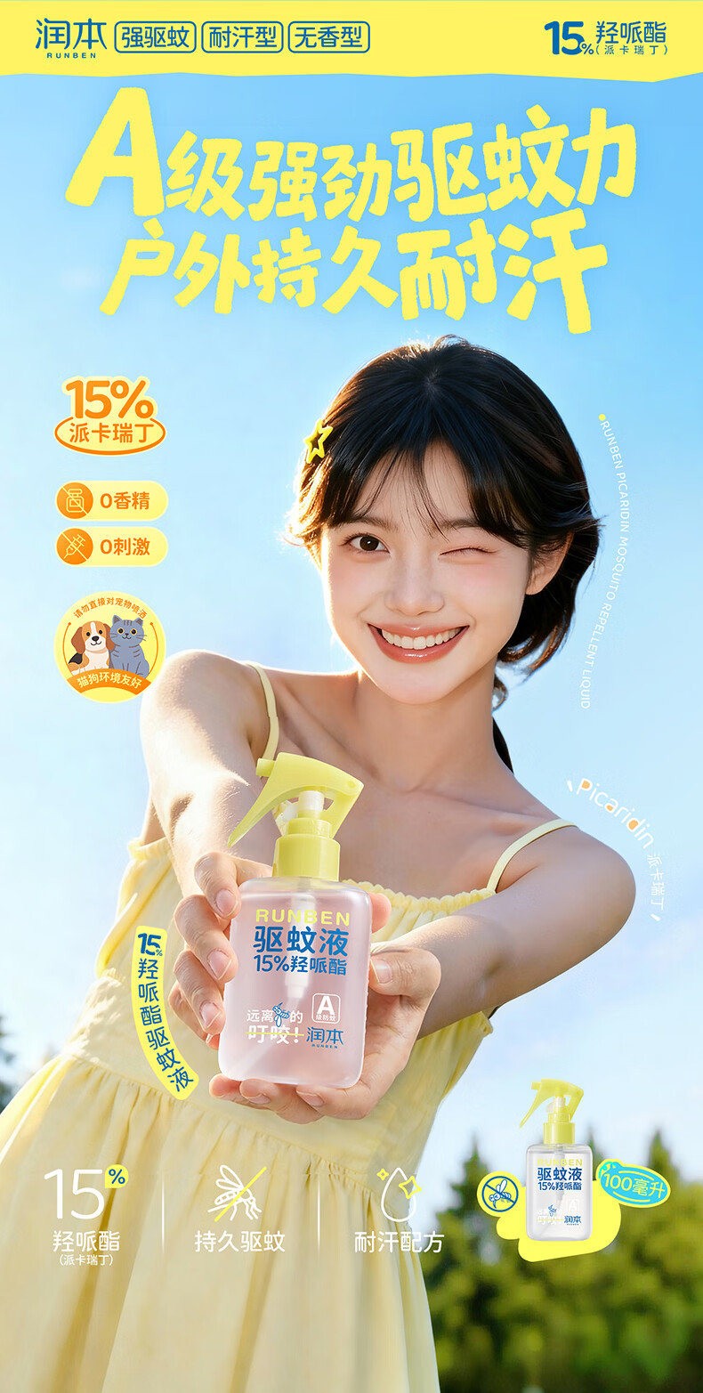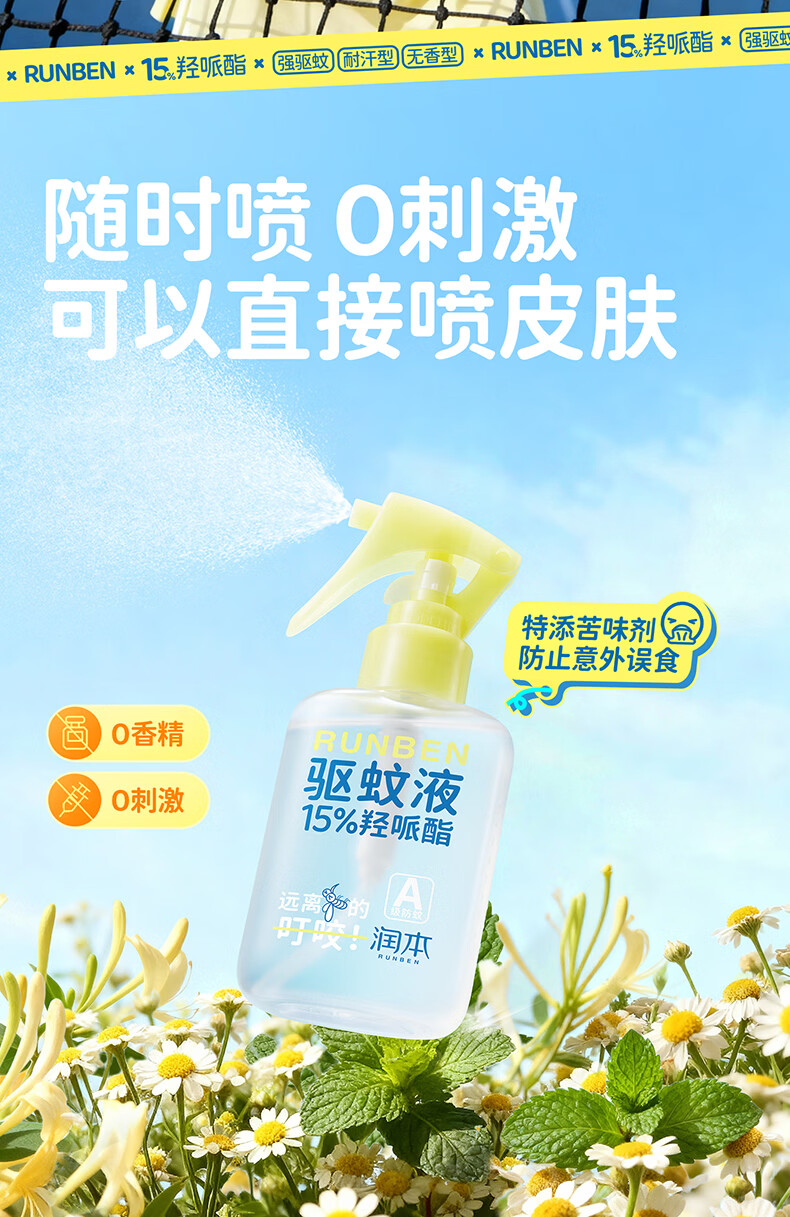 润本驱蚊液驱蚊喷雾花露水户外防蚊虫叮咬驱蚊水15%派卡瑞丁100ml