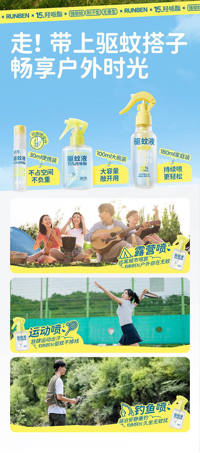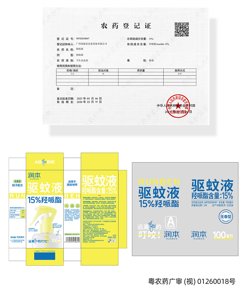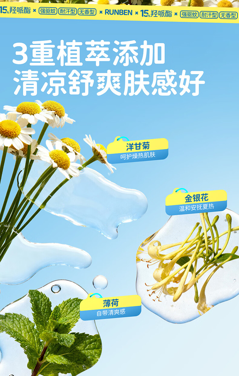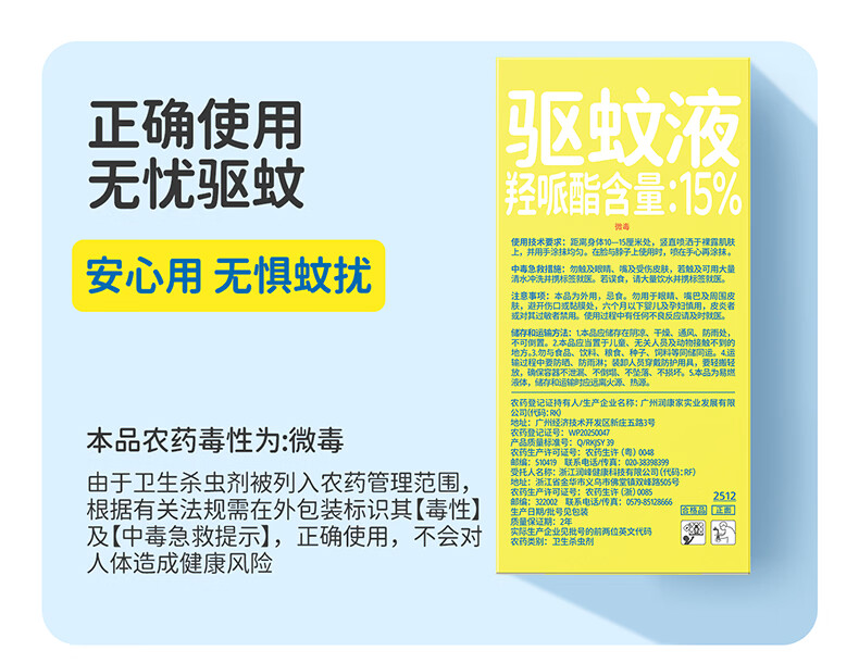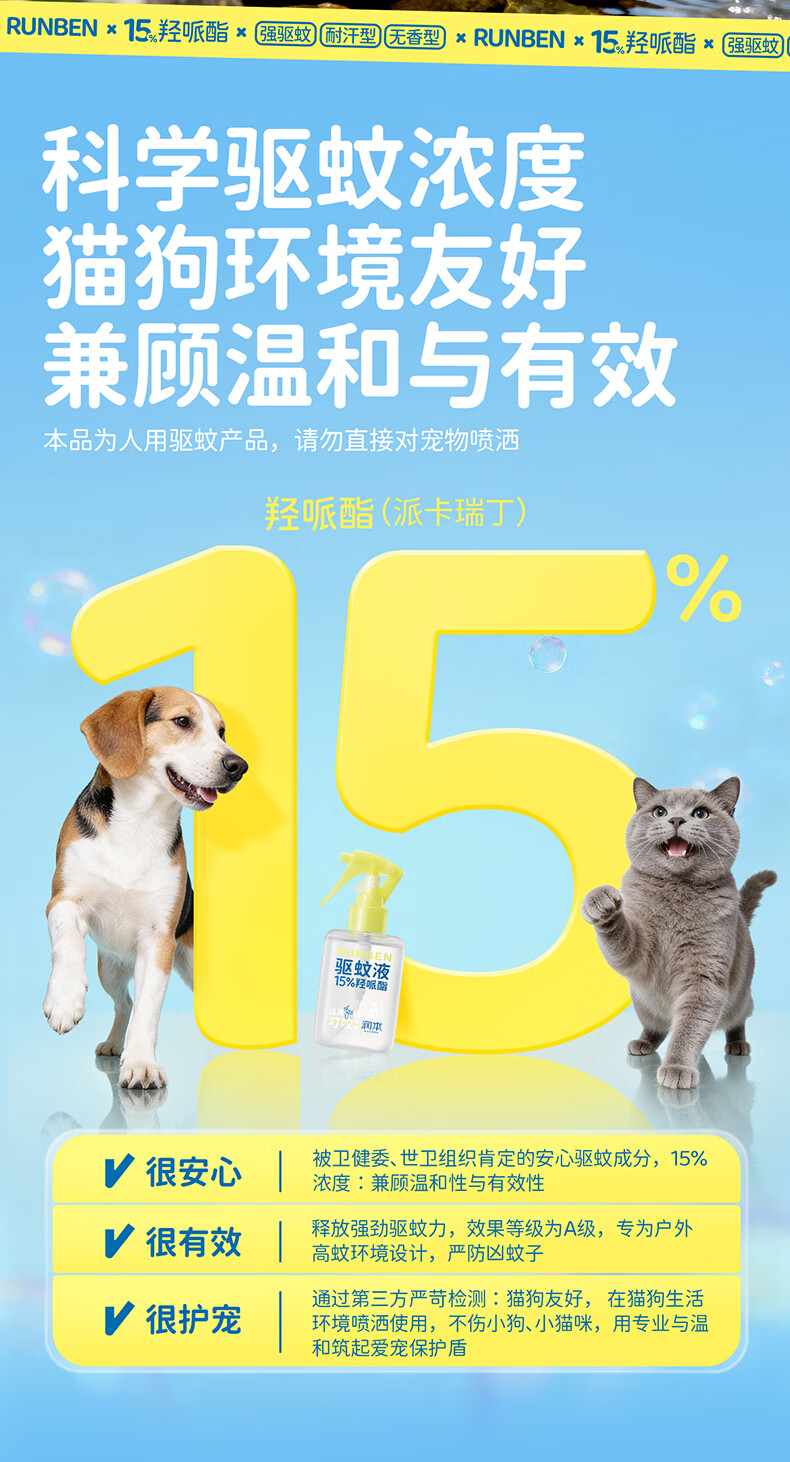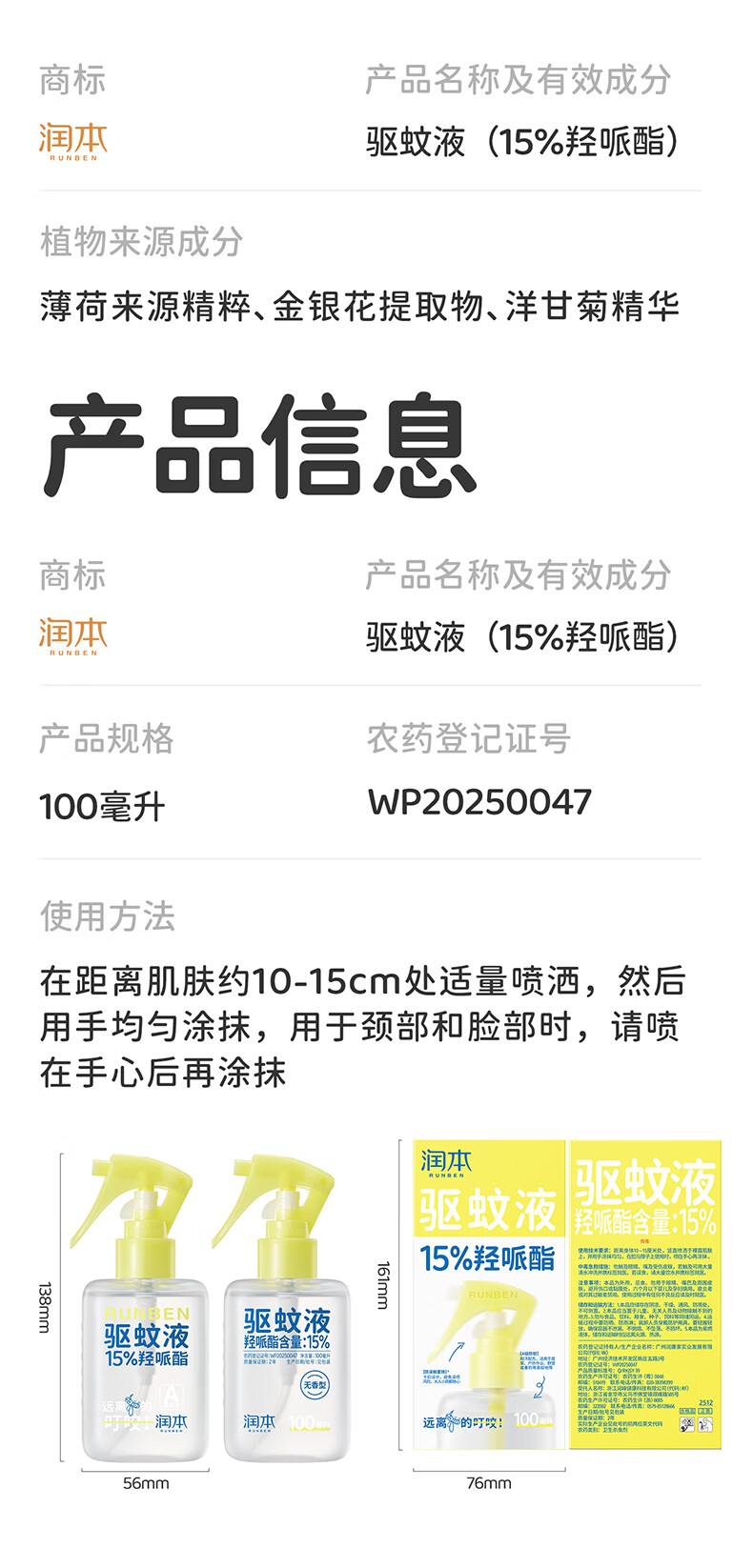 润本驱蚊液驱蚊喷雾花露水户外防蚊虫叮咬驱蚊水15%派卡瑞丁100ml