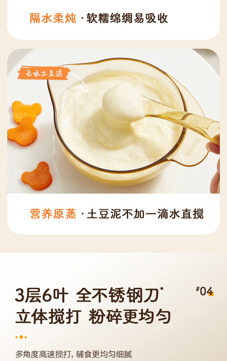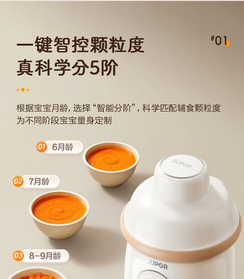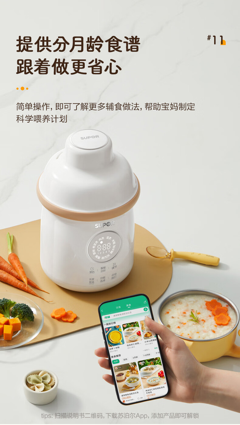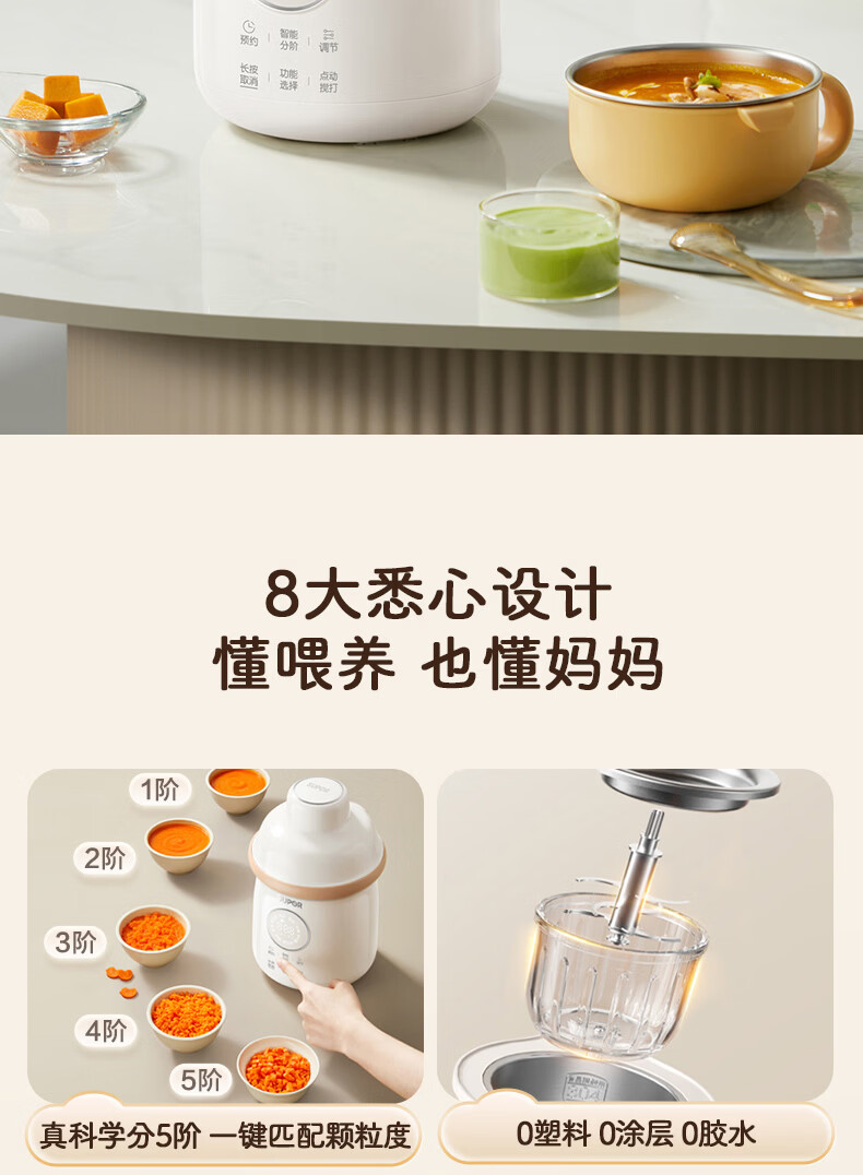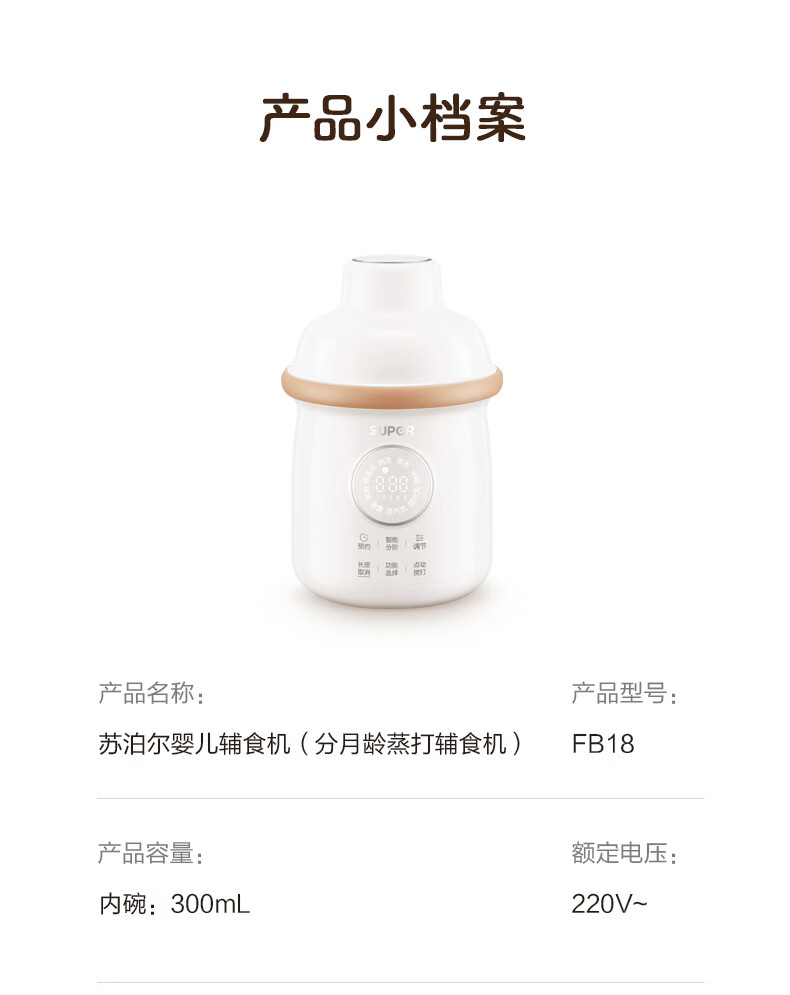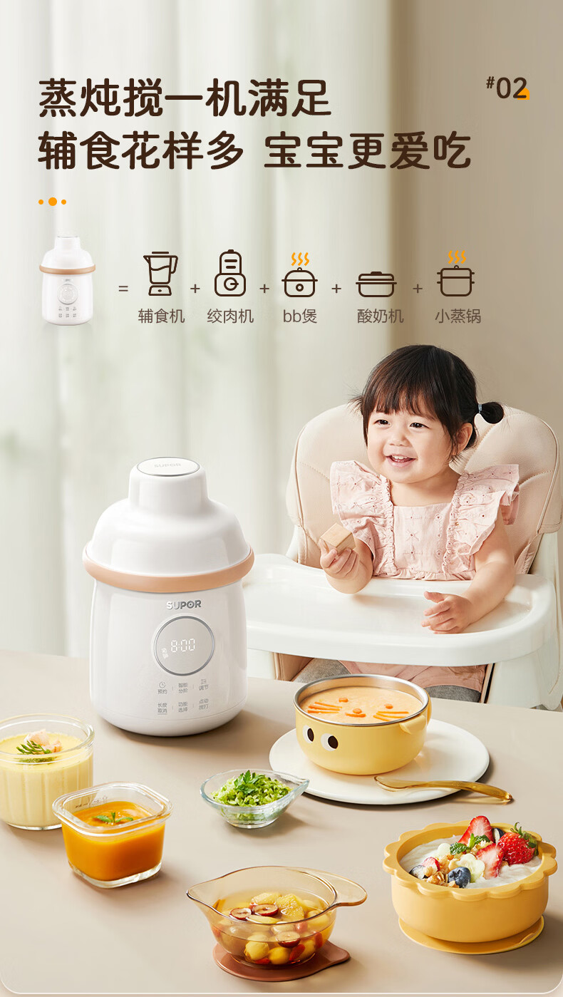 苏泊尔(SUPOR)辅食机婴儿米糊辅食料理机 蒸煮搅炖一体5阶分月龄 6叶全钢刀FB18
