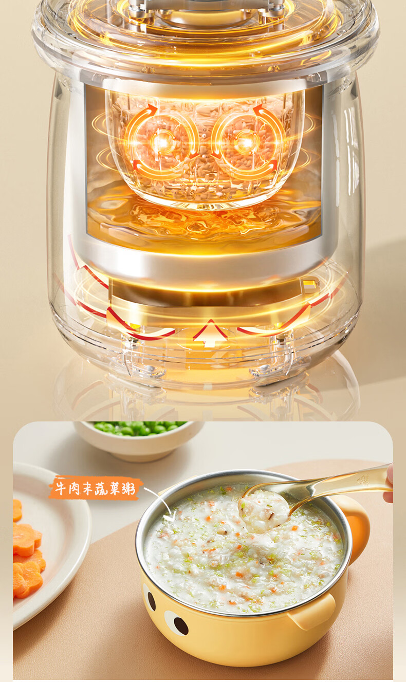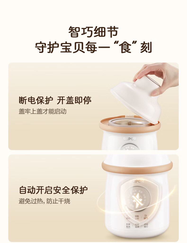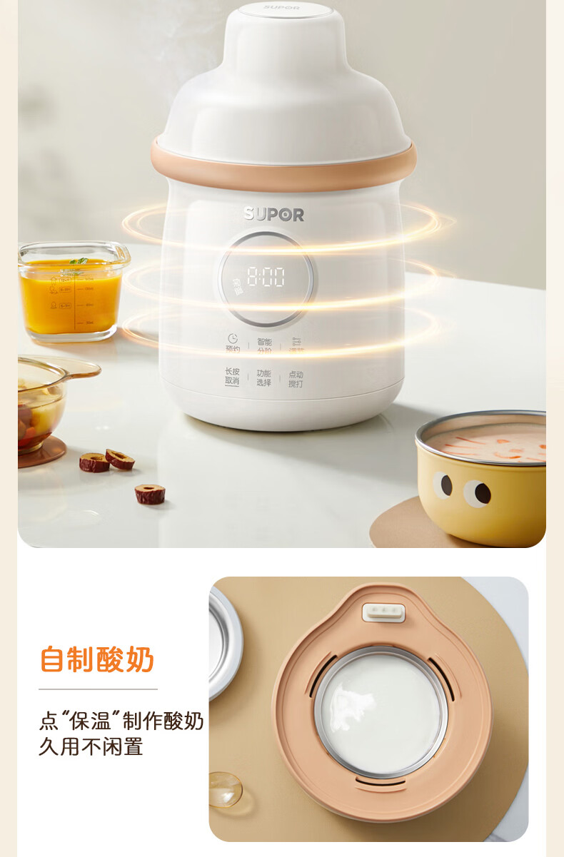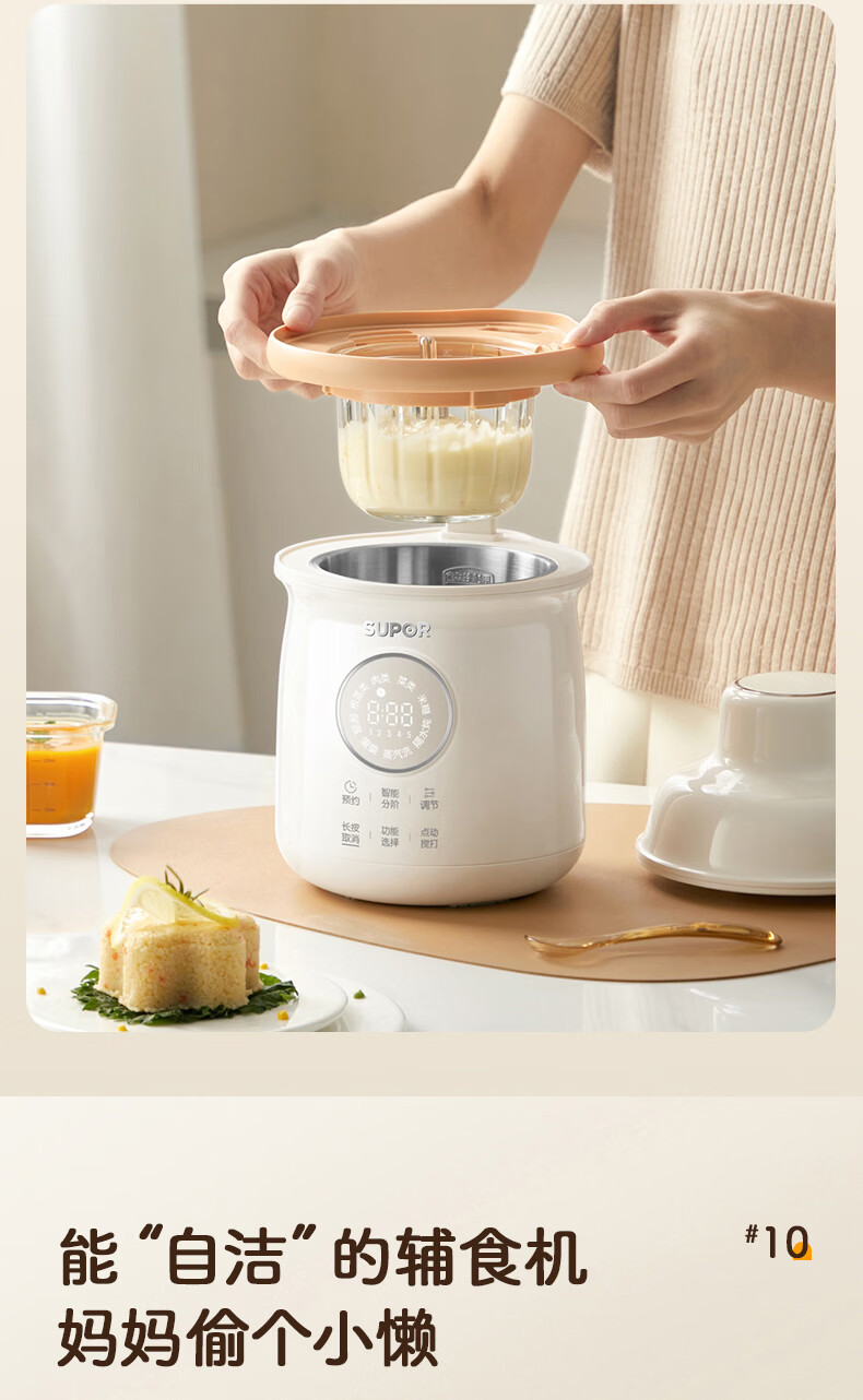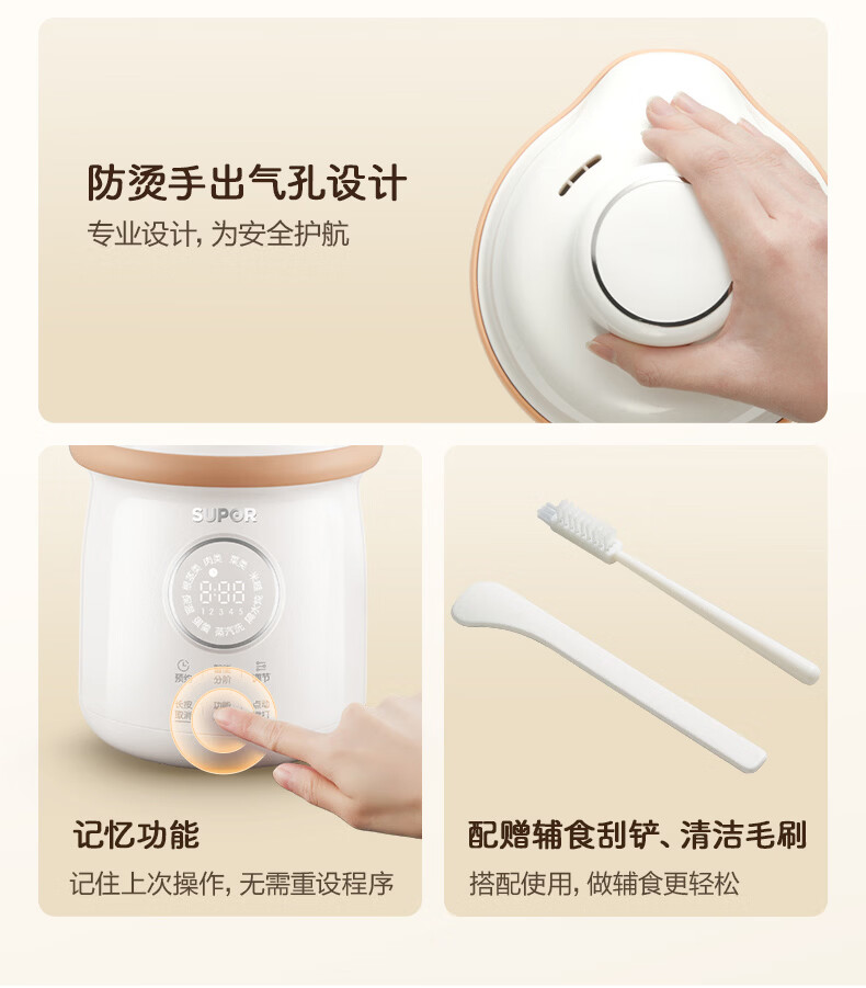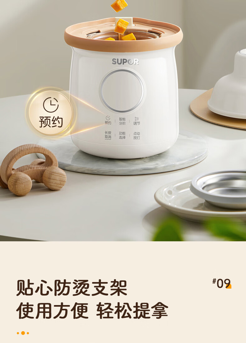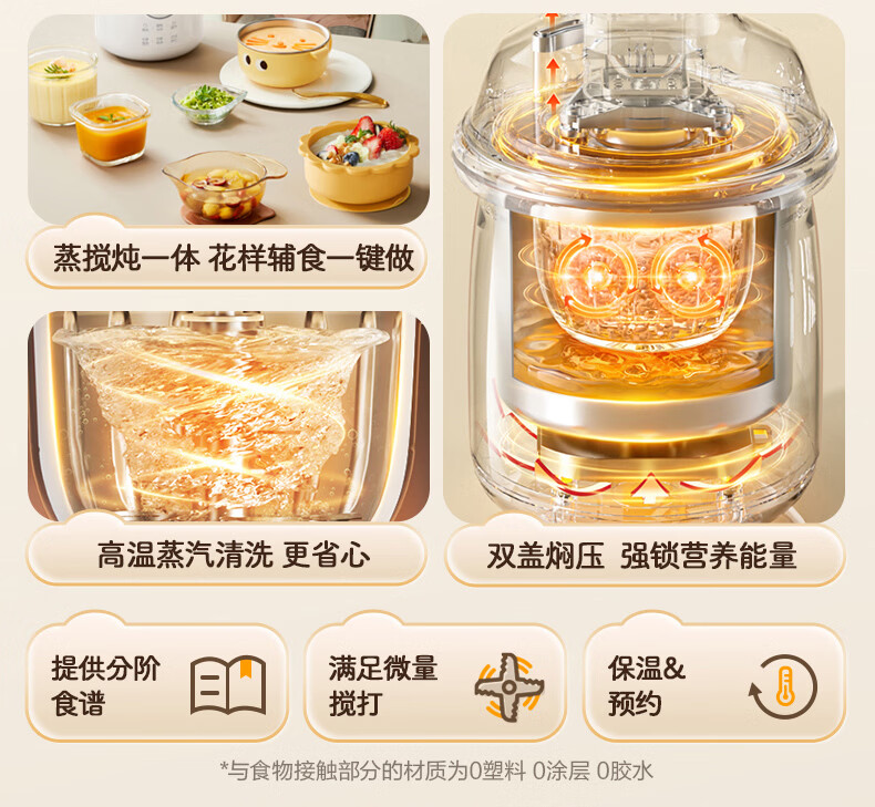 苏泊尔(SUPOR)辅食机婴儿米糊辅食料理机 蒸煮搅炖一体5阶分月龄 6叶全钢刀FB18