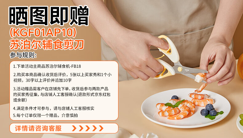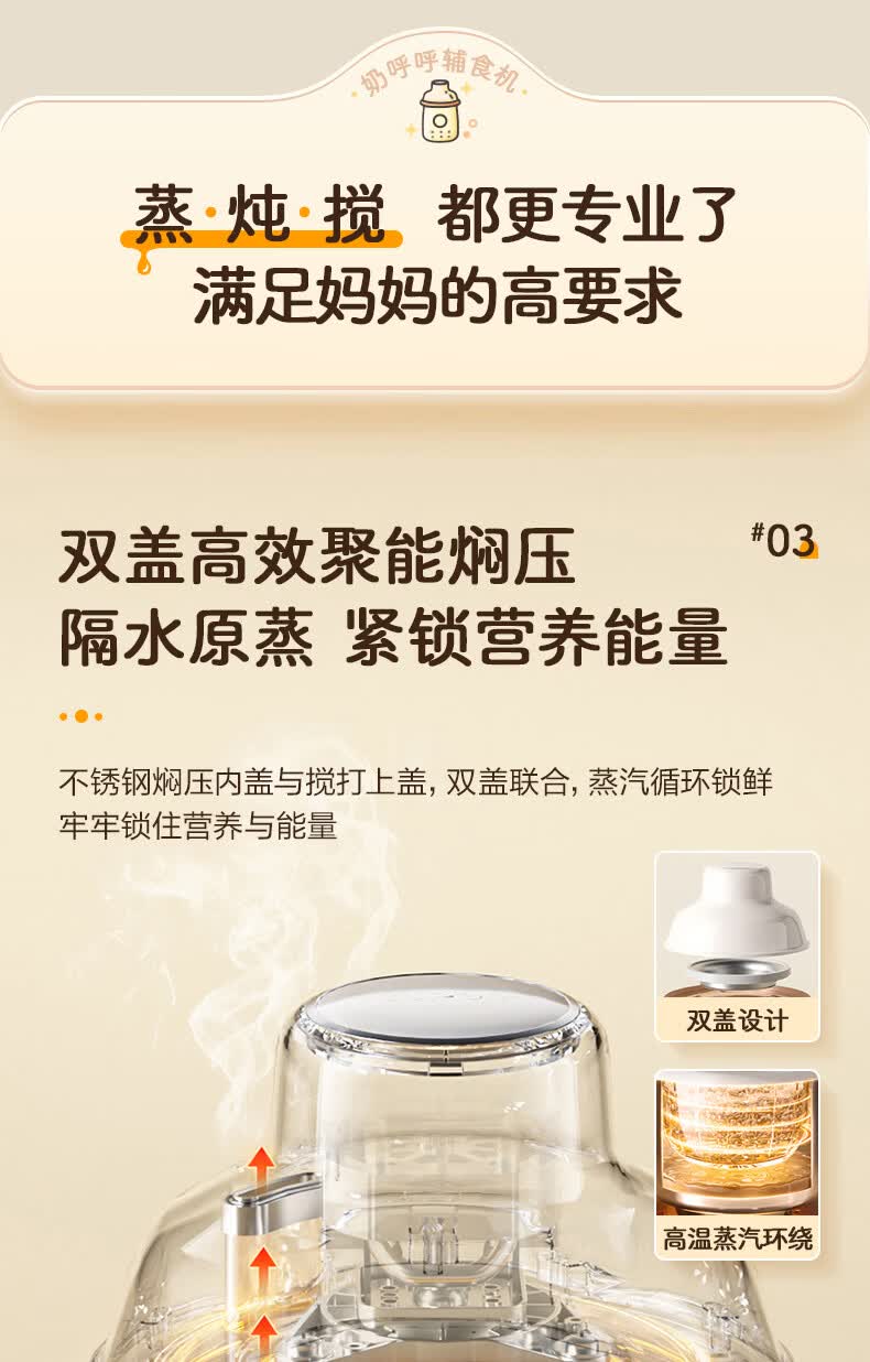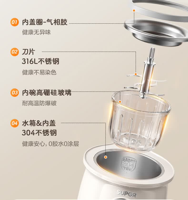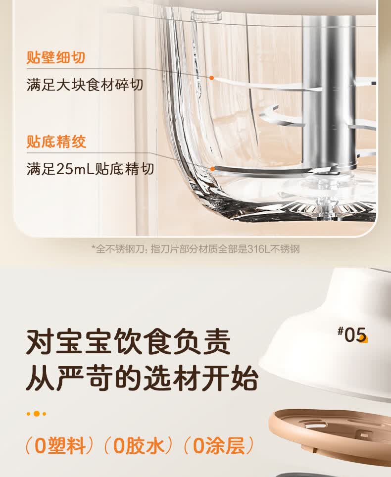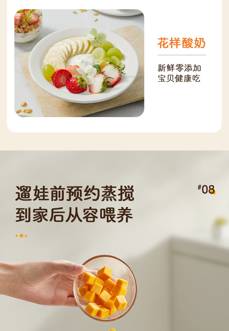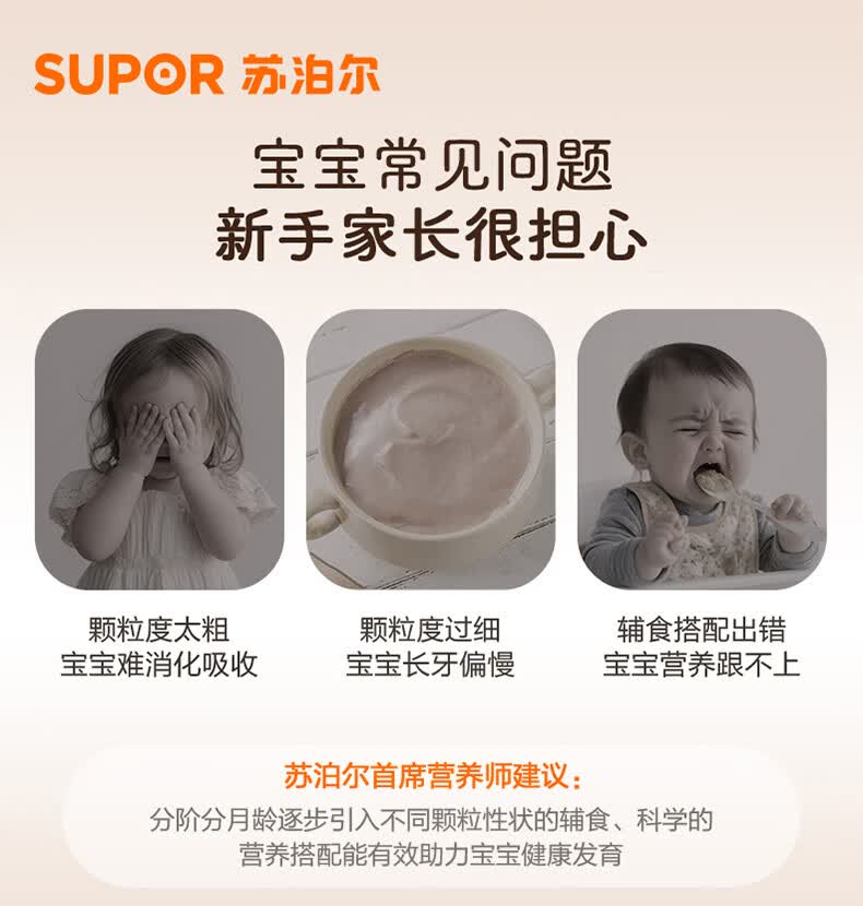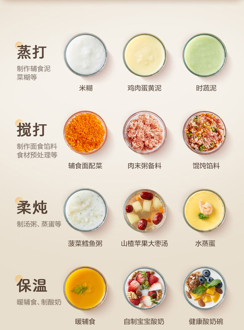 苏泊尔(SUPOR)辅食机婴儿米糊辅食料理机 蒸煮搅炖一体5阶分月龄 6叶全钢刀FB18