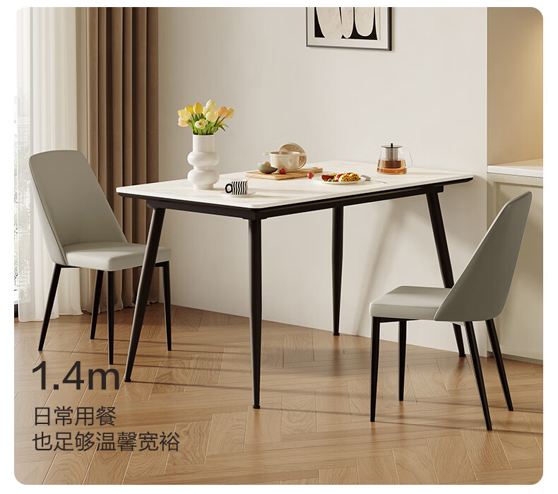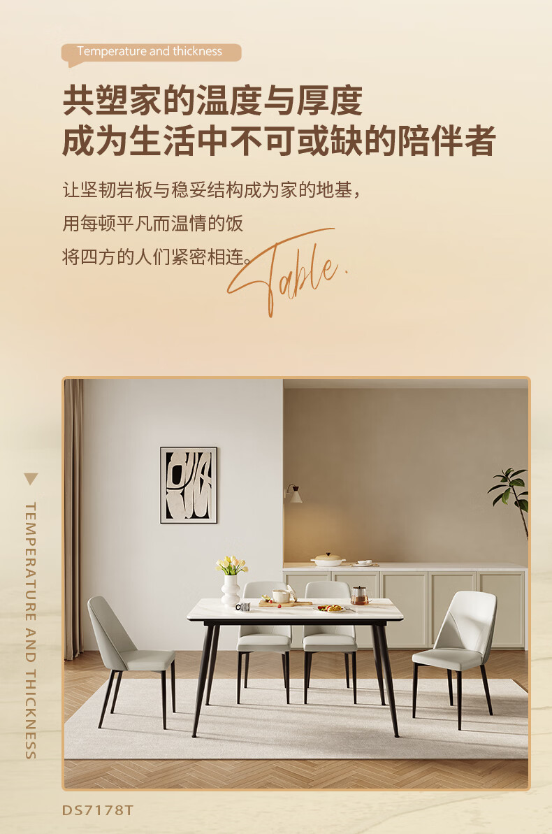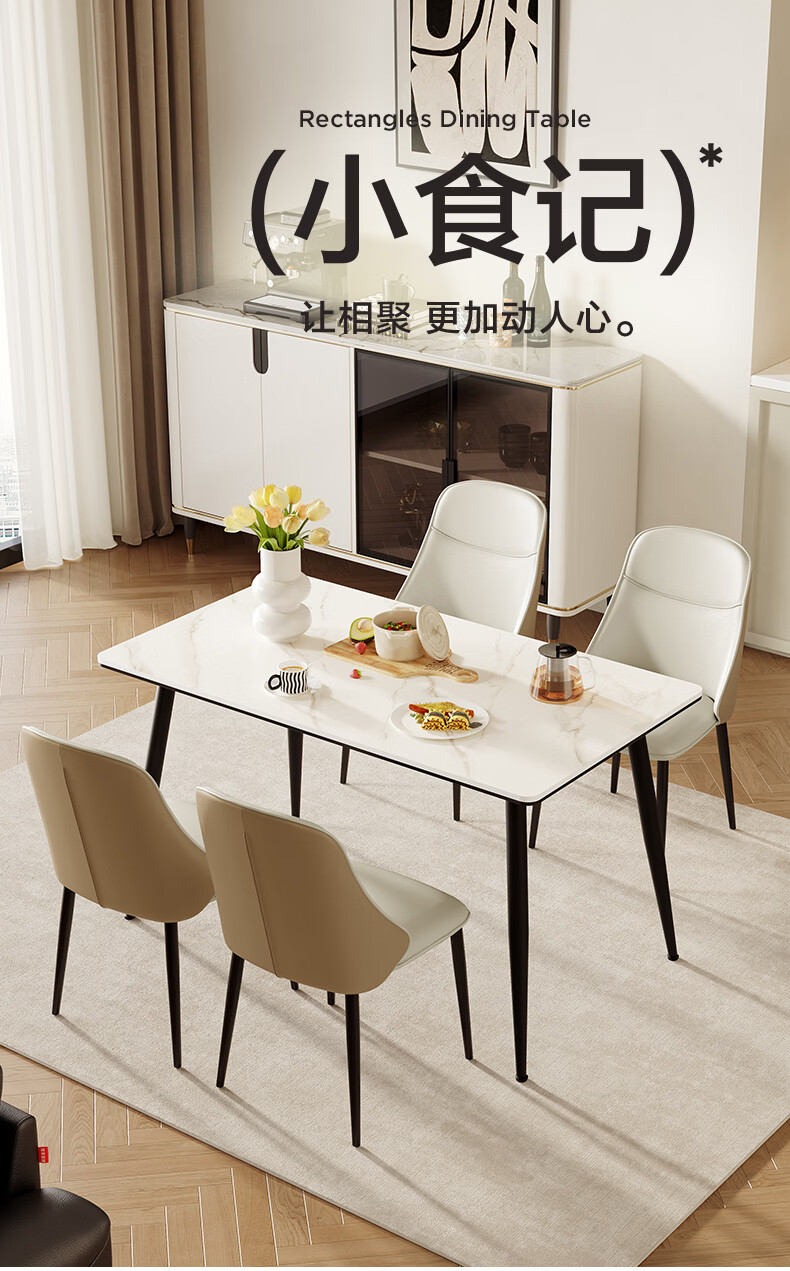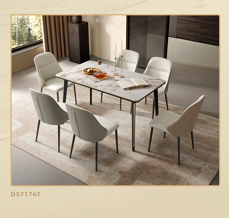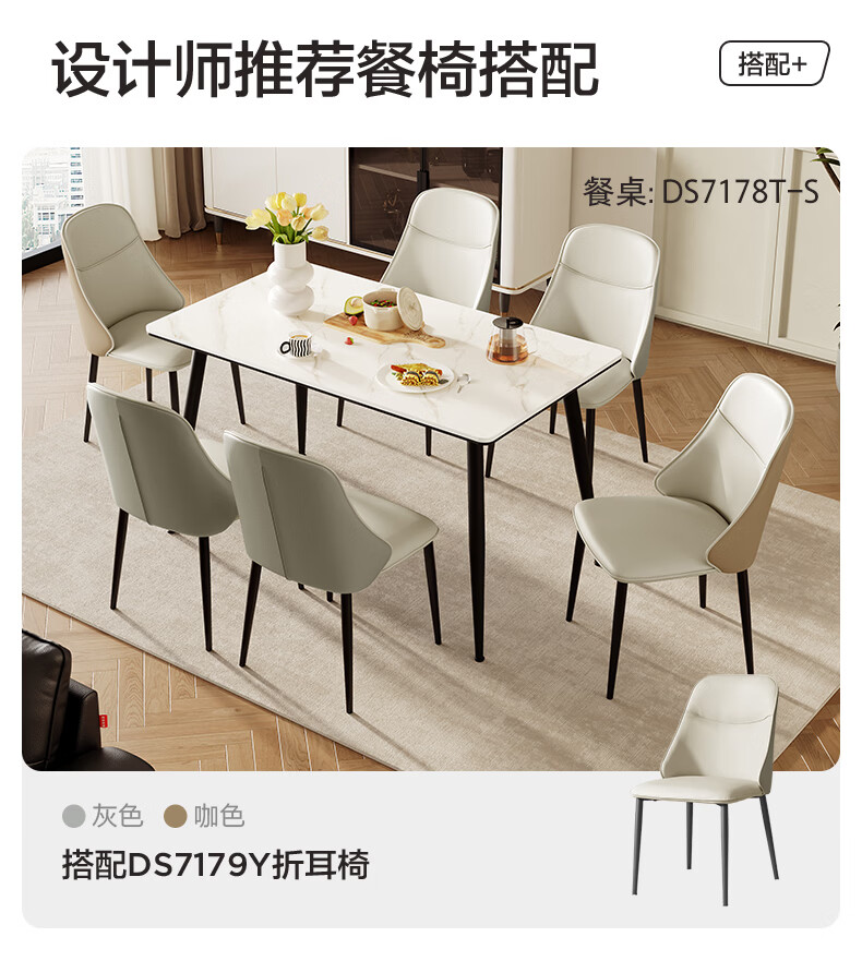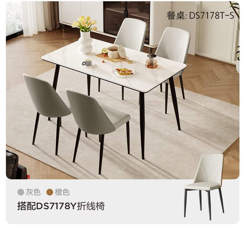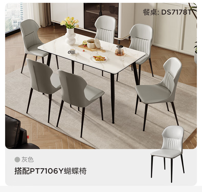 顾家家居(KUKA)简约岩板全托耐高温易清洁餐桌椅7178T-S 餐桌+折线灰椅*4 1.4米