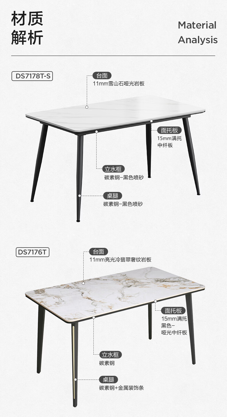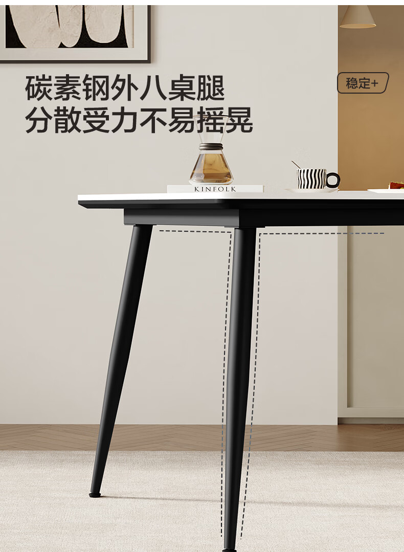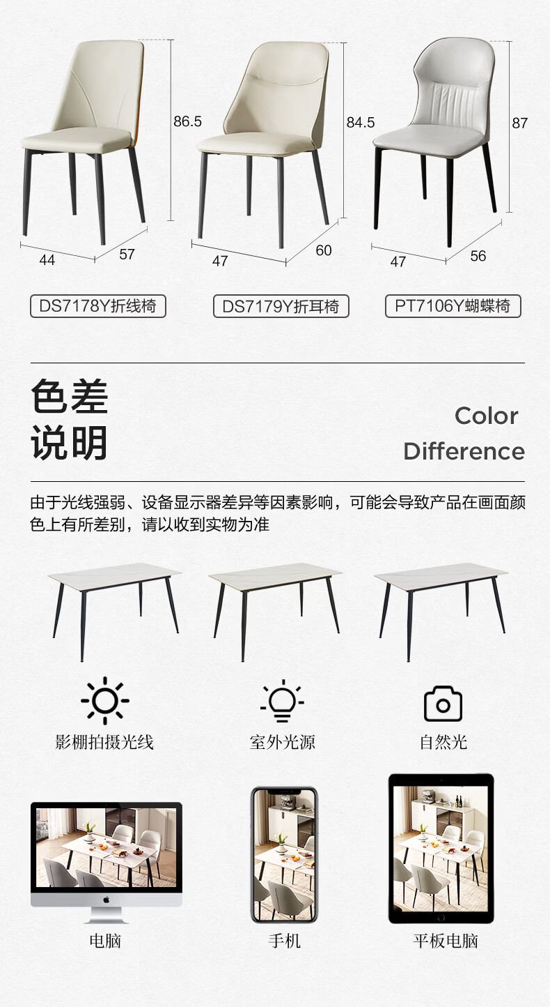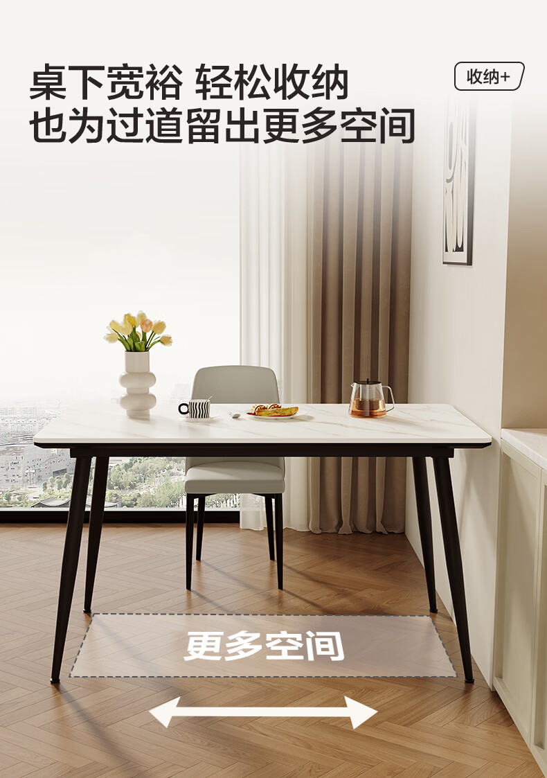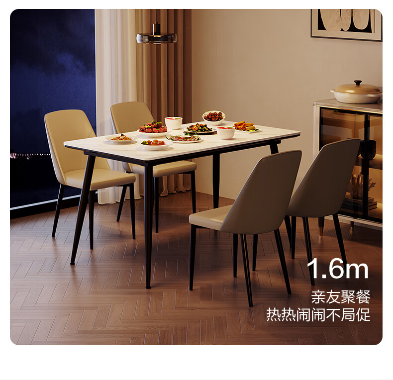 顾家家居(KUKA)简约岩板全托耐高温易清洁餐桌椅7178T-S 餐桌+折线灰椅*4 1.4米