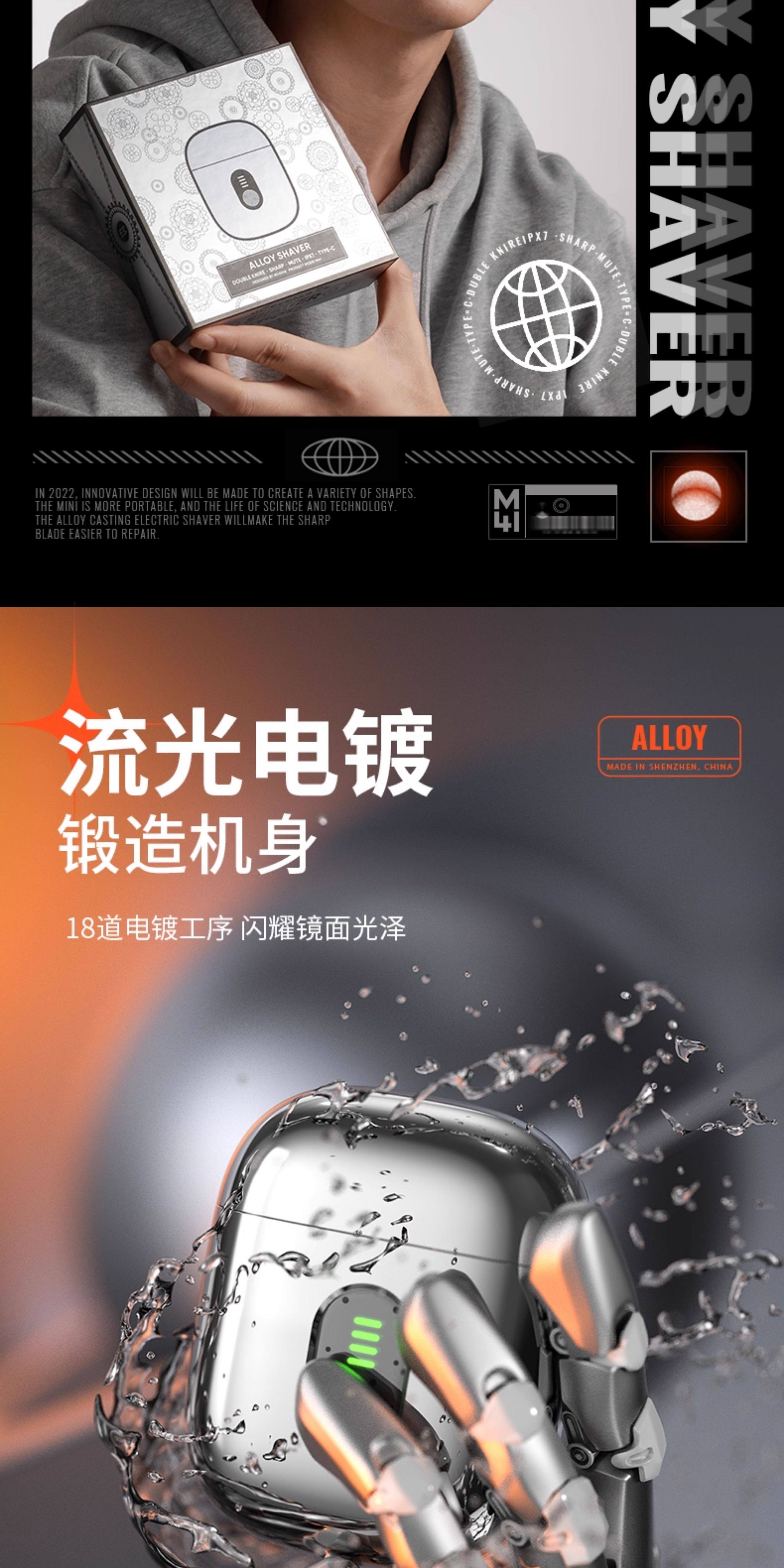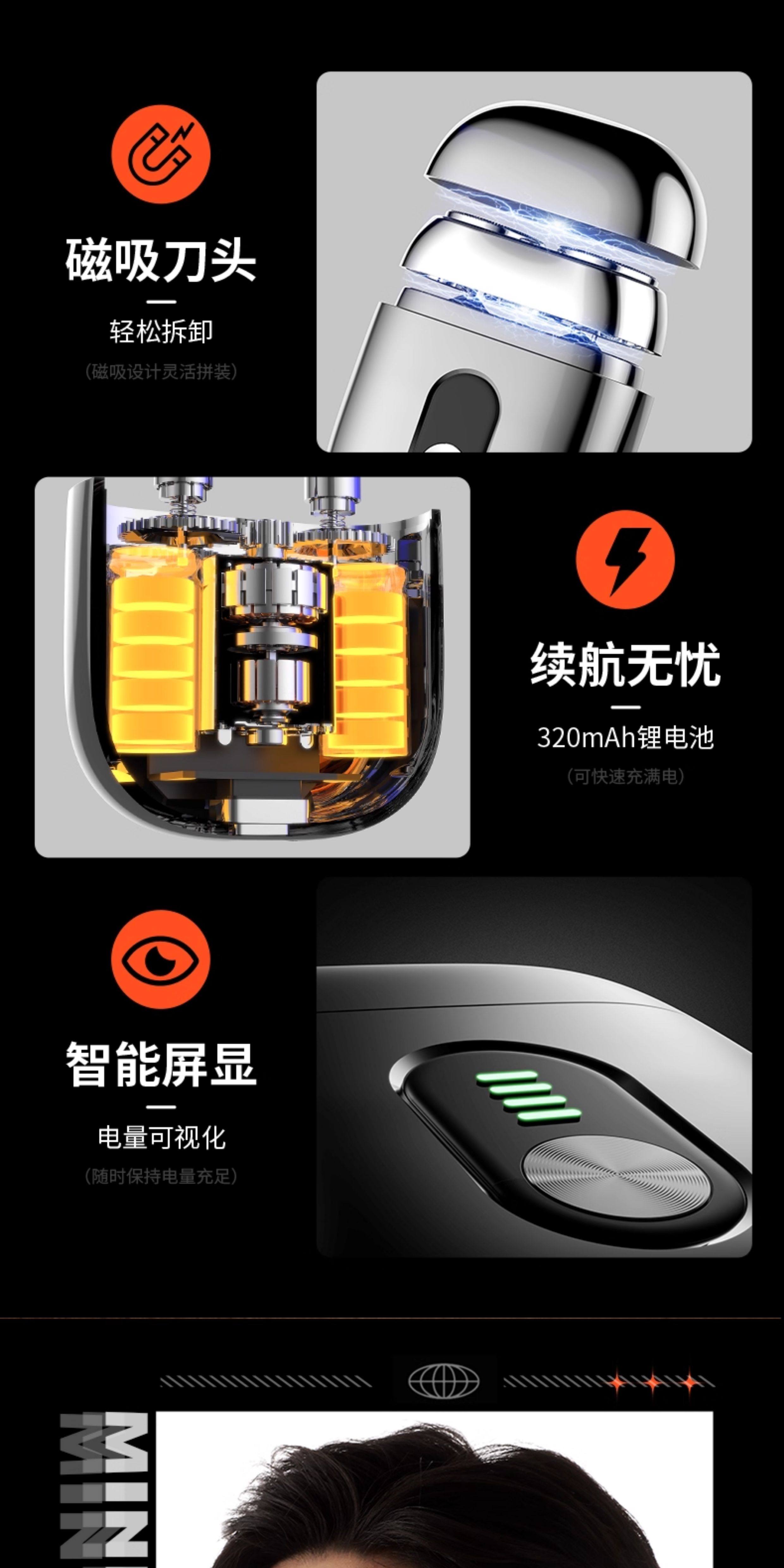 GROOUZ德国品牌男士剃须刀电动便携刮胡子胡须刀双头剃须刀多功能充电刮胡刀送男友生日520情人节礼物 电镀银【年度旗舰新品】