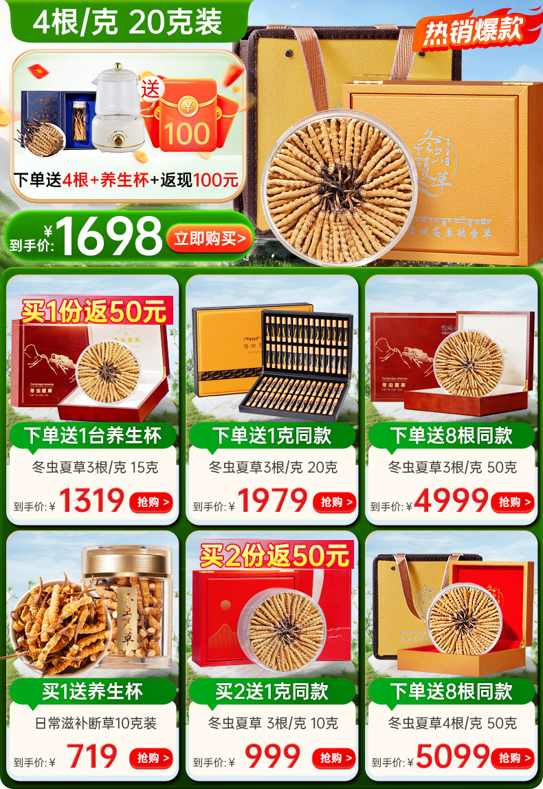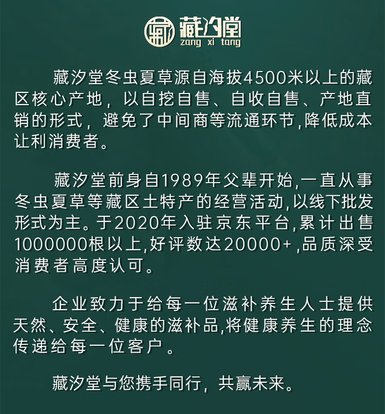 藏汐堂 冬虫夏草 新干头期纯肉节虫草 实惠家庭滋补品 大号纯肉节 20g*1盒 【送1克】