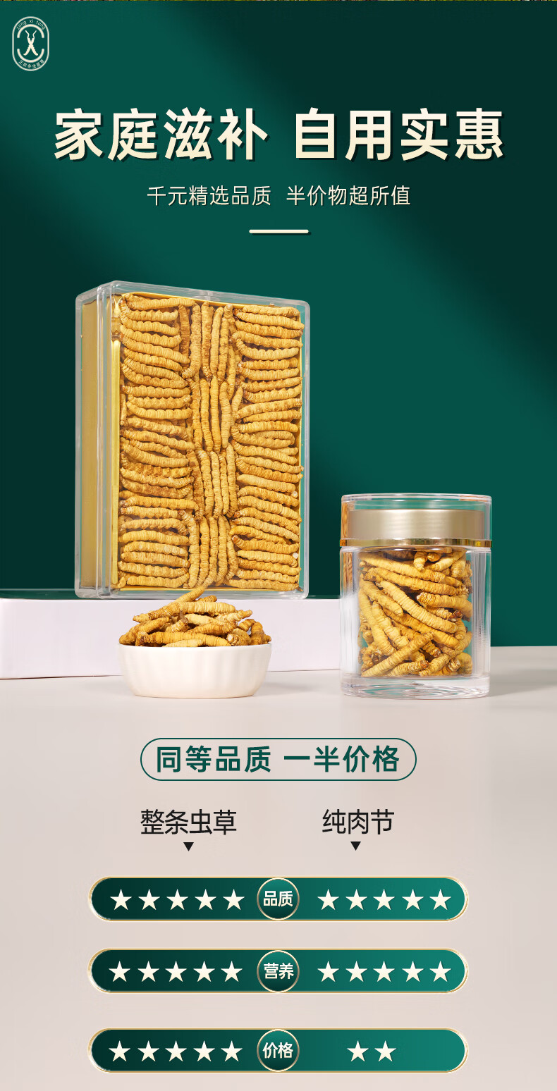 藏汐堂 冬虫夏草 新干头期纯肉节虫草 实惠家庭滋补品 大号纯肉节 10g*1盒 【送养生杯】