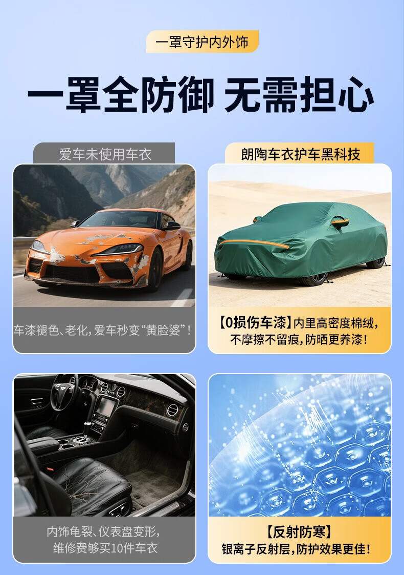 毅亨全遮光帆布汽车车衣车罩车套防晒防雨隔热遮阳罩盖车布外套防尘罩 【星空银】升级全遮光纯帆布车衣车罩-送收纳包 加厚纳米钛银涂层【防晒防雨隔热防尘*四季通用】
