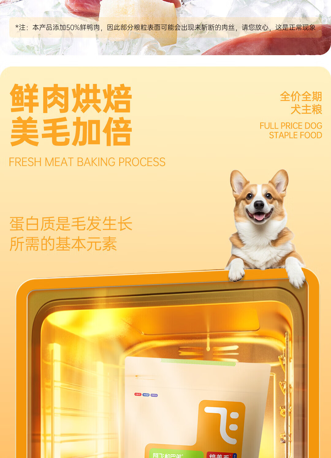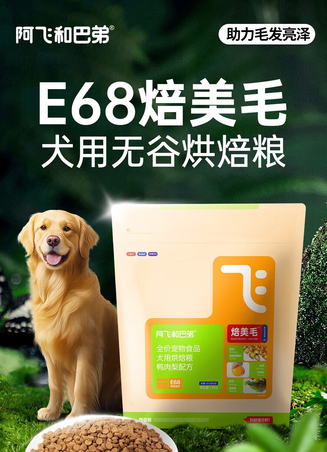 阿飞和巴弟烘焙狗粮 E68焙美毛鸭肉梨配方鸭肉梨配方无谷全阶段通用犬干粮 300g*50袋(15kg)