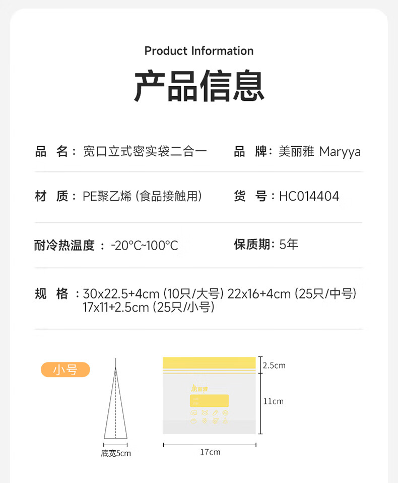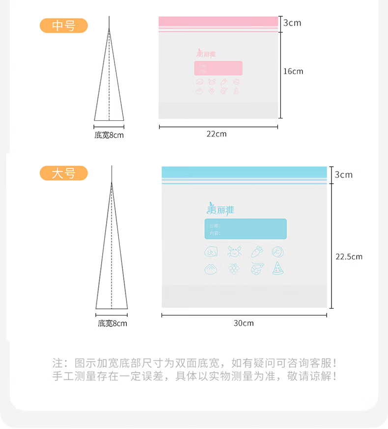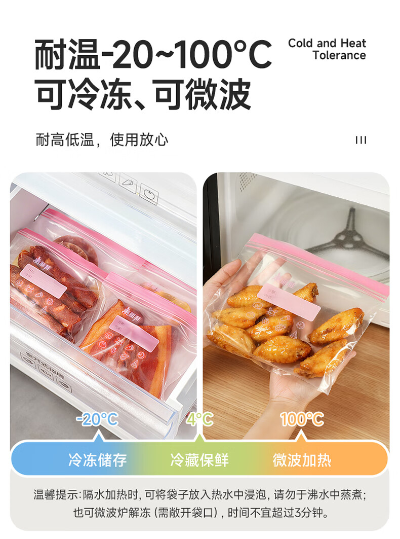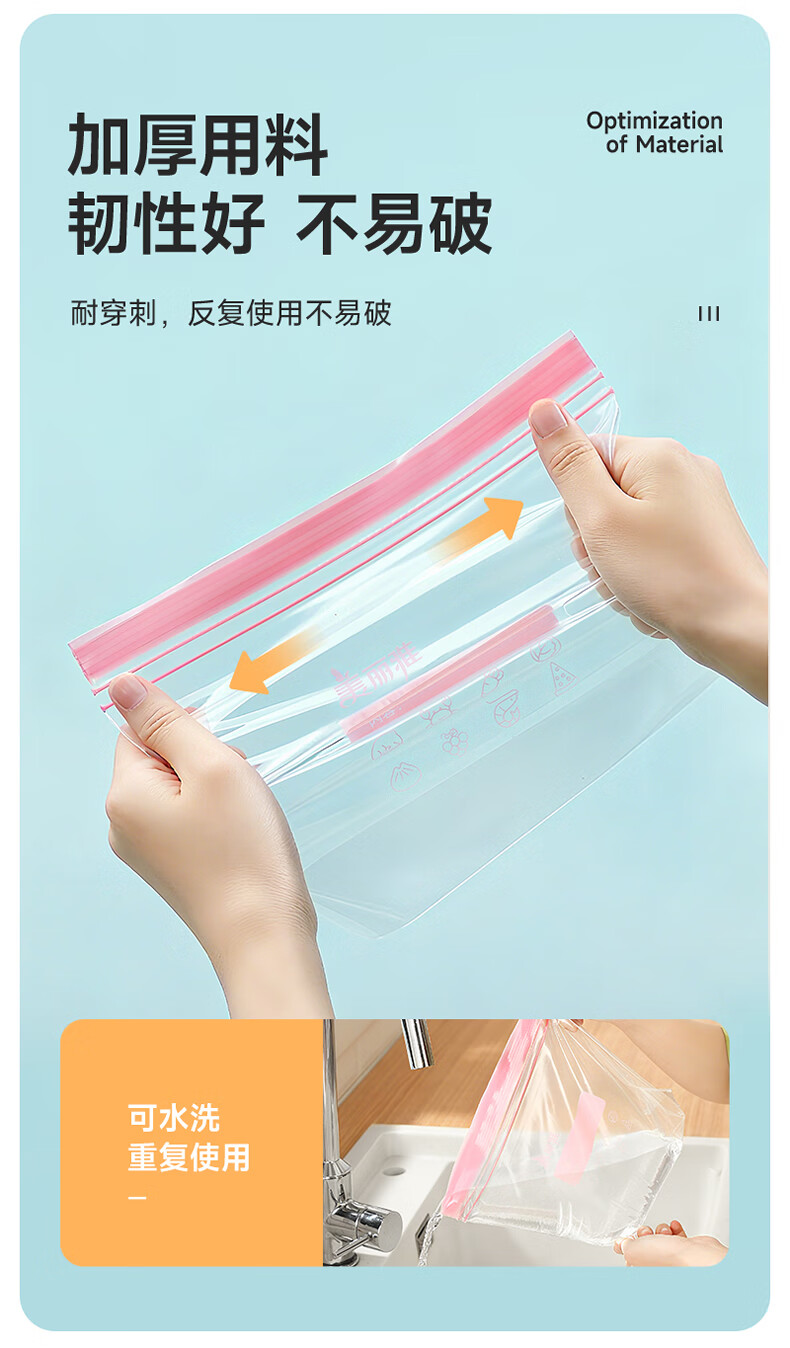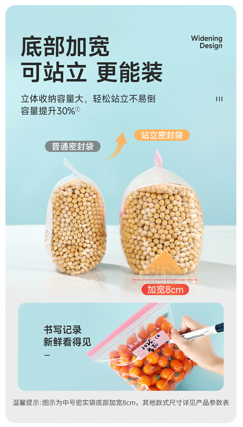 美丽雅密封袋食品级 大中小号共60只 站立冰箱分装收纳密实保鲜袋
