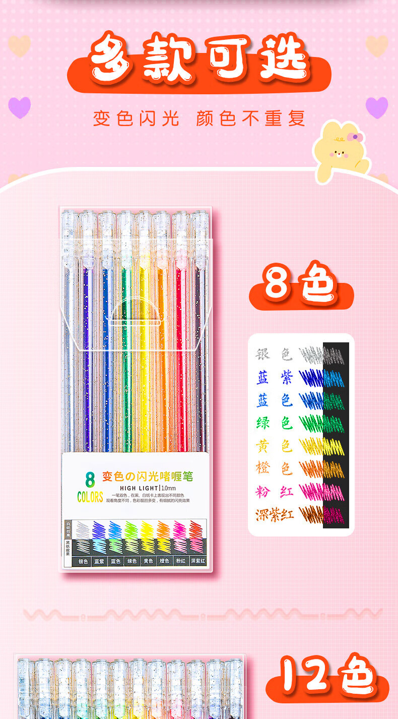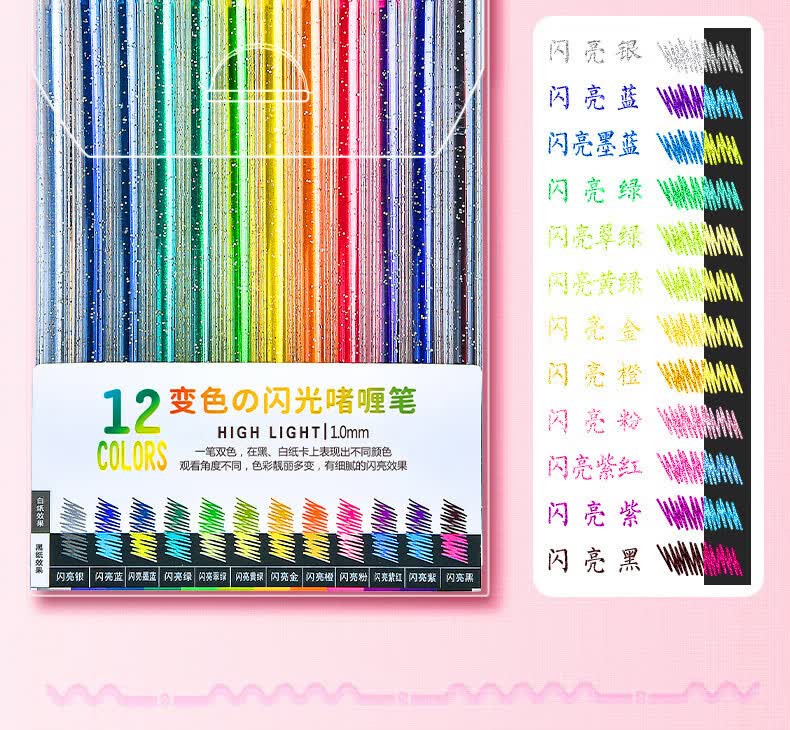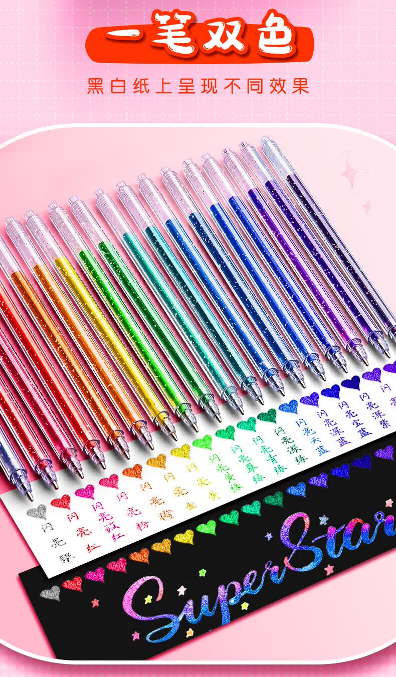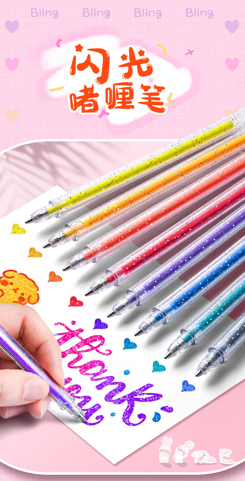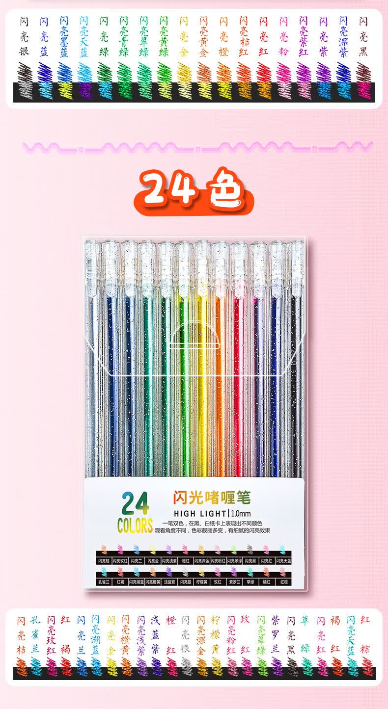 离草 24色混装彩色闪光啫喱笔 手账专用亮晶晶发光闪粉 儿童闪亮变色荧光流沙珠光绘画笔记本涂鸦