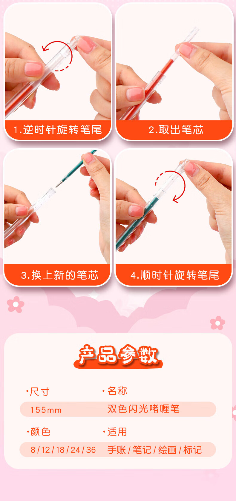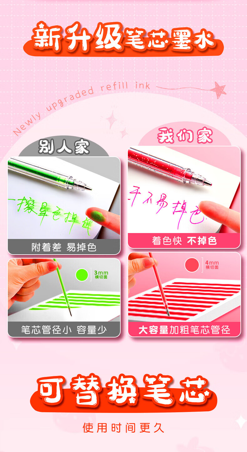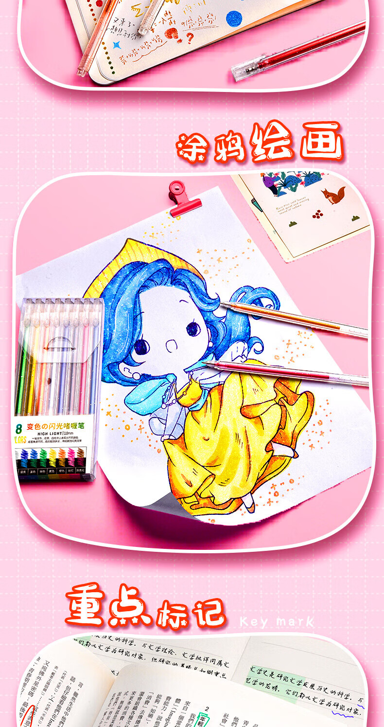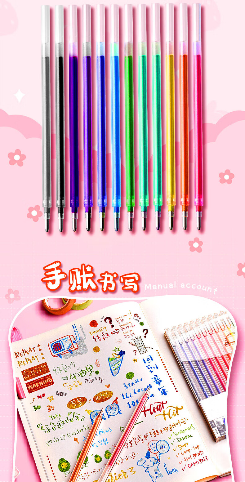 离草 24色混装彩色闪光啫喱笔 手账专用亮晶晶发光闪粉 儿童闪亮变色荧光流沙珠光绘画笔记本涂鸦