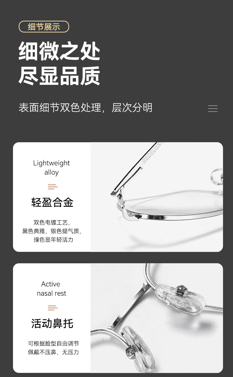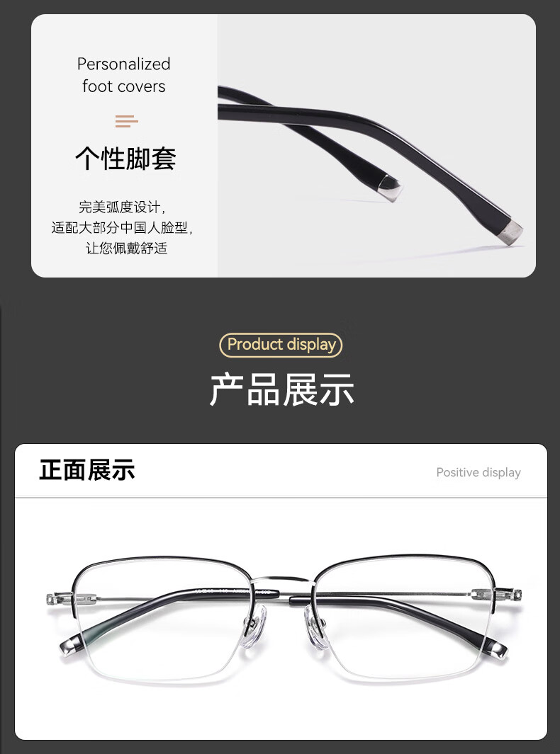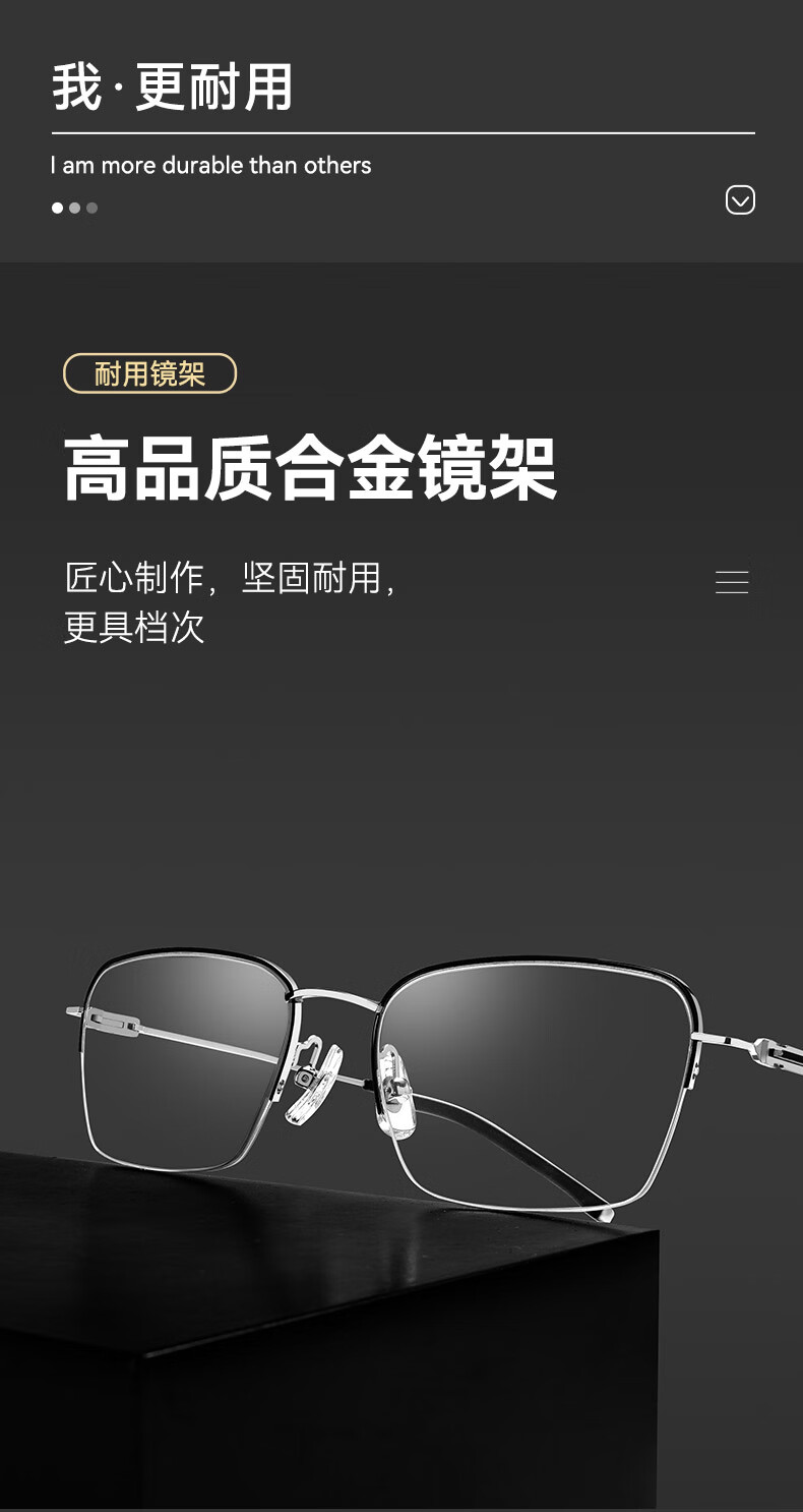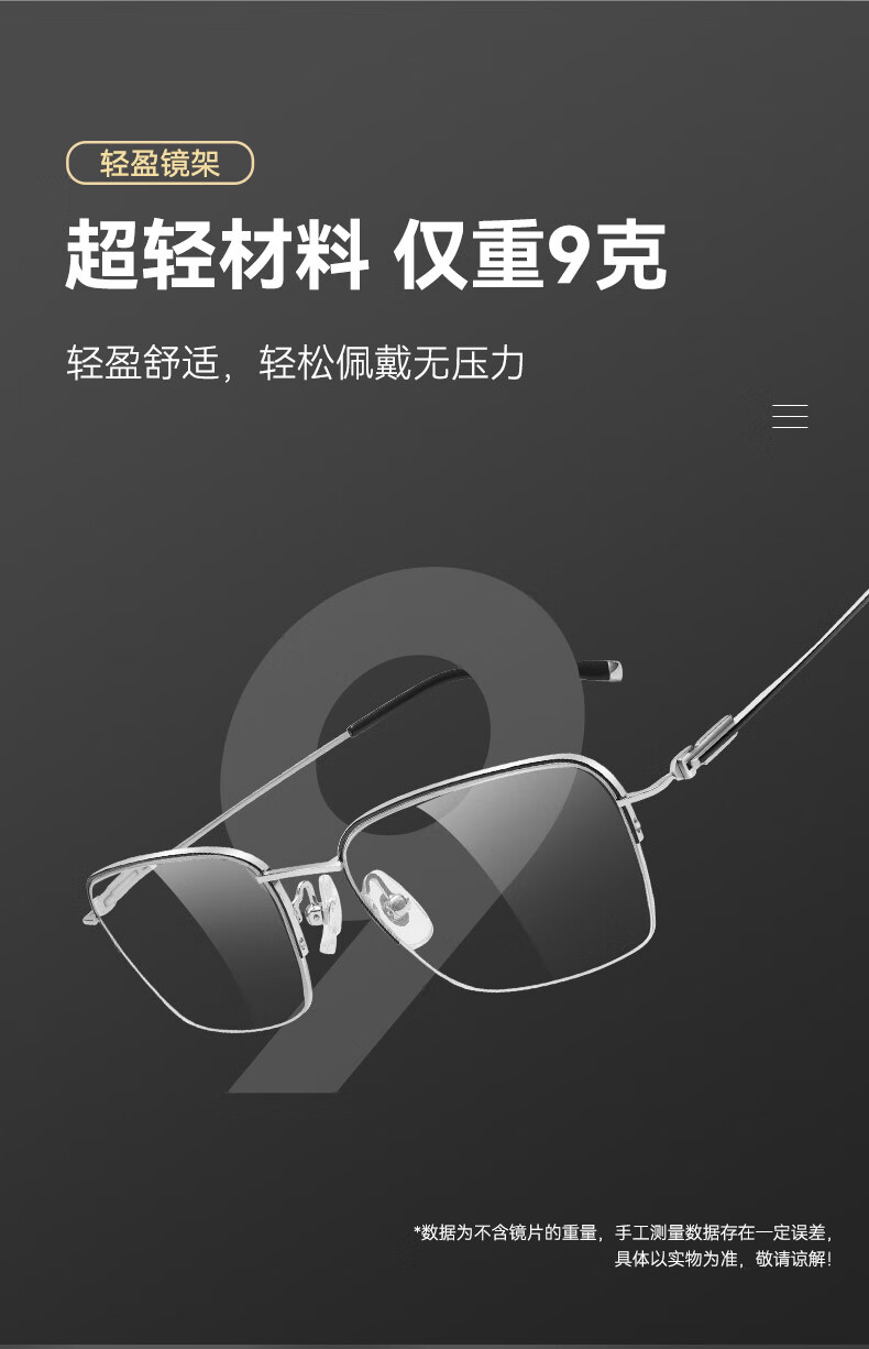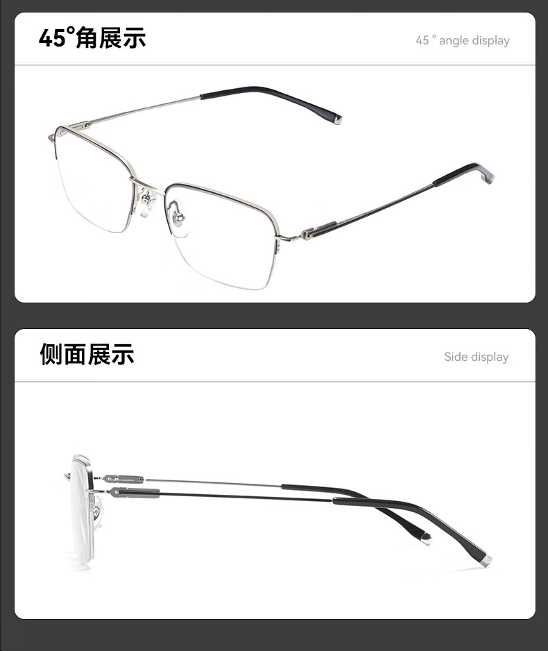 普莱斯(pulais)近视眼镜框可配度数纯钛金属高端商务半框超轻8g男士眼镜架19897A