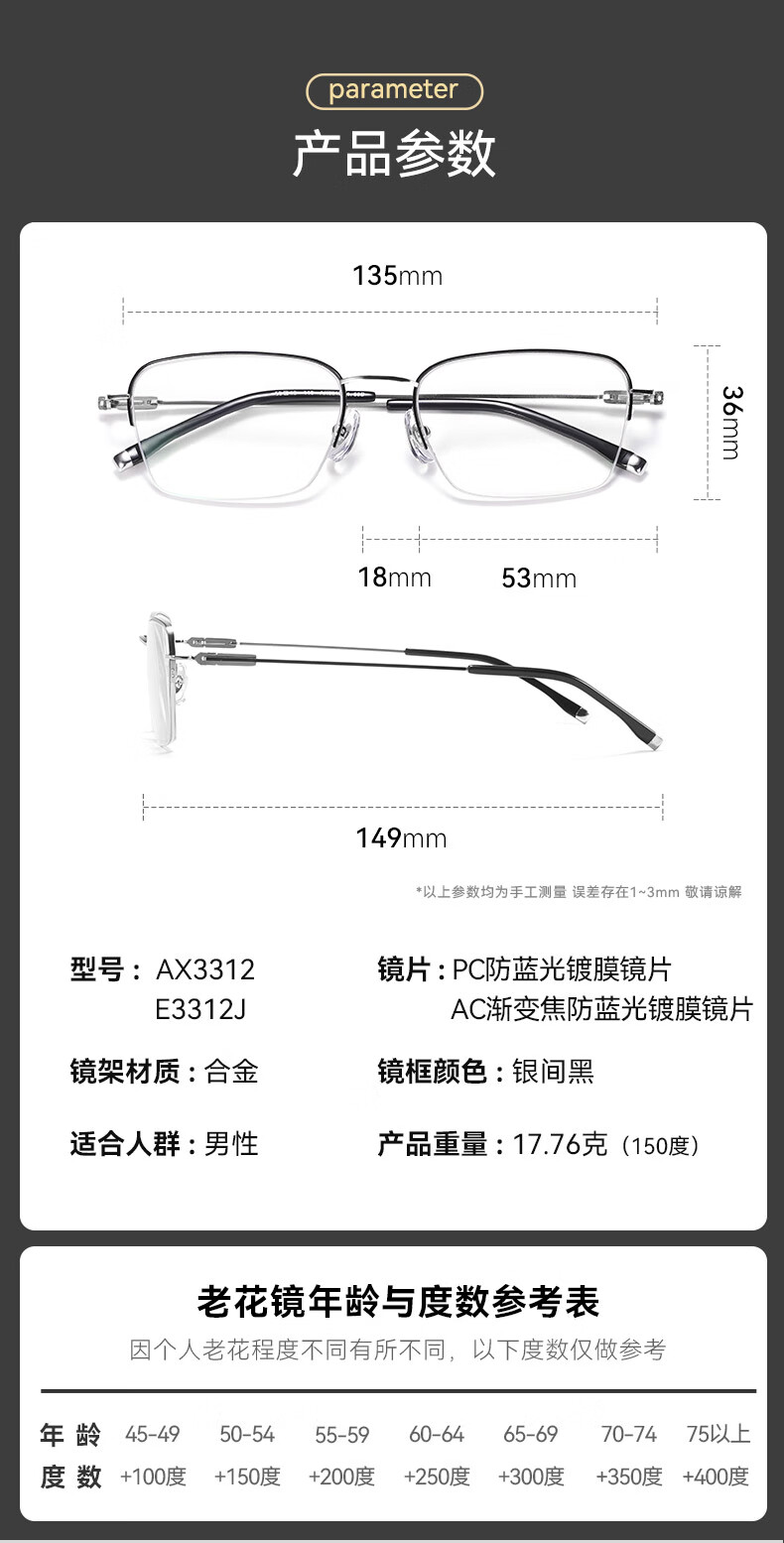夕阳红老花镜男士高清防蓝光品牌高档超轻老花眼镜AX3312 250度
