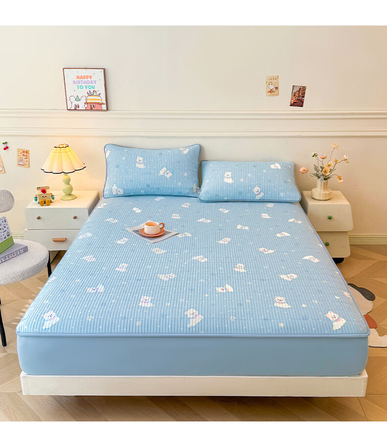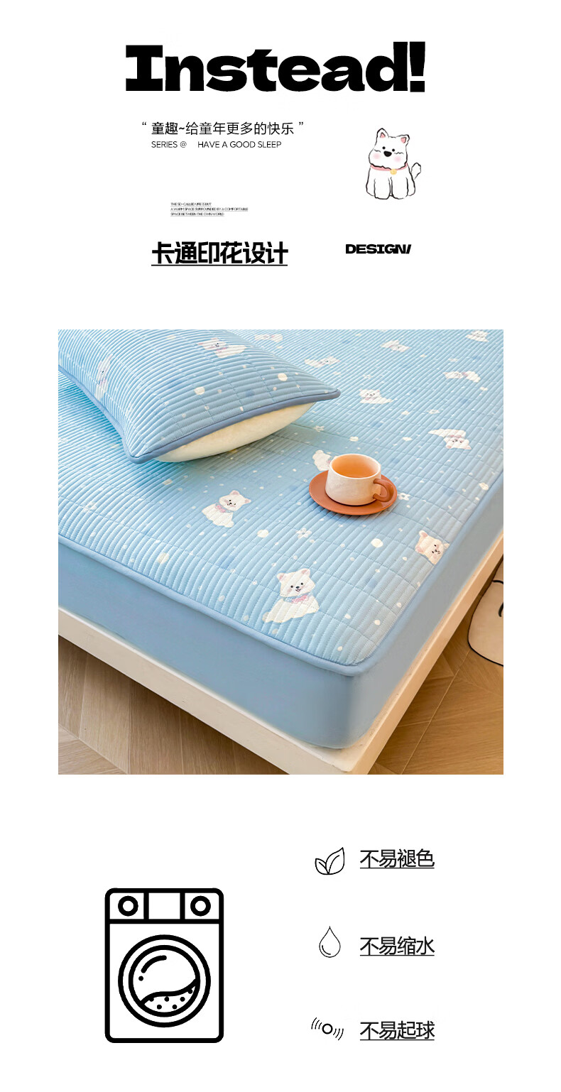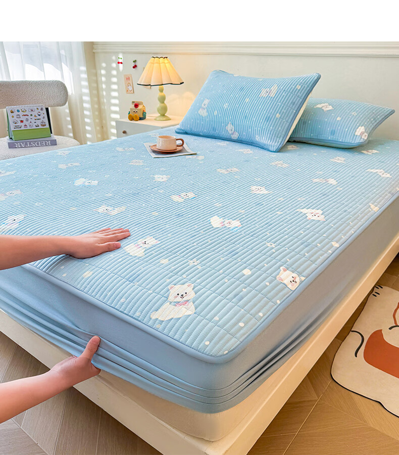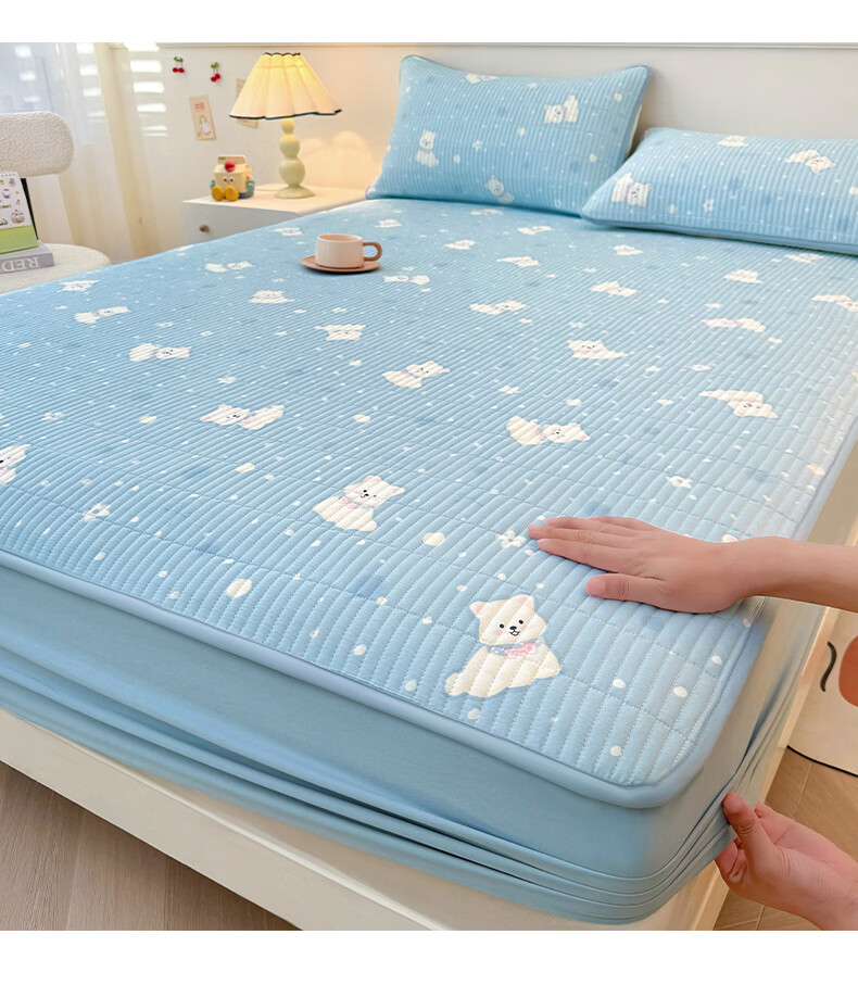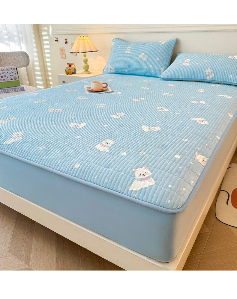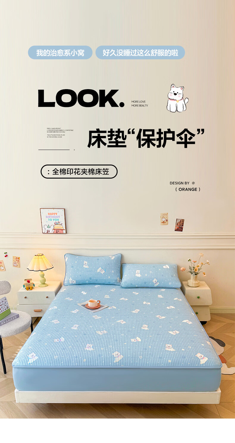 无印良品全棉夹棉床笠1.5x2米纯棉加厚儿童床笠罩床垫保护套防滑隔脏床套 泡芙小狗 【夹棉纯棉面料 四季通用】 150cm*200cm 床笠【适5-25cm床垫】