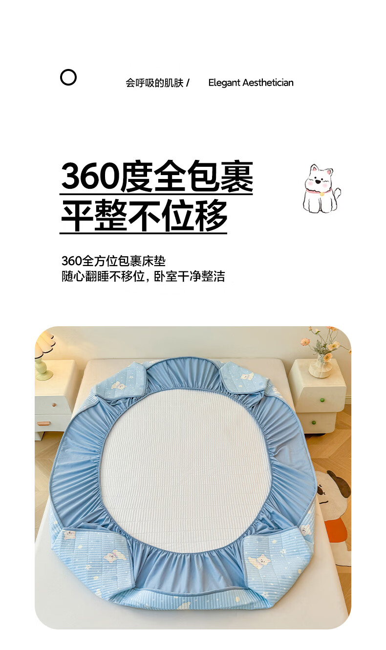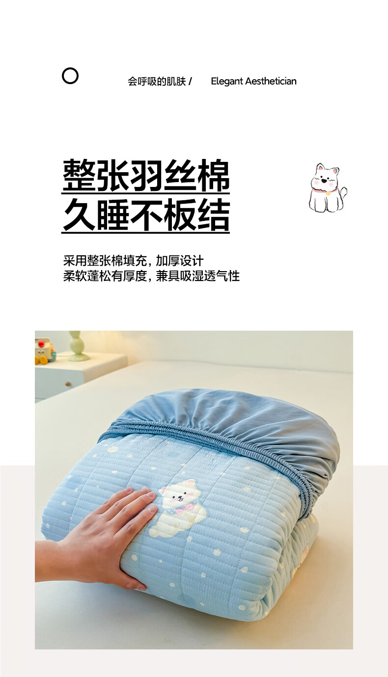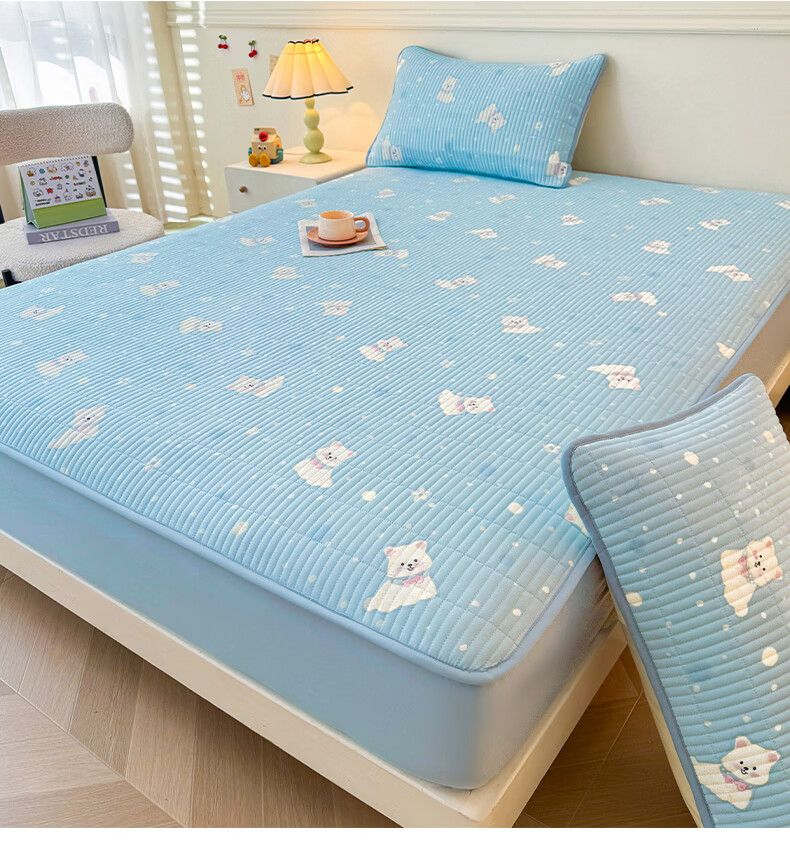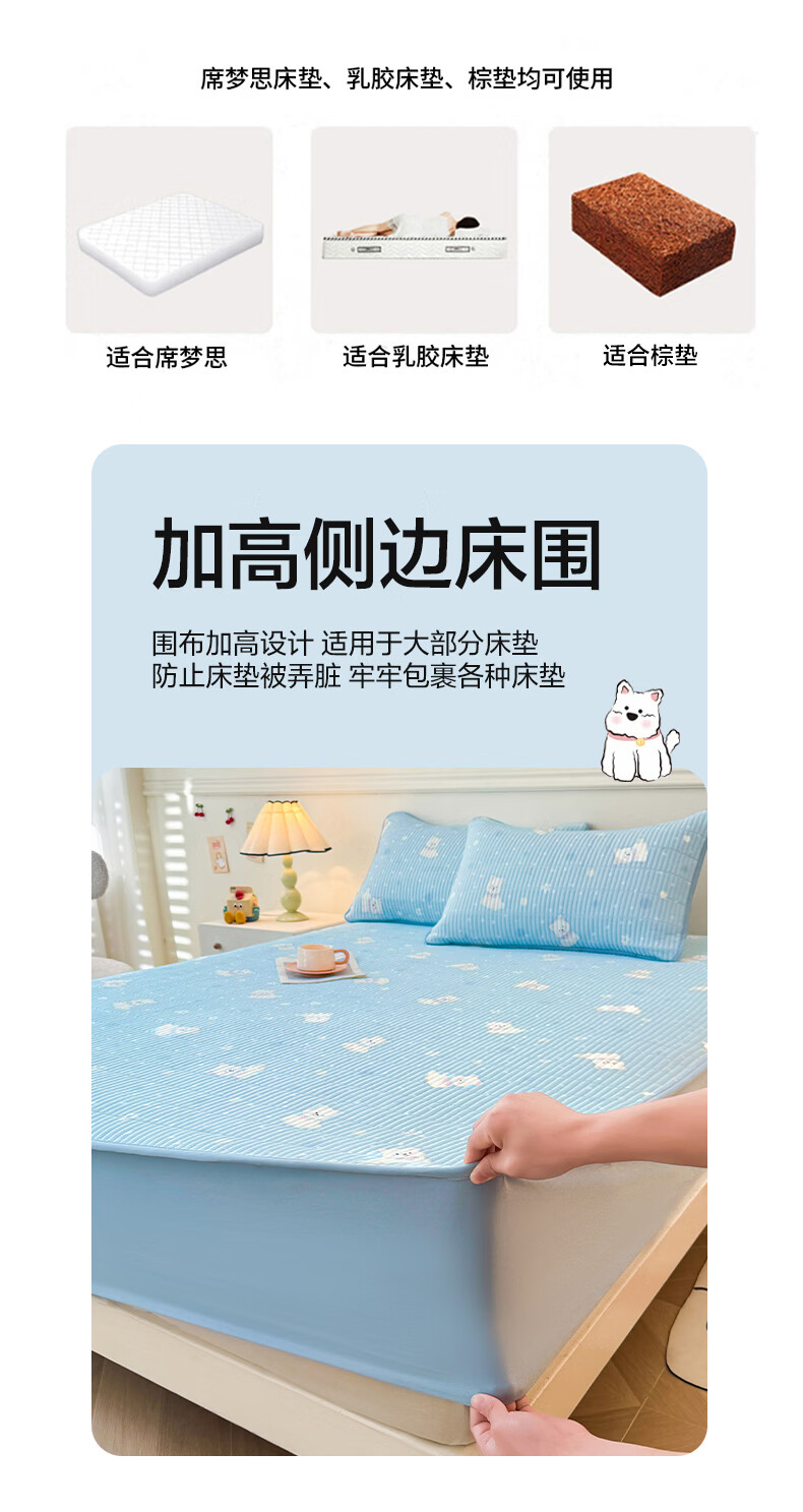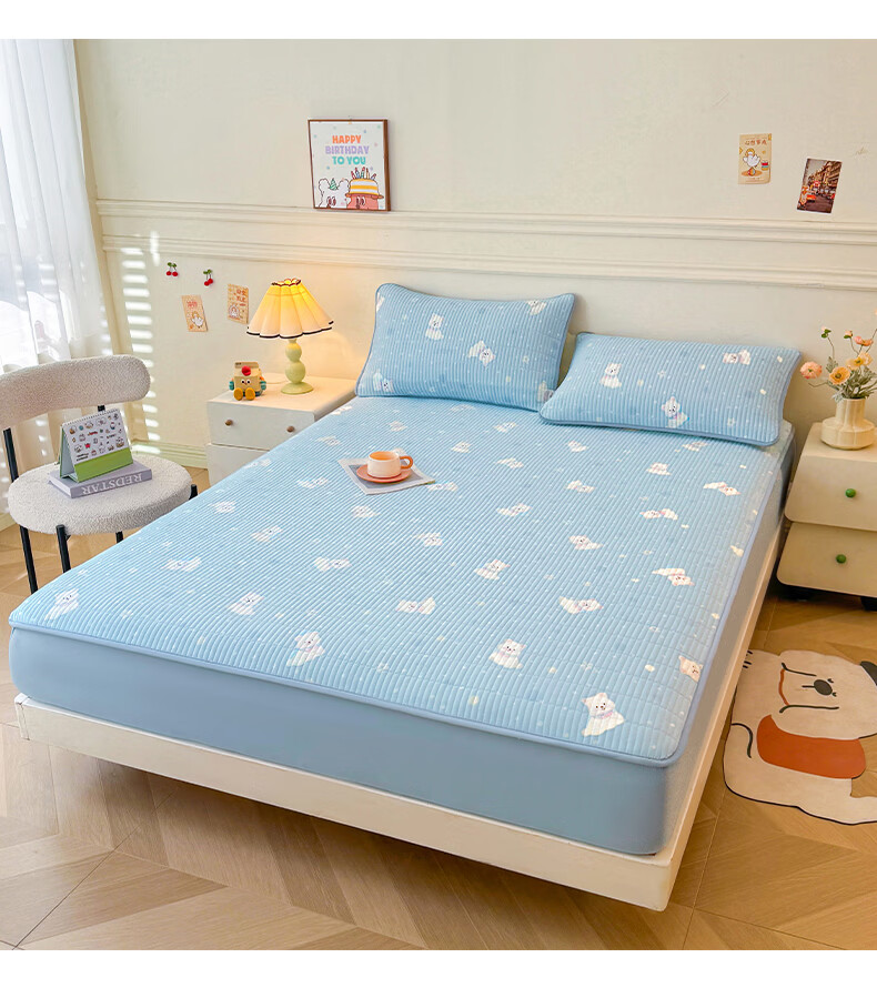 无印良品全棉夹棉床笠1.5x2米纯棉加厚儿童床笠罩床垫保护套防滑隔脏床套 泡芙小狗 【夹棉纯棉面料 四季通用】 150cm*200cm 床笠【适5-25cm床垫】