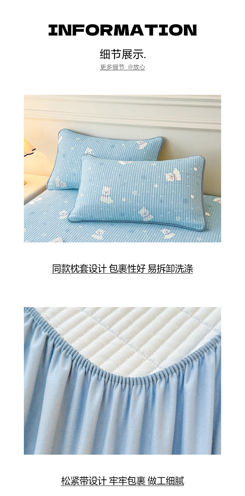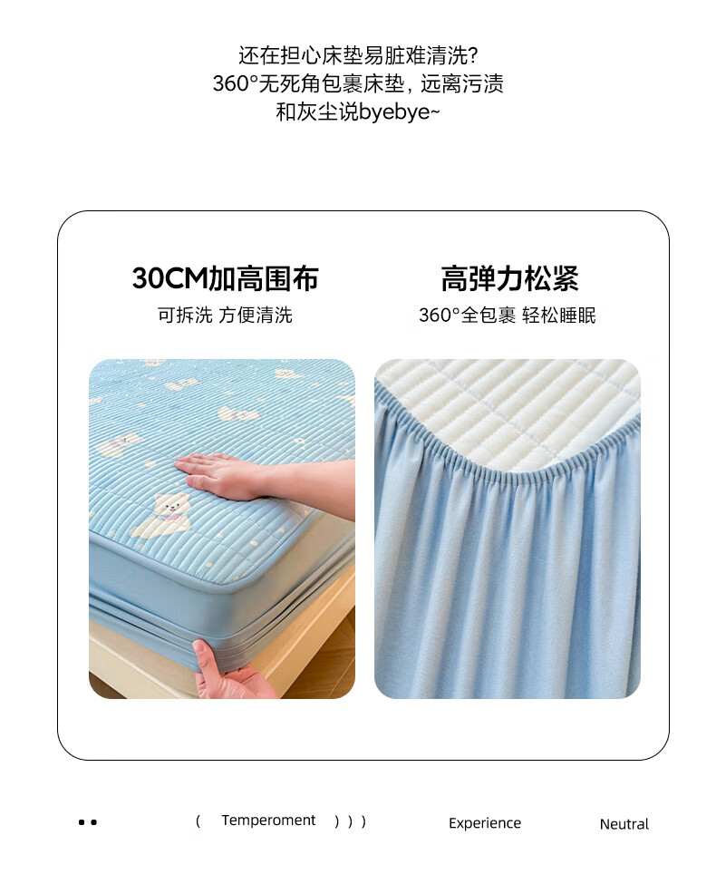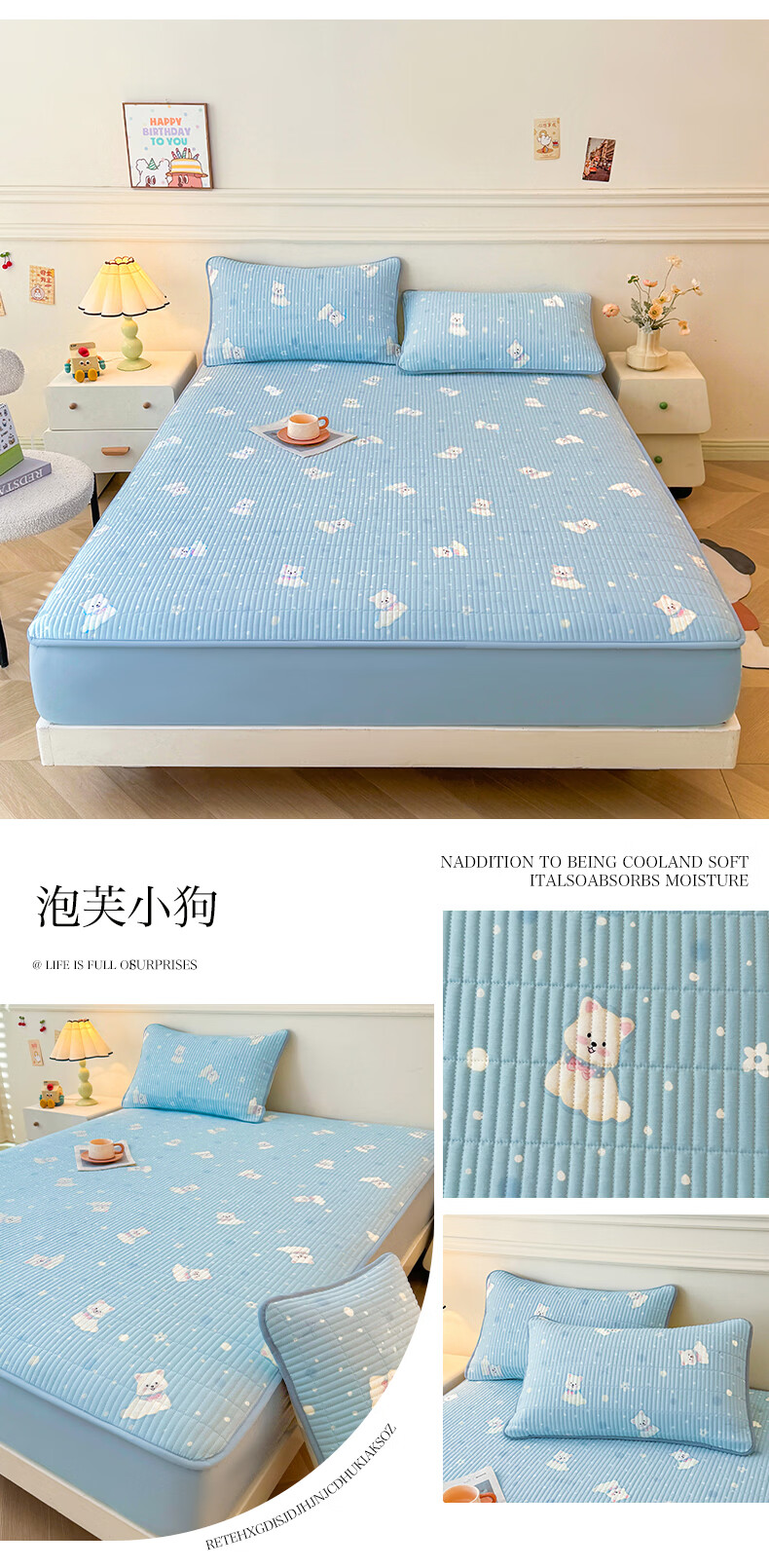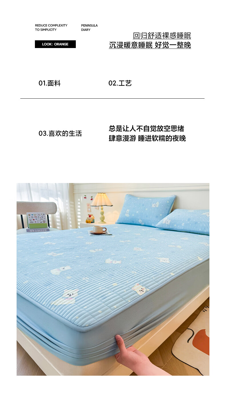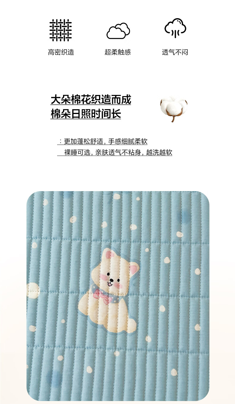无印良品全棉夹棉床笠1.5x2米纯棉加厚儿童床笠罩床垫保护套防滑隔脏床套 泡芙小狗 【夹棉纯棉面料 四季通用】 150cm*200cm 床笠【适5-25cm床垫】
