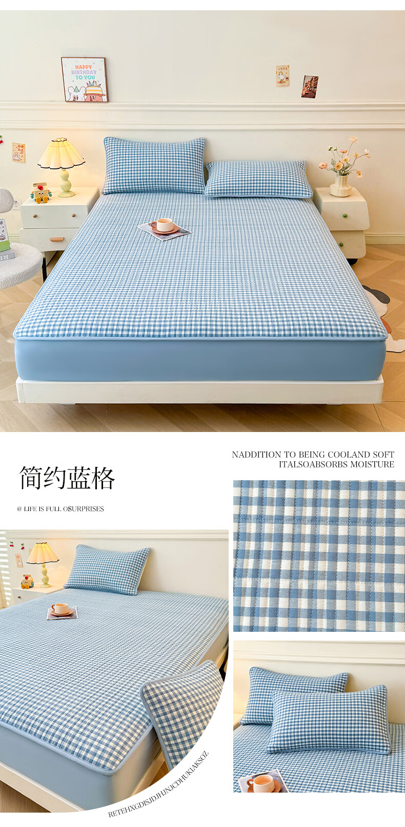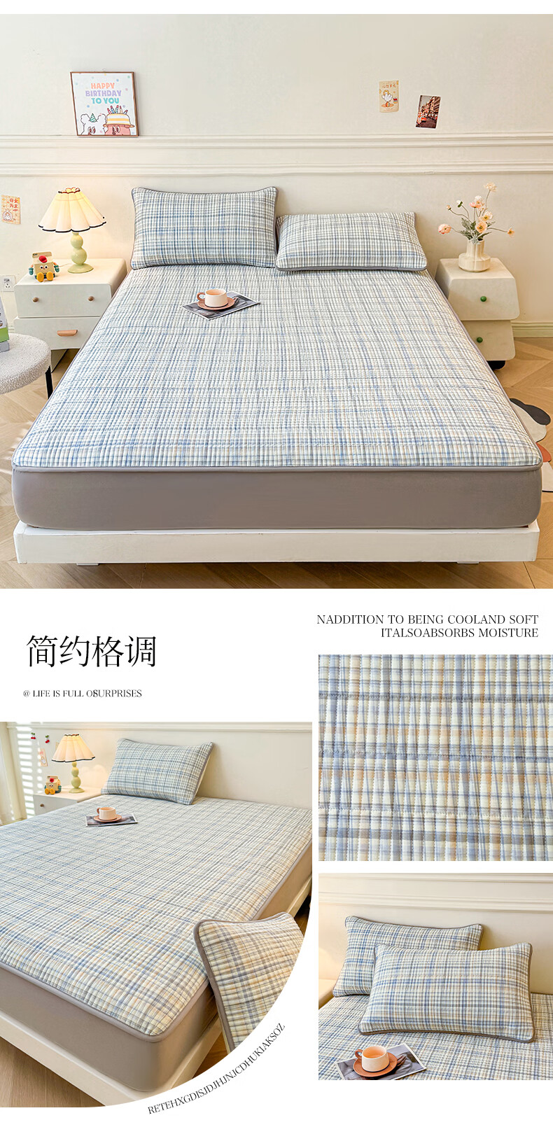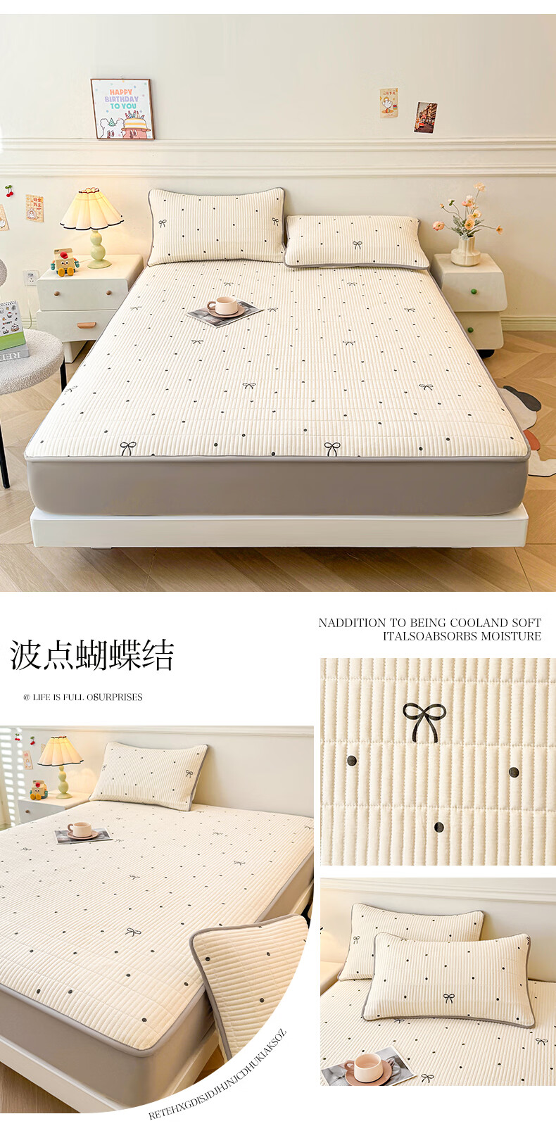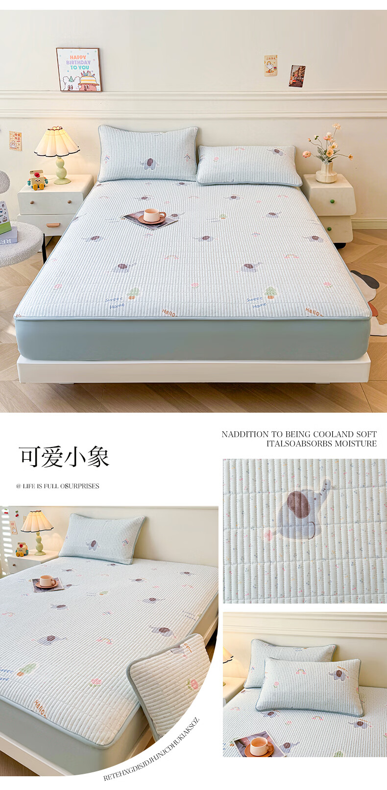 无印良品全棉夹棉床笠1.5x2米纯棉加厚儿童床笠罩床垫保护套防滑隔脏床套 泡芙小狗 【夹棉纯棉面料 四季通用】 150cm*200cm 床笠【适5-25cm床垫】
