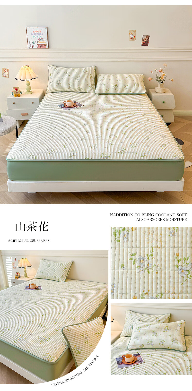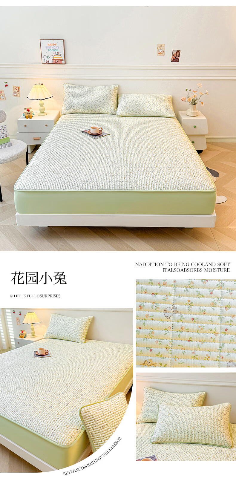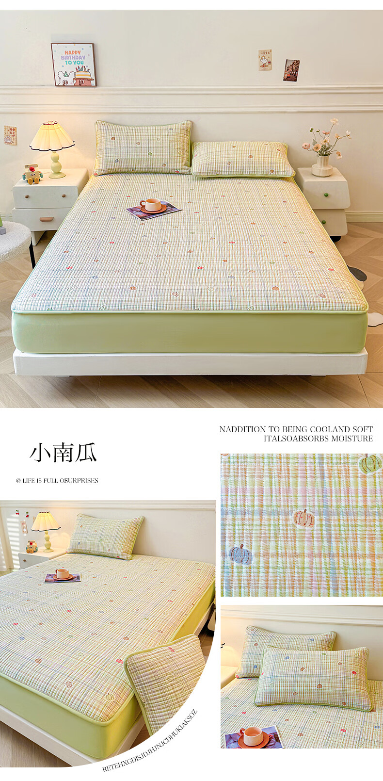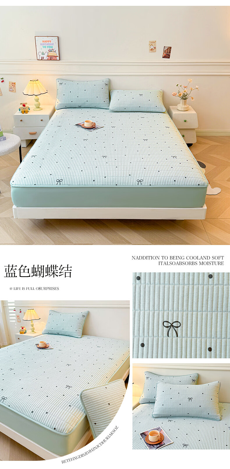 无印良品全棉夹棉床笠1.5x2米纯棉加厚儿童床笠罩床垫保护套防滑隔脏床套 泡芙小狗 【夹棉纯棉面料 四季通用】 150cm*200cm 床笠【适5-25cm床垫】