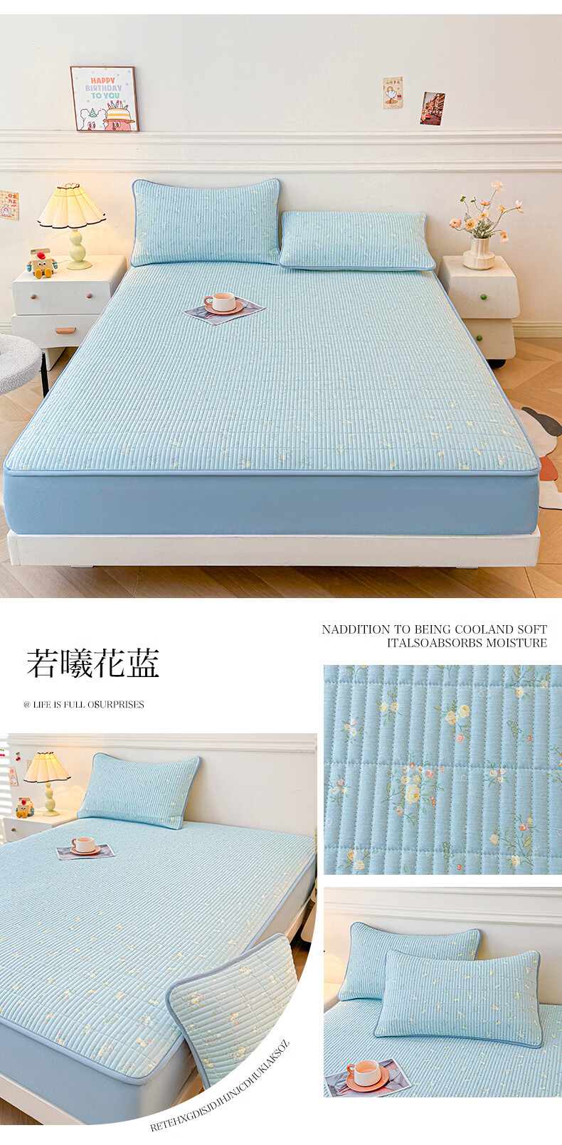水星家纺北欧·海岸可水洗冰丝席/床笠式提花冰丝席升级款 北欧·海岸可水洗提花冰丝席升级款(灰蓝色) 195cm*90cm