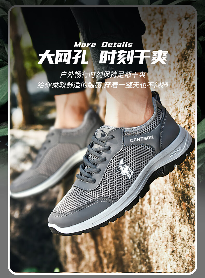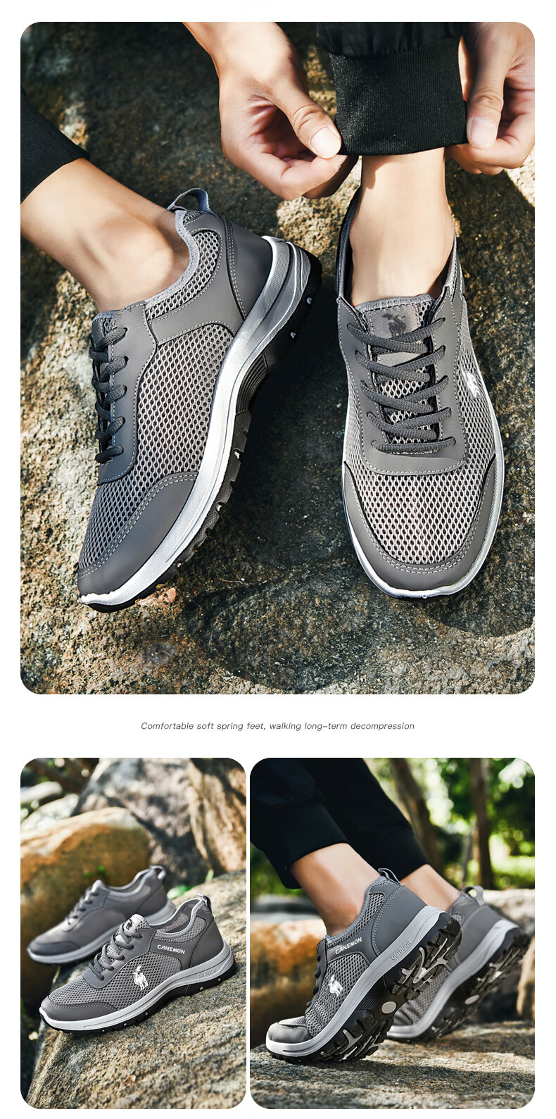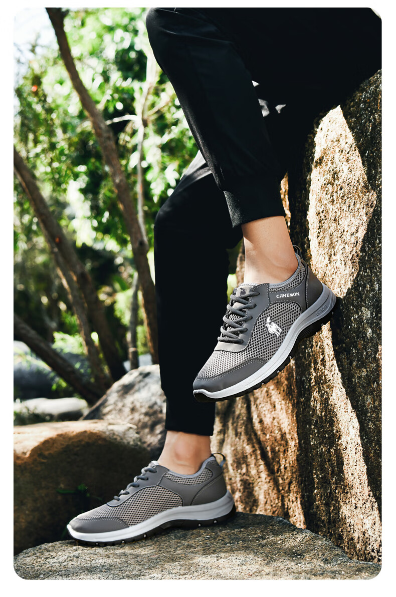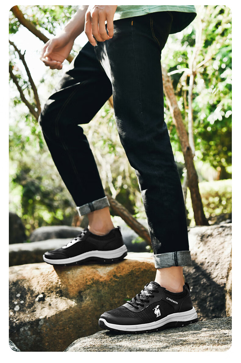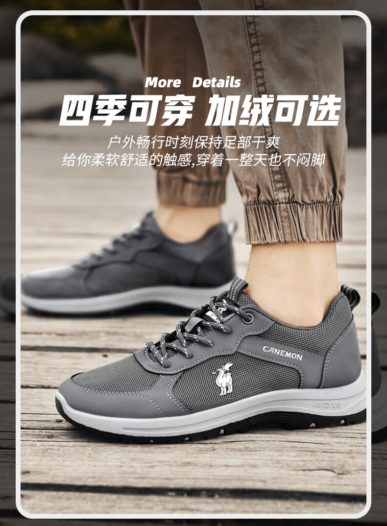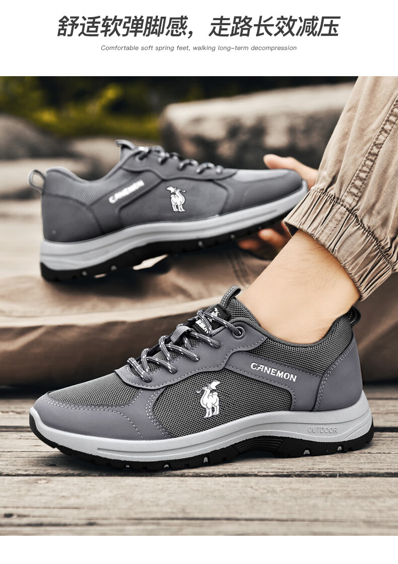 保罗骆驼运动休闲鞋 春夏新款加绒飞织男鞋子 耐磨轻便防滑大码增高户外 【夏季款】灰色 223 42 【标准运动鞋码】