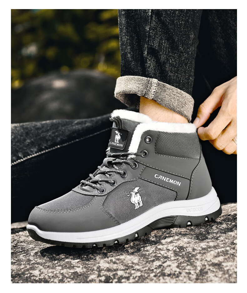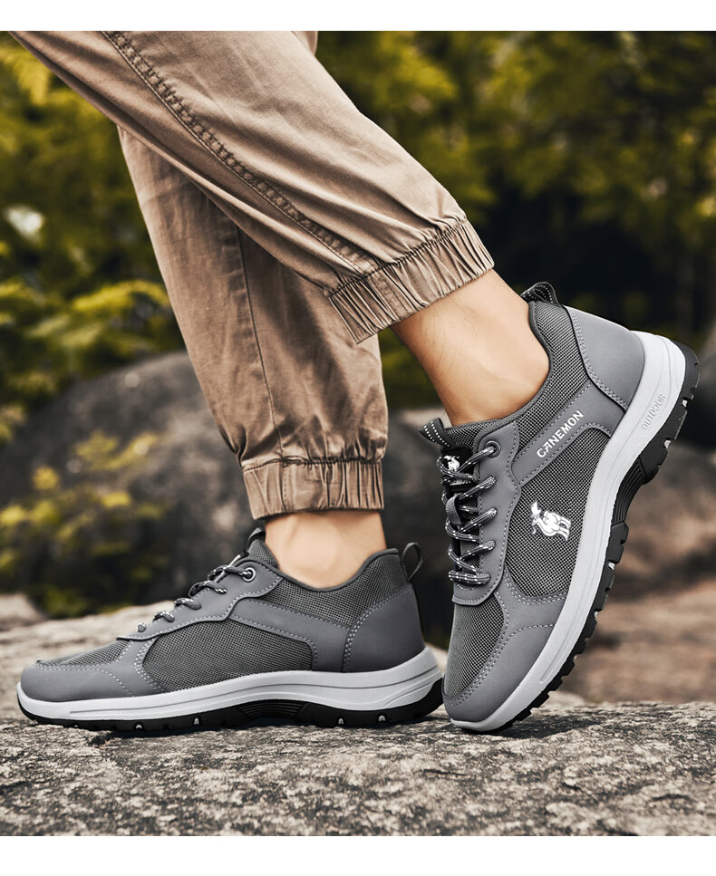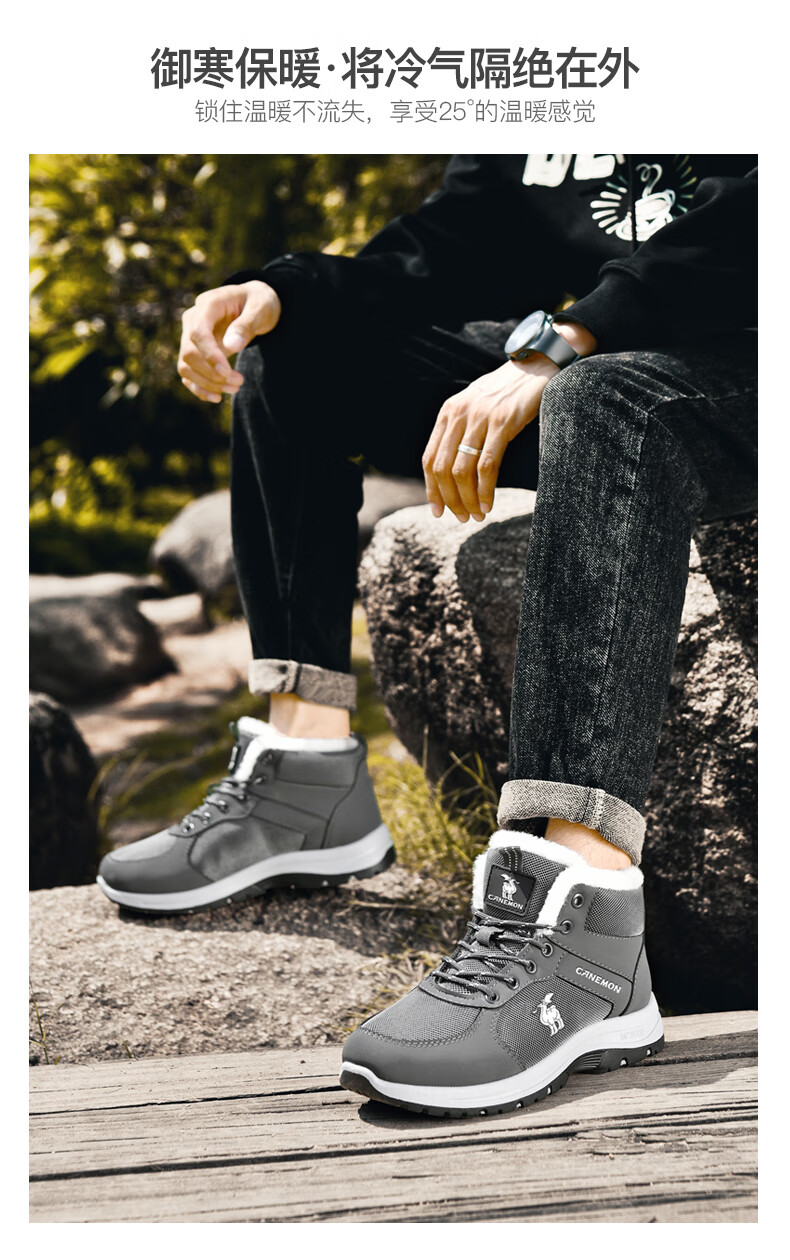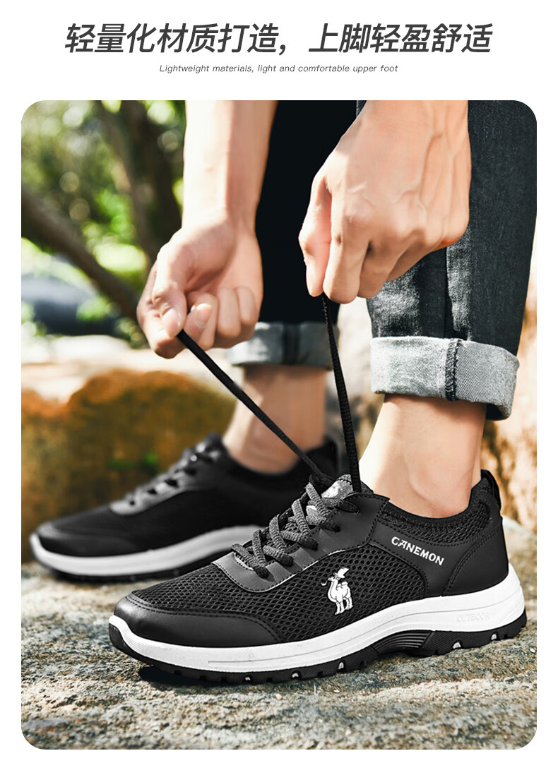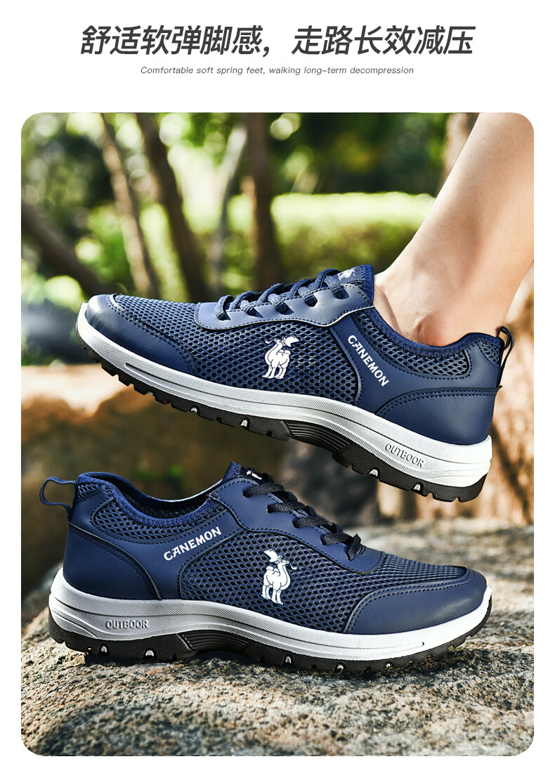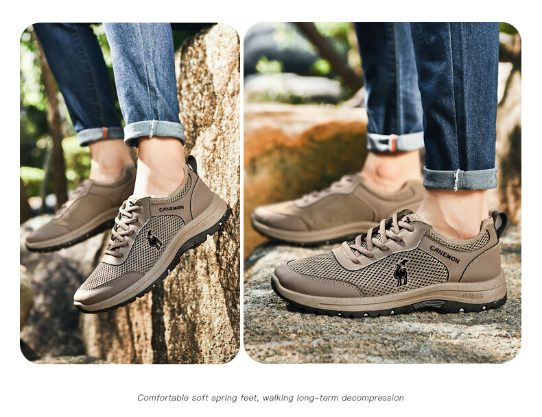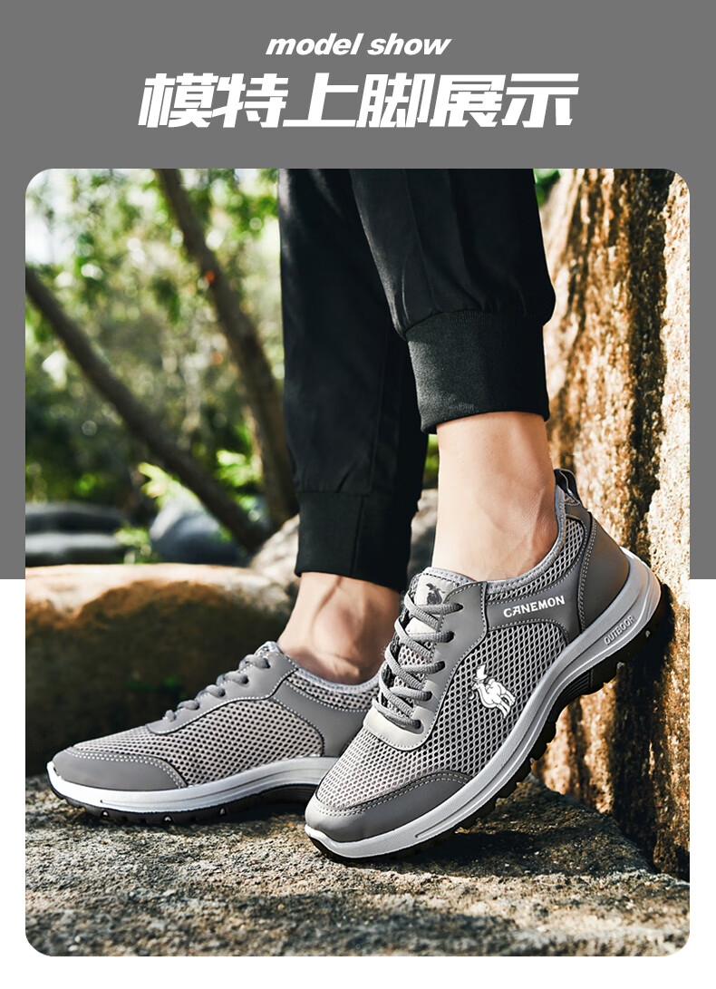 保罗骆驼运动休闲鞋 春夏新款加绒飞织男鞋子 耐磨轻便防滑大码增高户外 【夏季款】灰色 223 42 【标准运动鞋码】