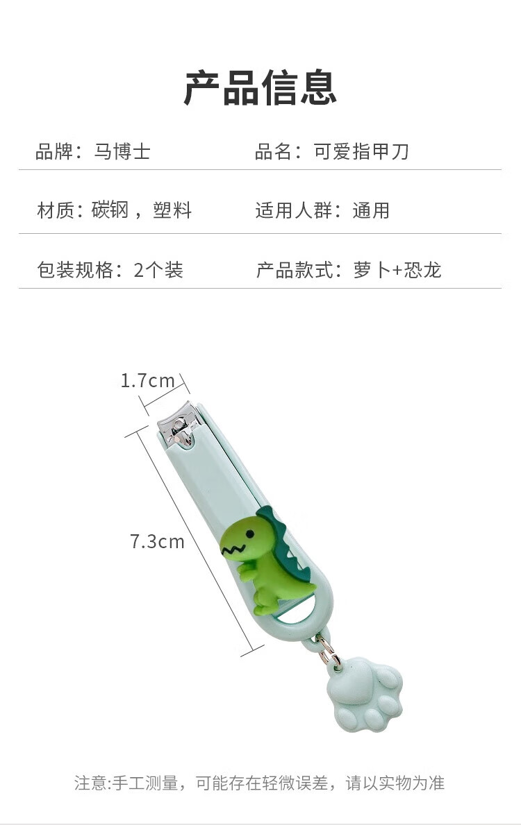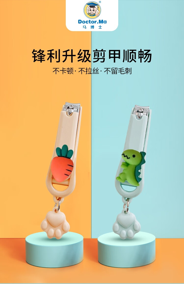 马博士 婴儿指甲剪儿童指甲刀宝宝剪指甲刀新生儿指甲钳2个装 萝卜+恐龙